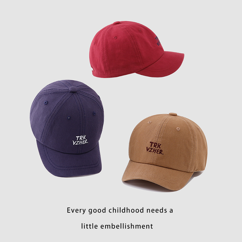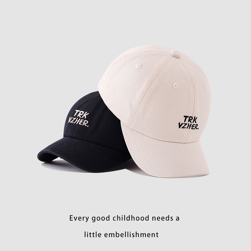 ins韩版潮流儿童帽子简约百搭春季宝宝棒球帽TRK字母短檐鸭舌帽