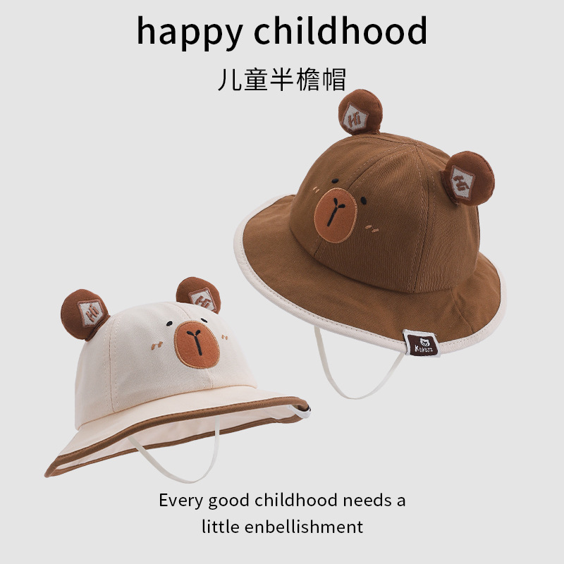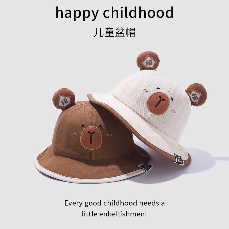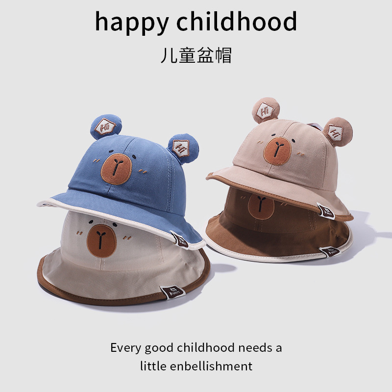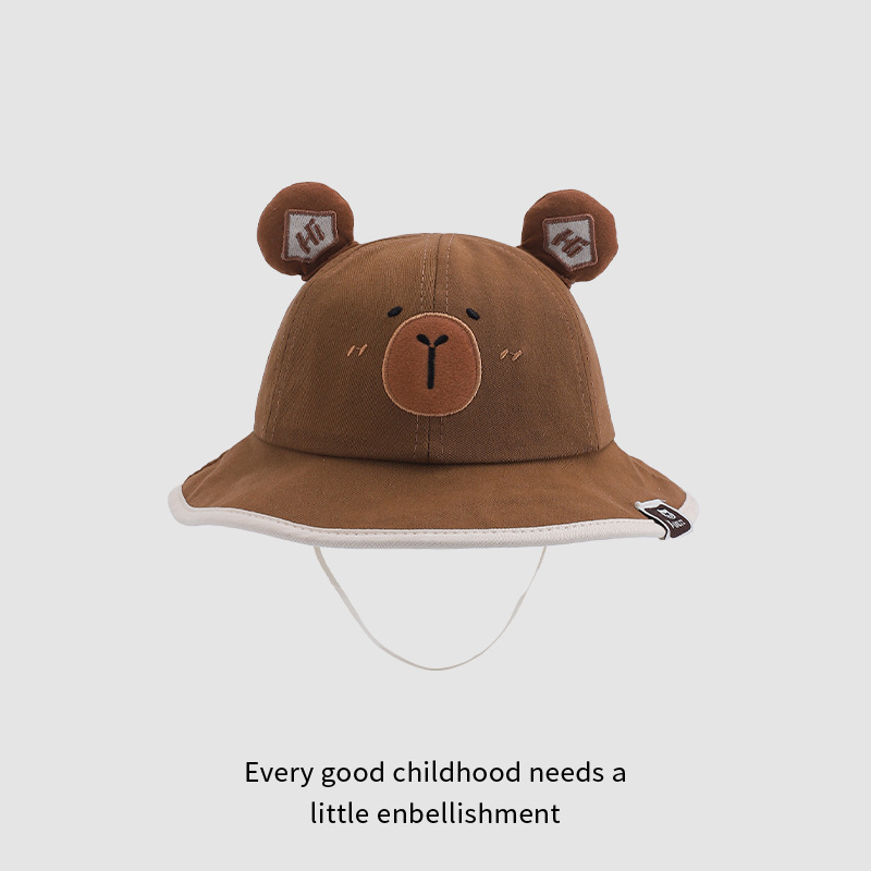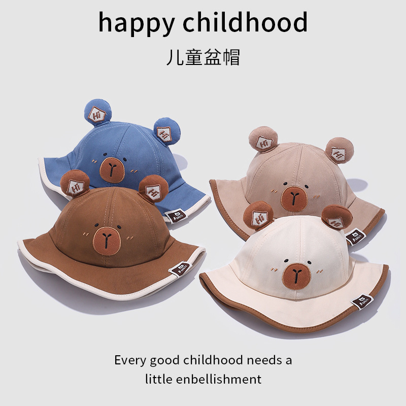 HI熊盆帽宝宝帽子2025春季男宝宝盆帽秋季韩版婴幼儿童遮阳渔夫帽