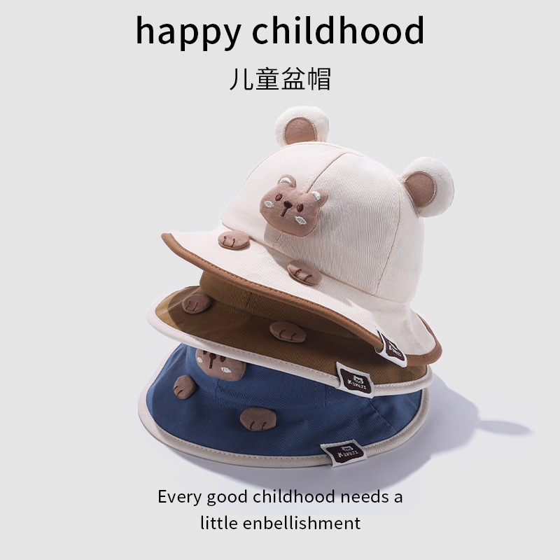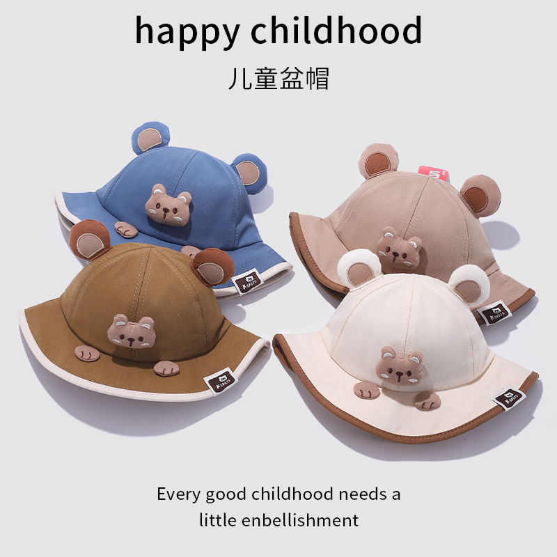 宝宝渔夫帽卡通可爱立体熊童趣儿童帽子春秋季个性遮阳盆帽批发