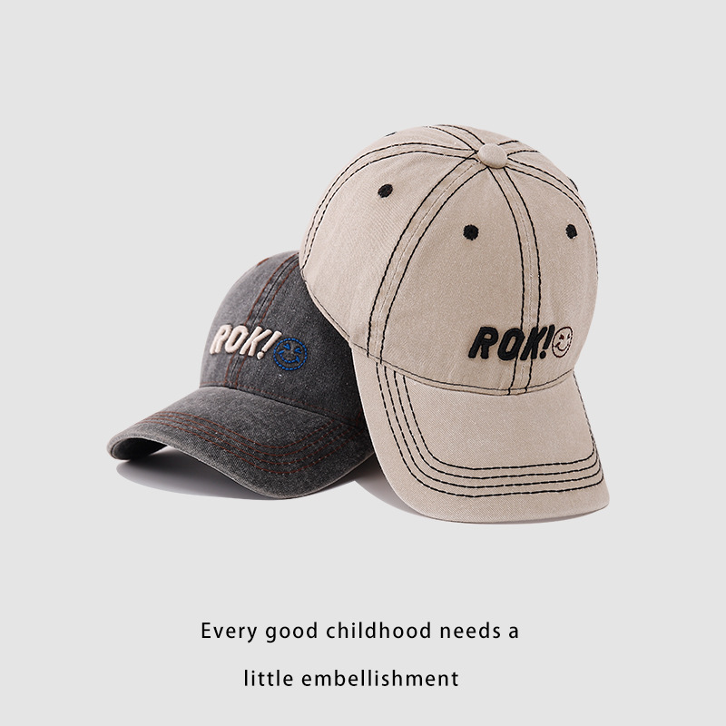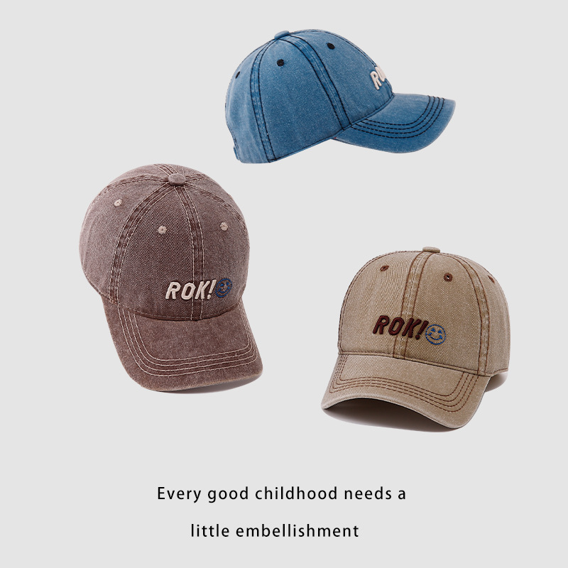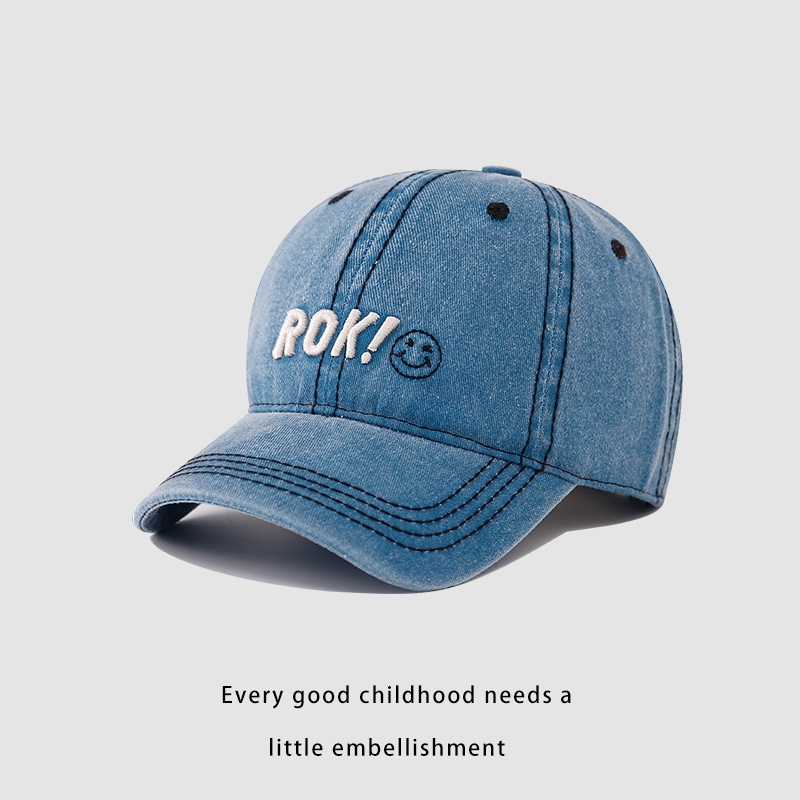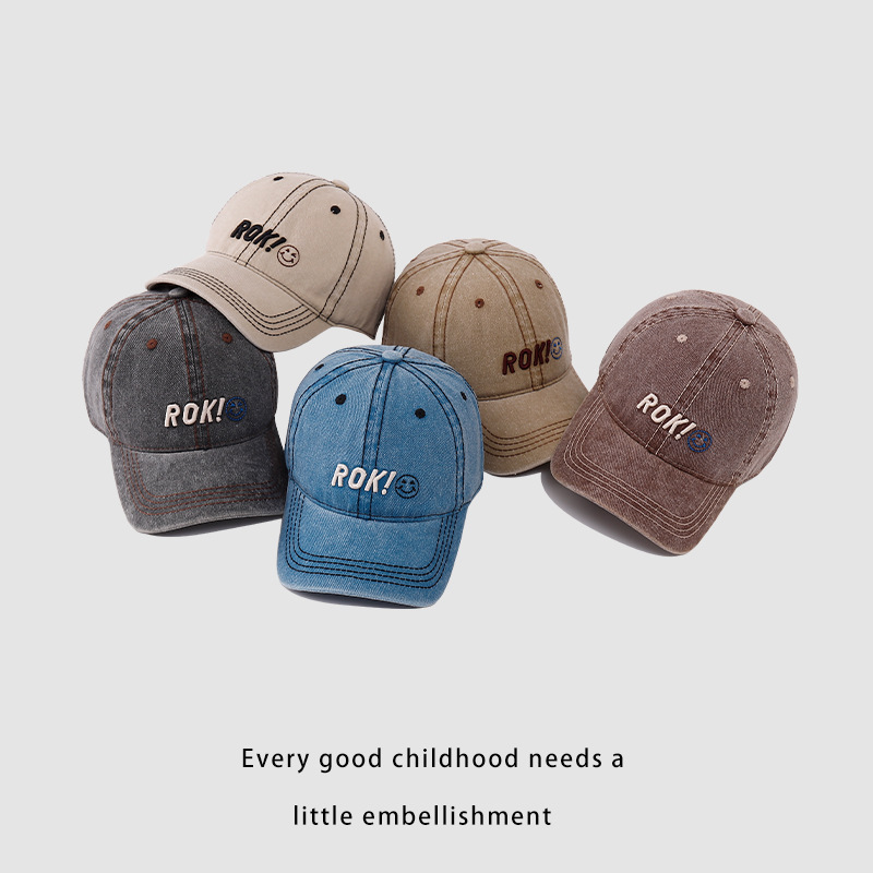 韩版潮流水洗牛仔帽子简约百搭男女童棒球帽ins韩系宝宝鸭舌帽