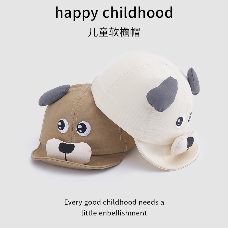 日韩宝宝软沿翻边帽ins小众小狗儿童帽子春秋季新款鸭舌棒球帽