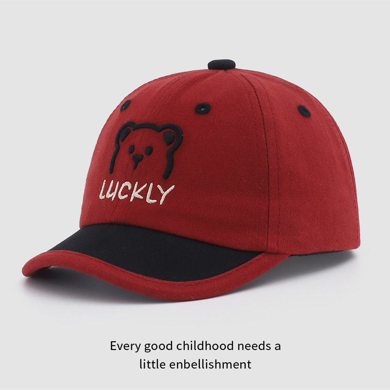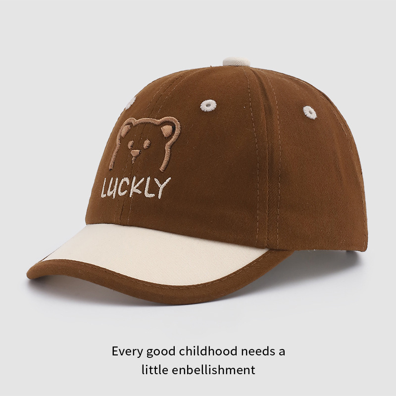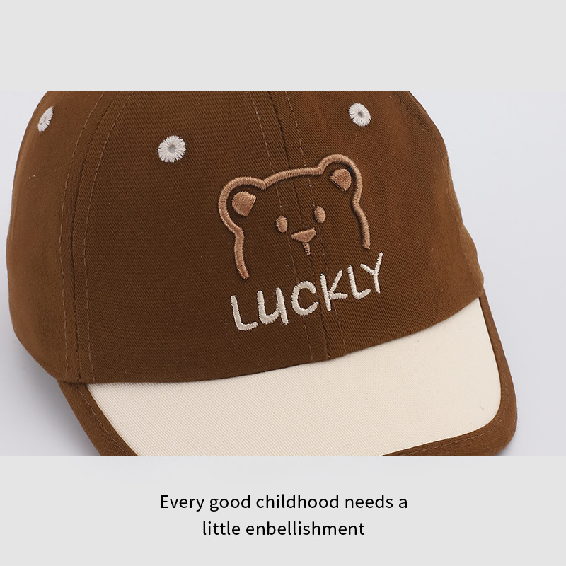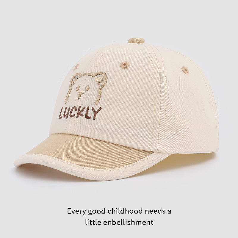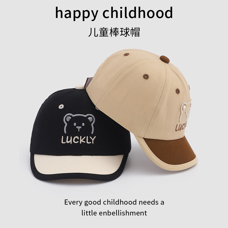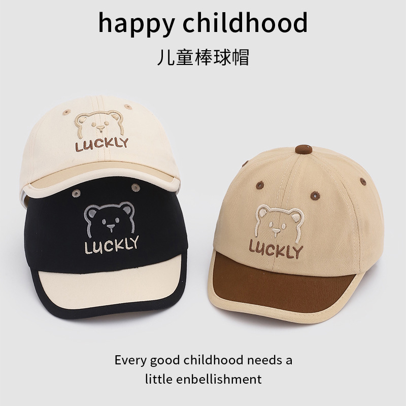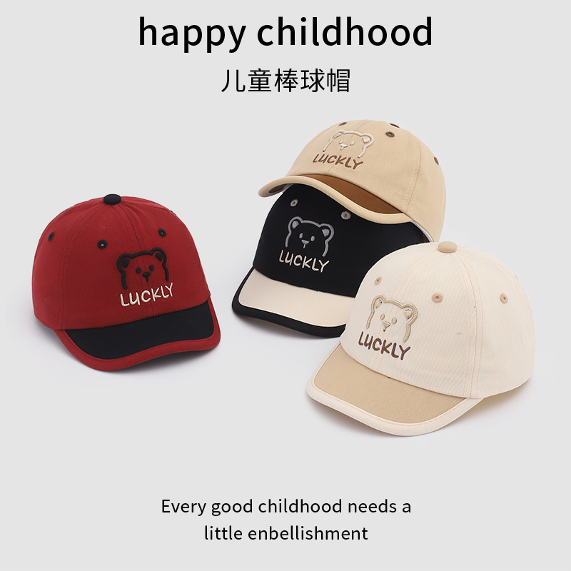 韩版潮流儿童帽子字母LUCKLY小熊男童棒球帽春夏季百搭遮阳鸭舌帽