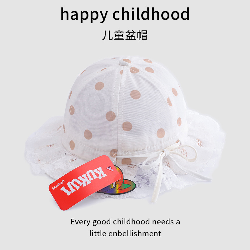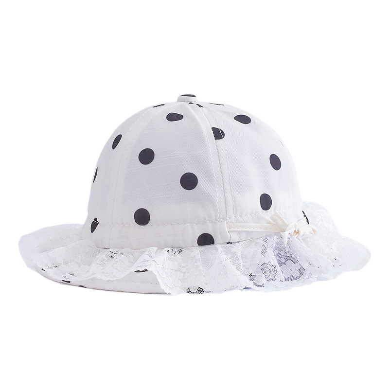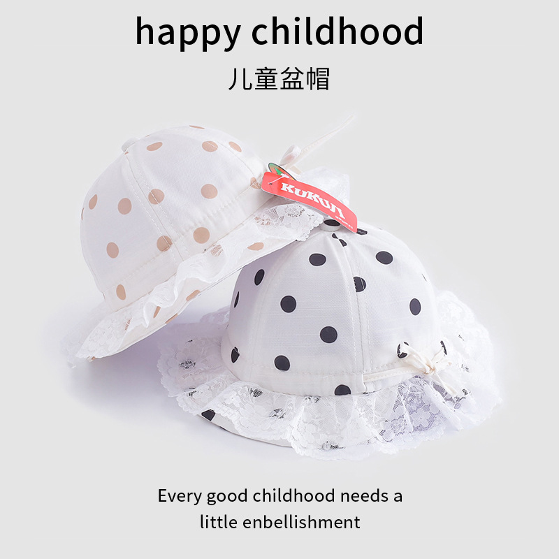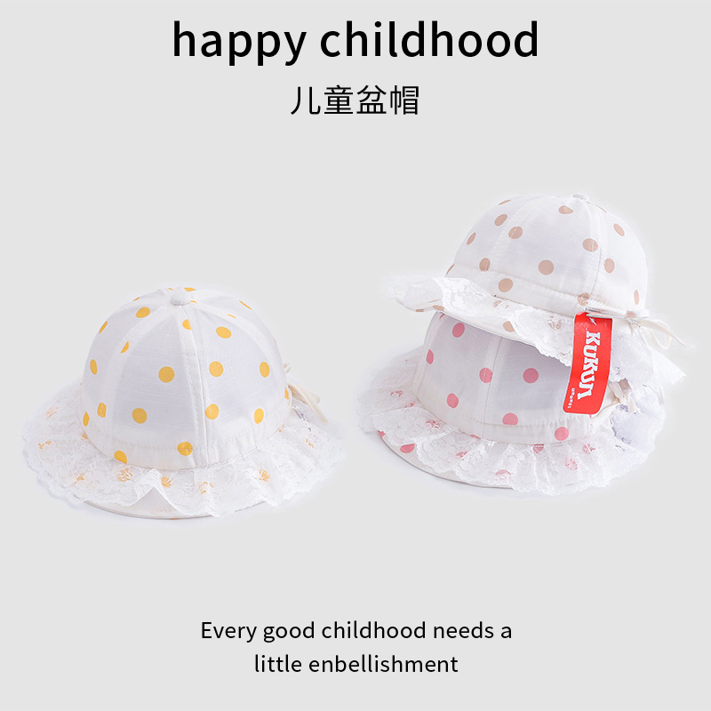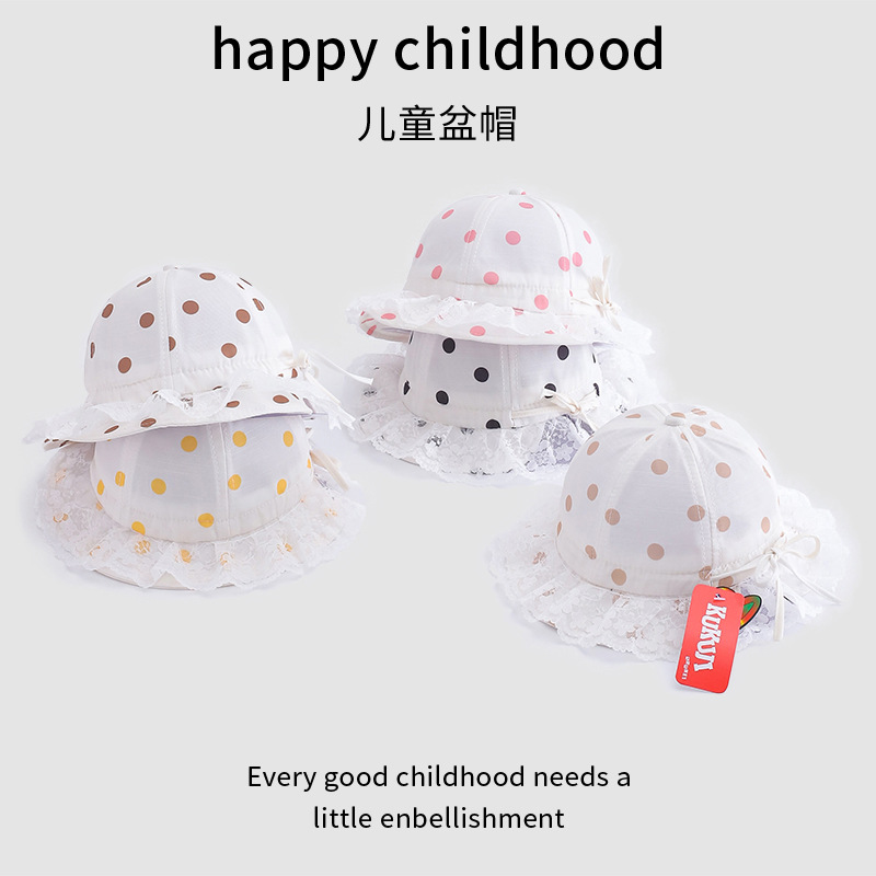 韩版韩式儿童帽子春季新款圆点花边盆帽夏季时尚女童遮阳渔夫帽