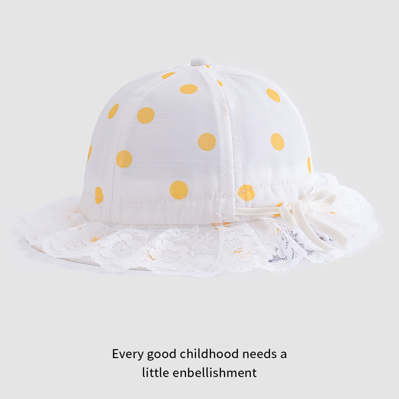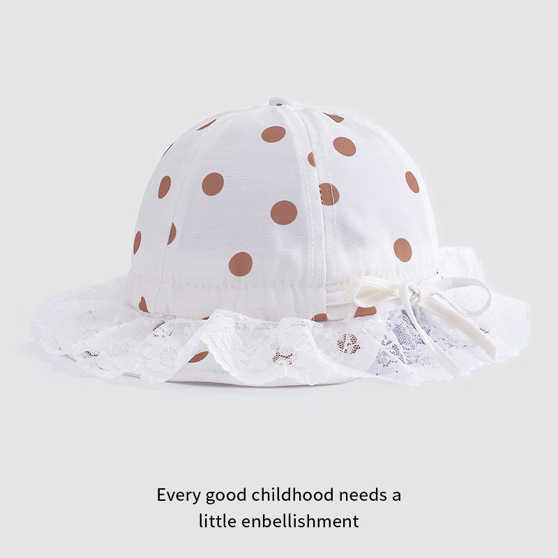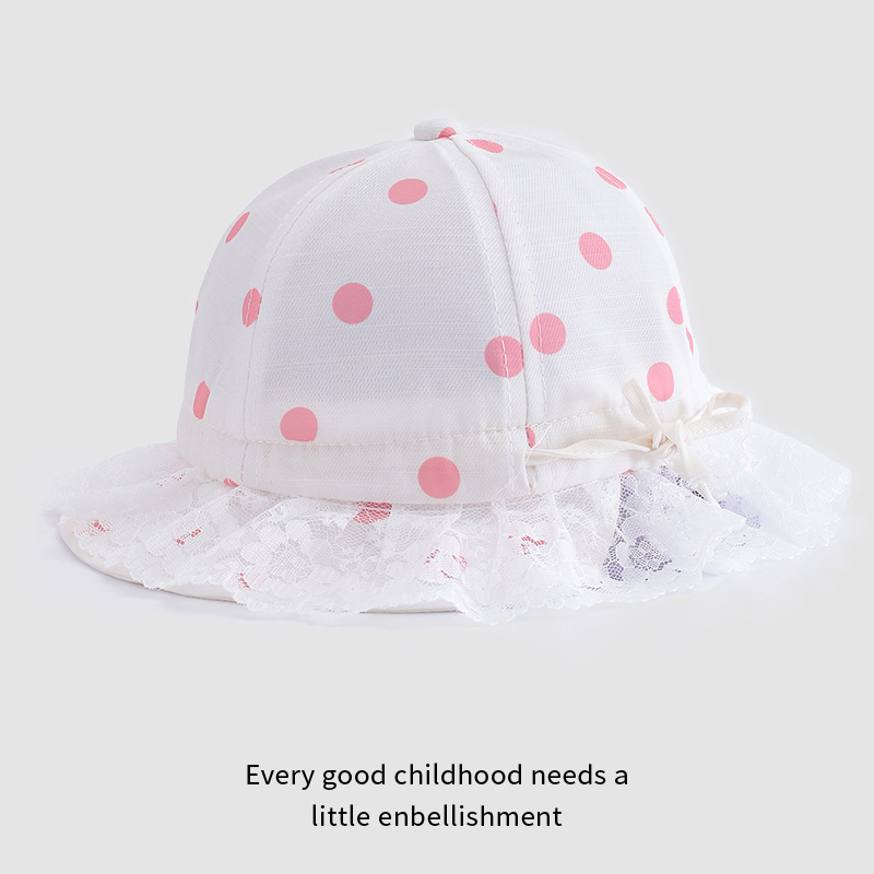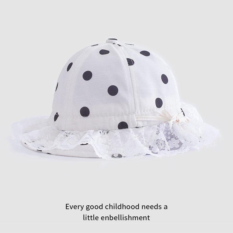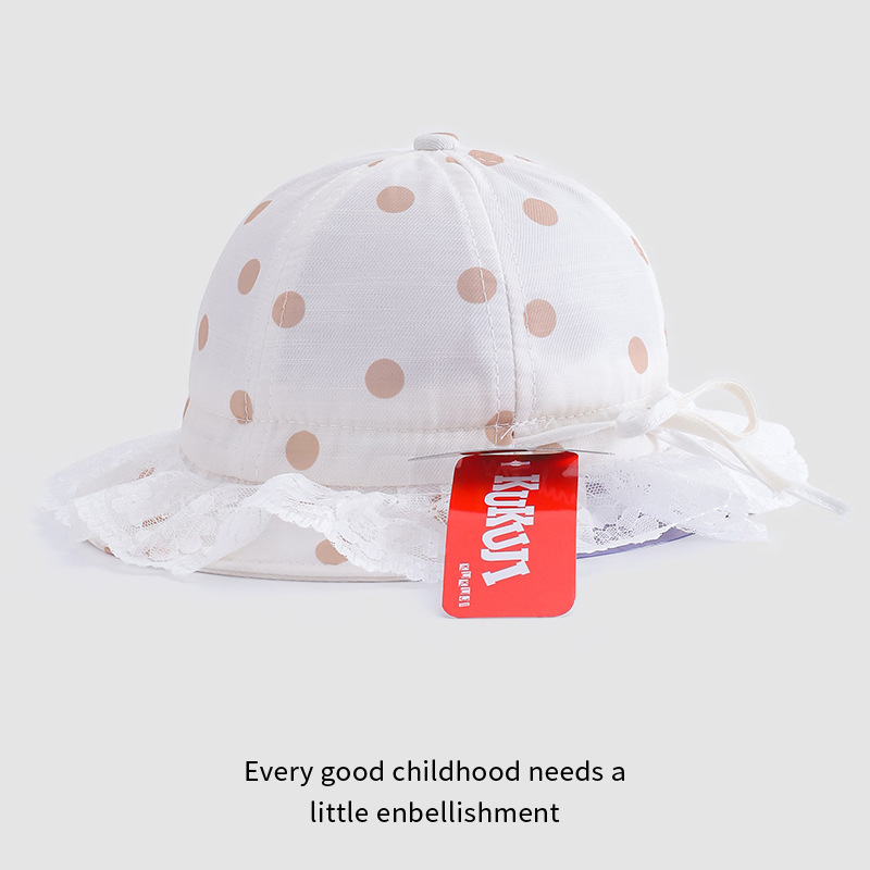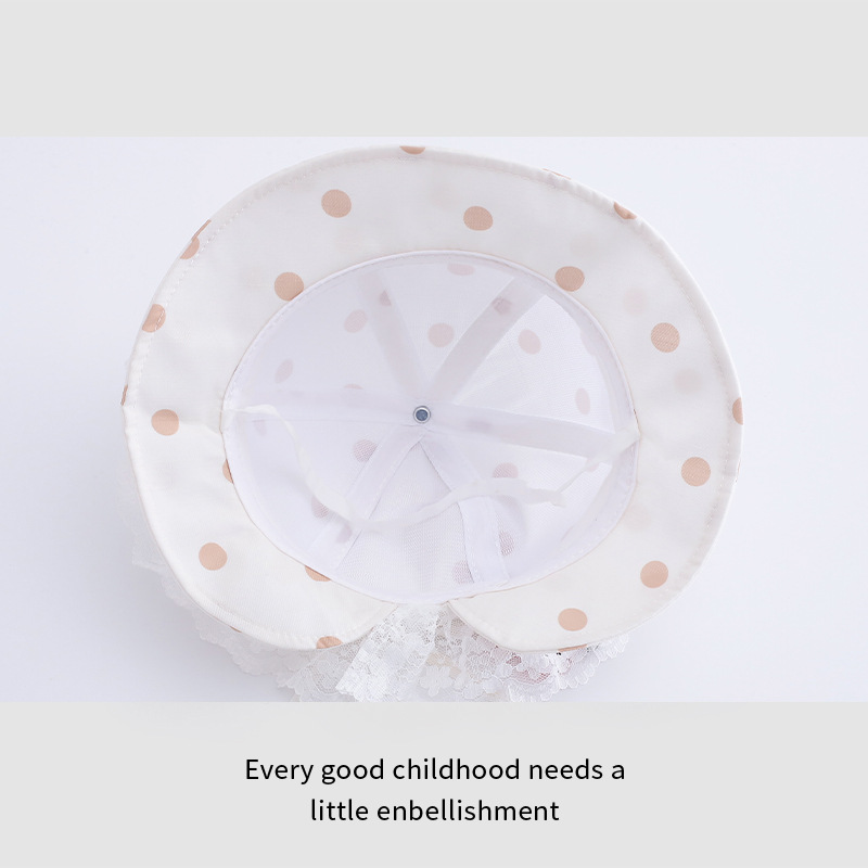 韩版韩式儿童帽子春季新款圆点花边盆帽夏季时尚女童遮阳渔夫帽