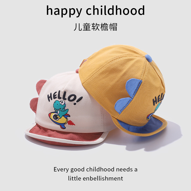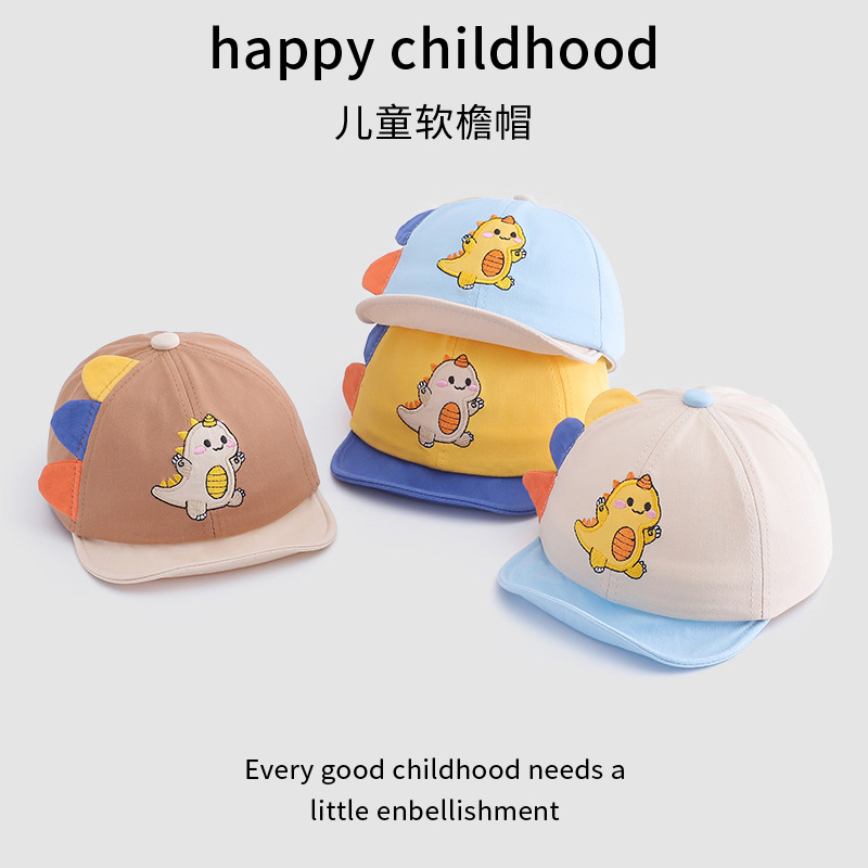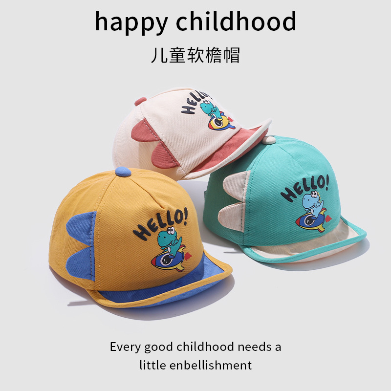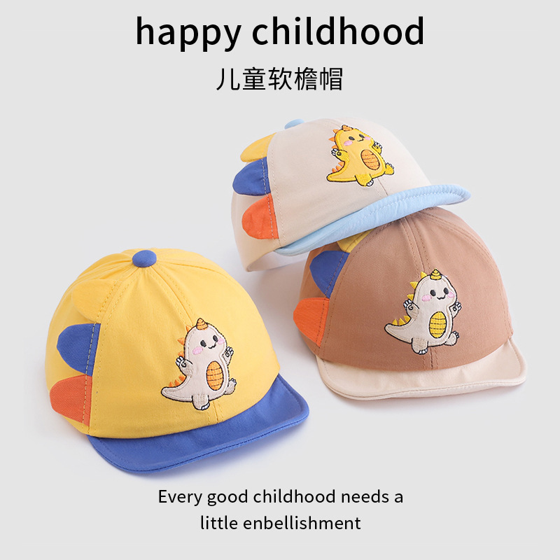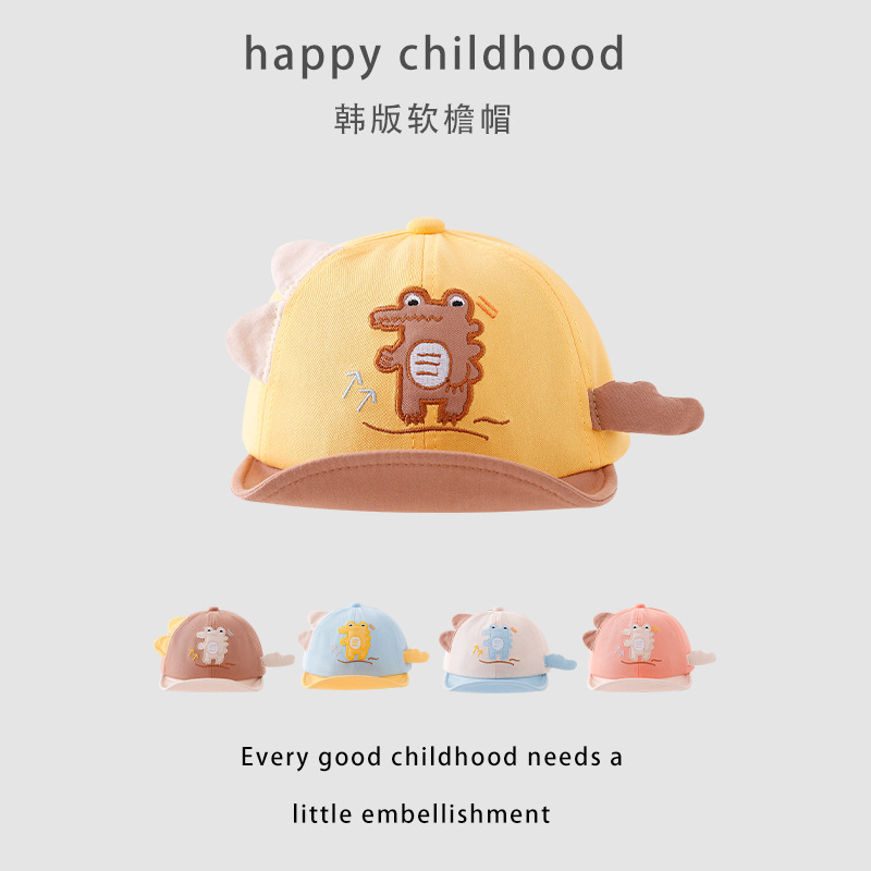 宝宝帽子春季新款卡通可爱恐龙婴幼儿棒球帽夏季翻边鸭舌帽批发