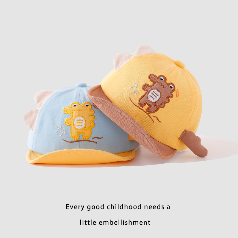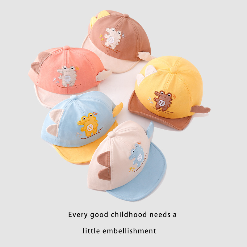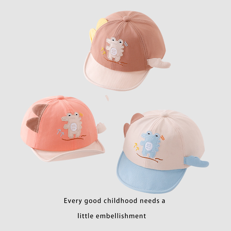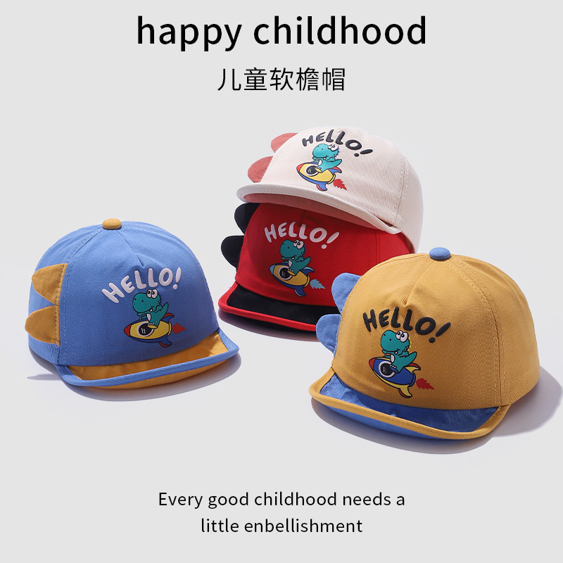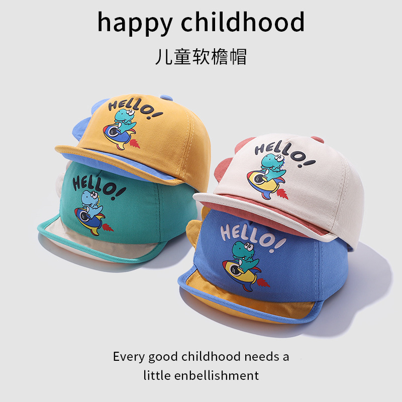 宝宝帽子春季新款卡通可爱恐龙婴幼儿棒球帽夏季翻边鸭舌帽批发