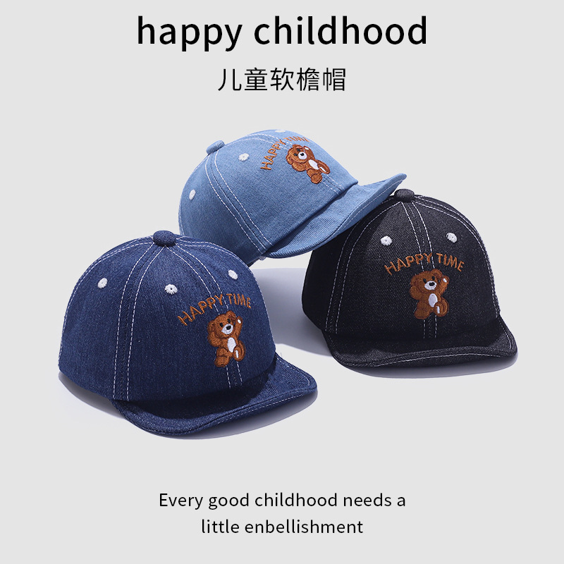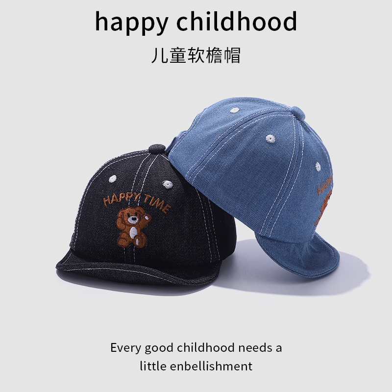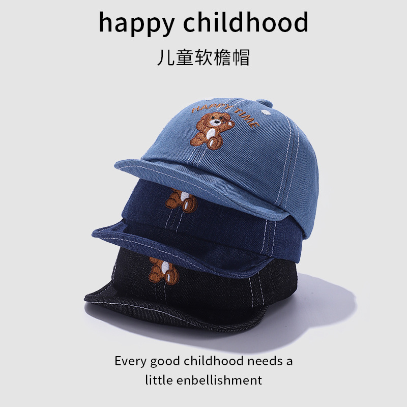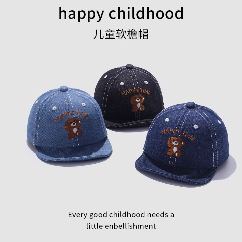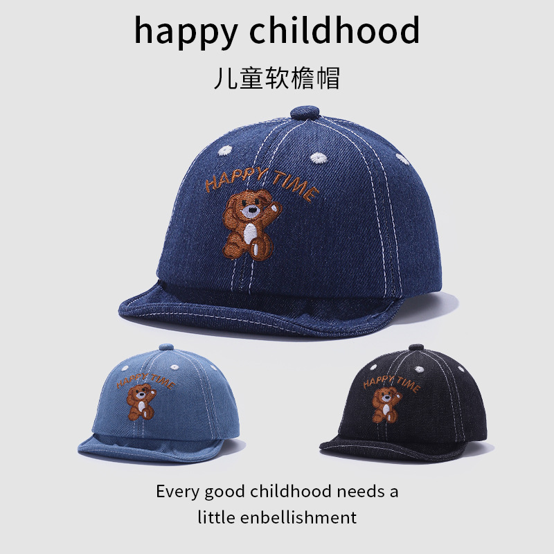 宝宝软沿牛仔帽2025春季新款男童女童翻边鸭舌帽卡通小熊棒球帽子