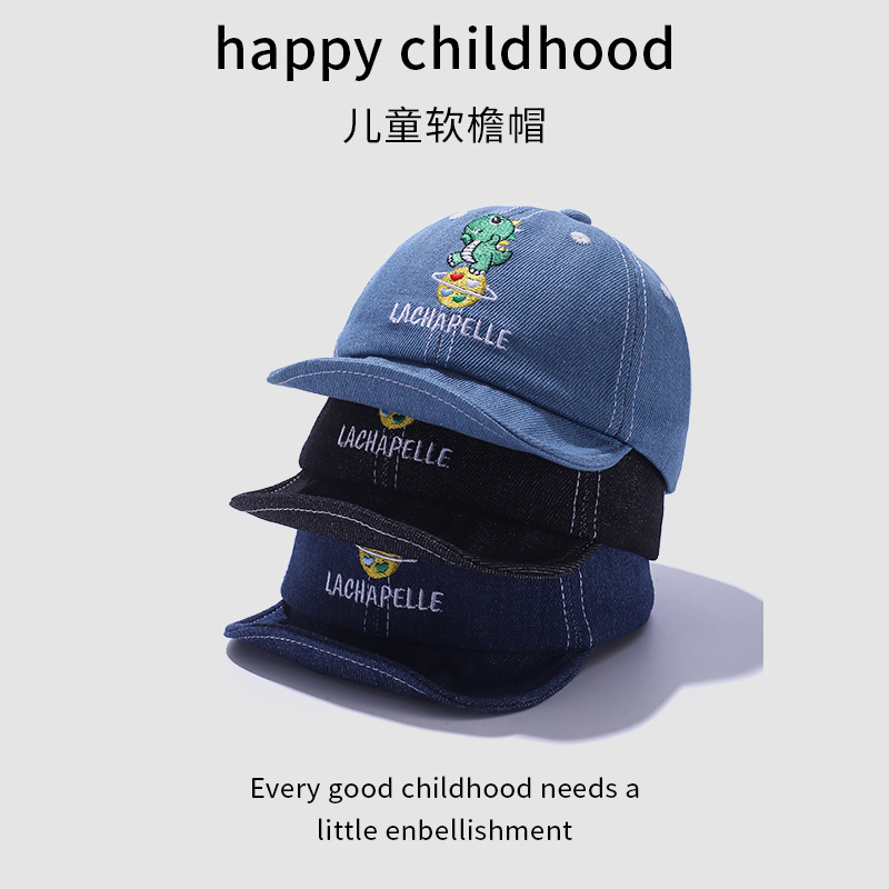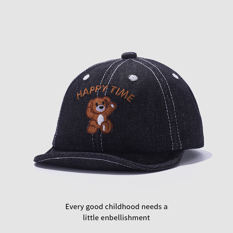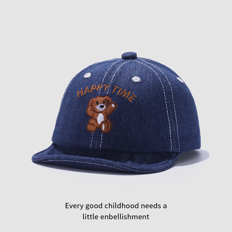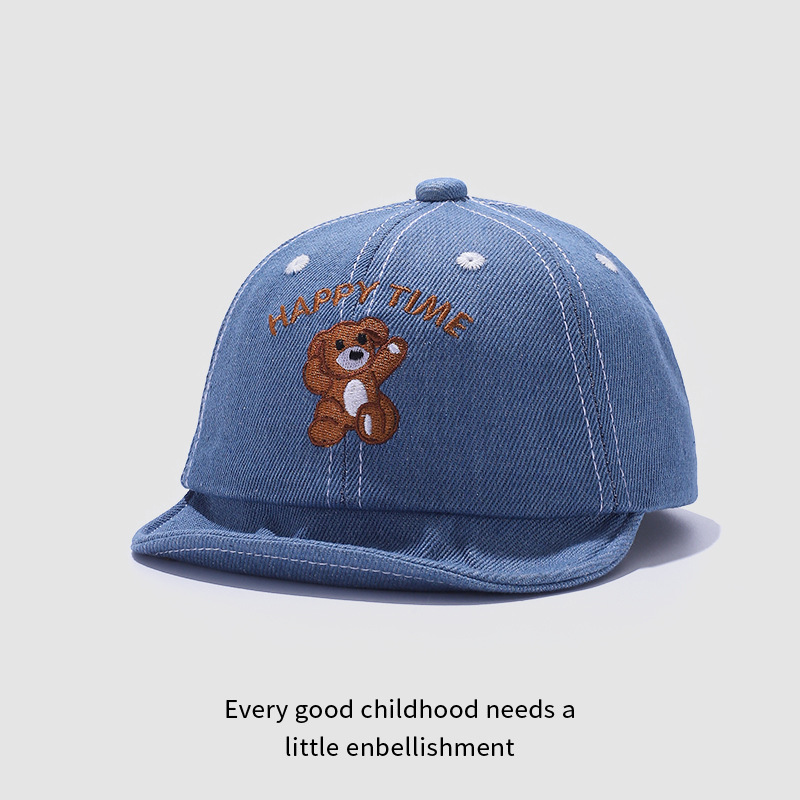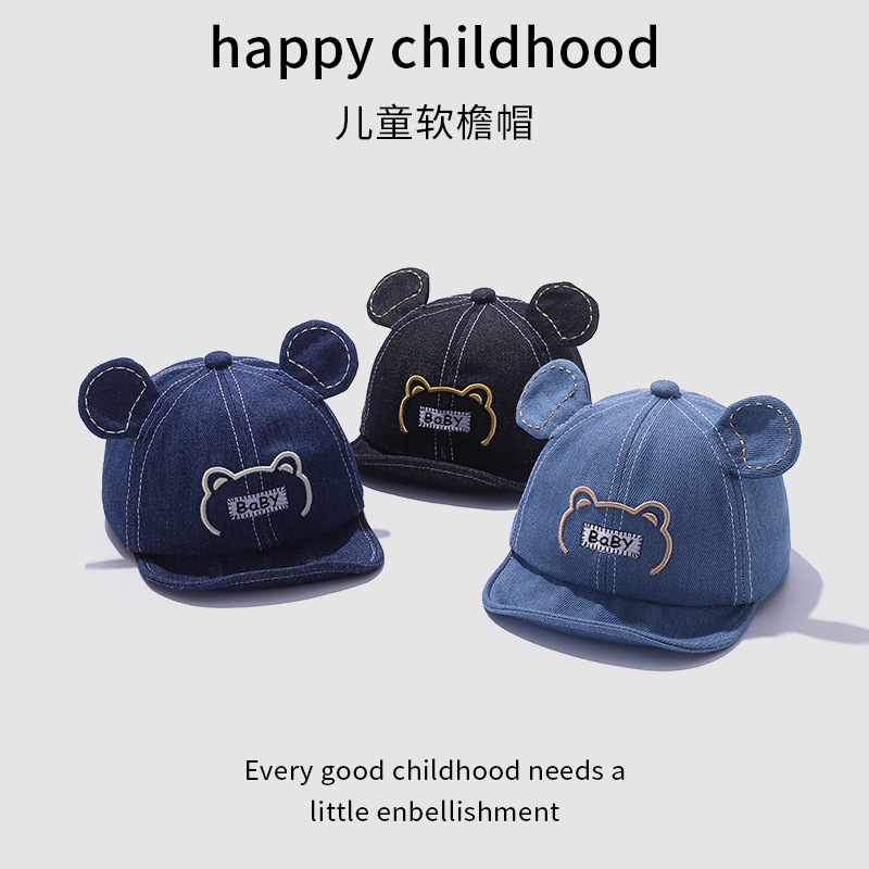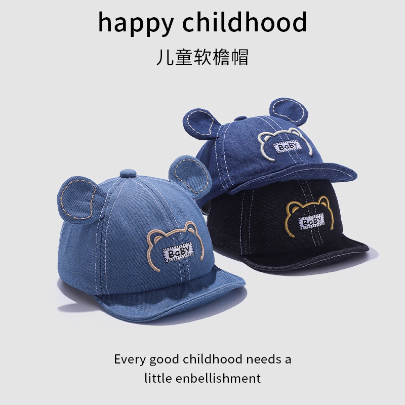宝宝软沿牛仔帽2025春季新款男童女童翻边鸭舌帽卡通小熊棒球帽子