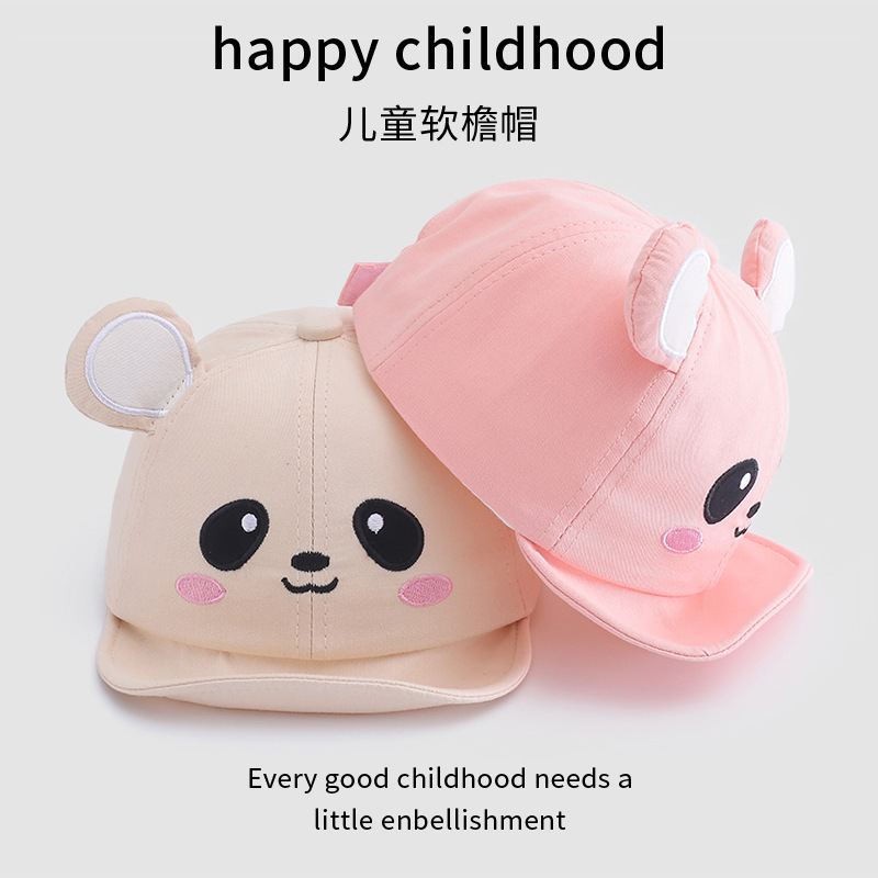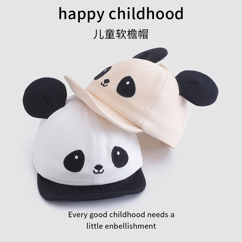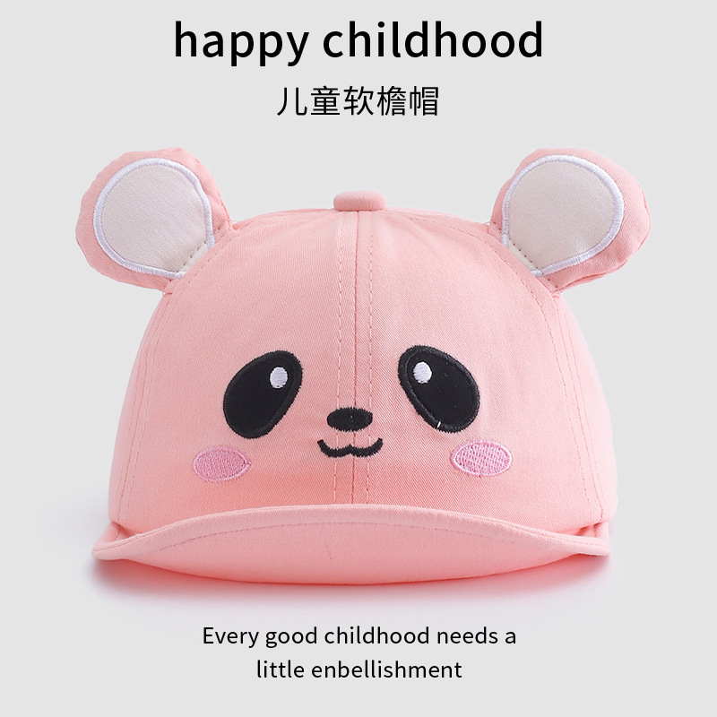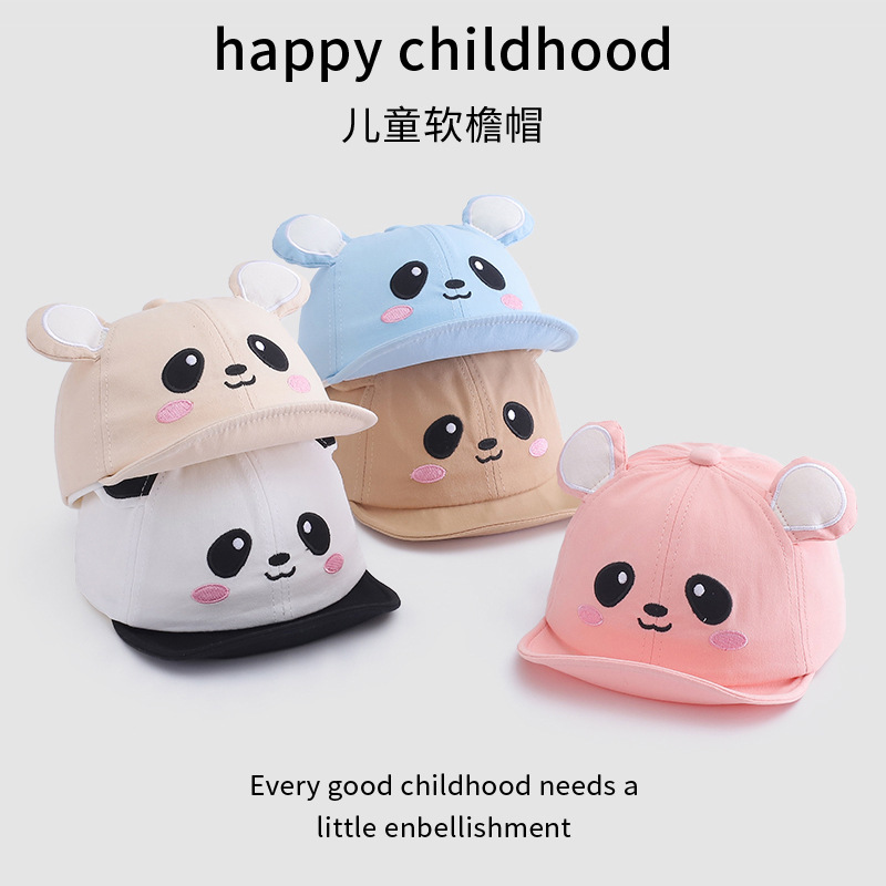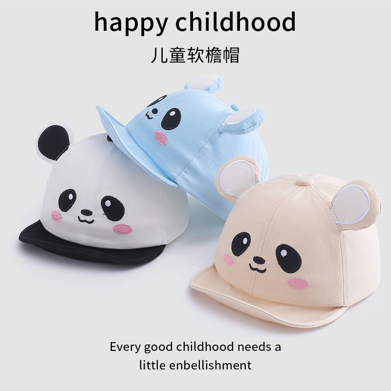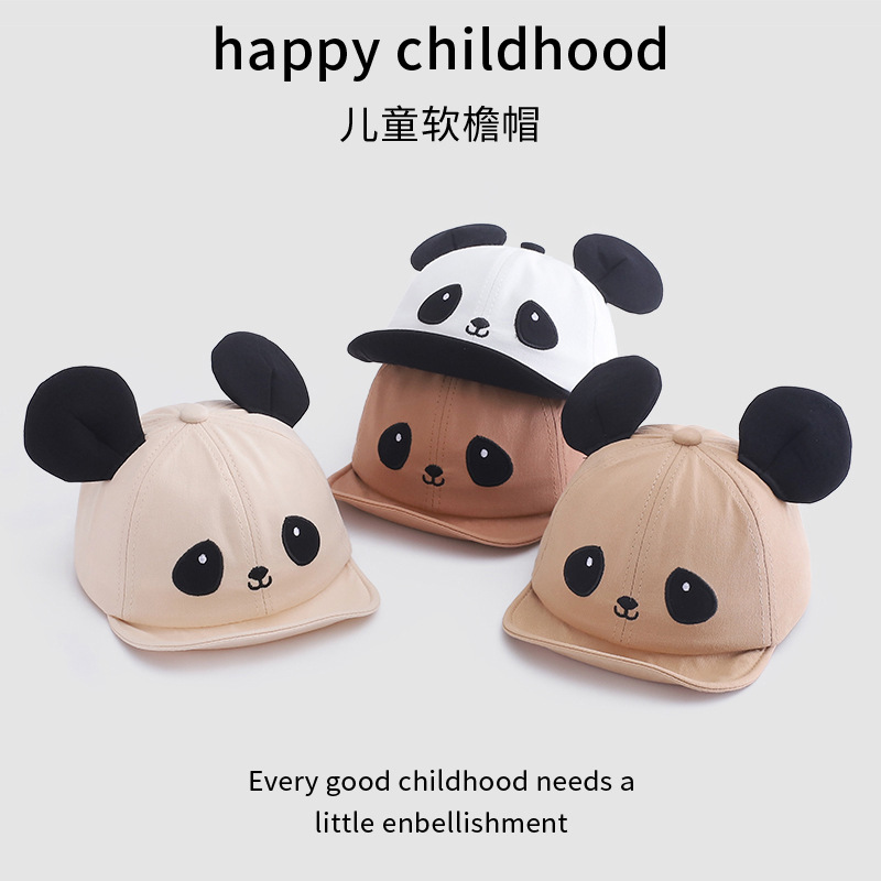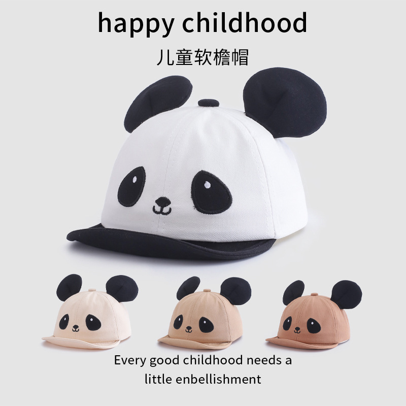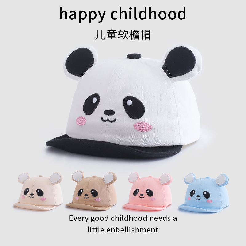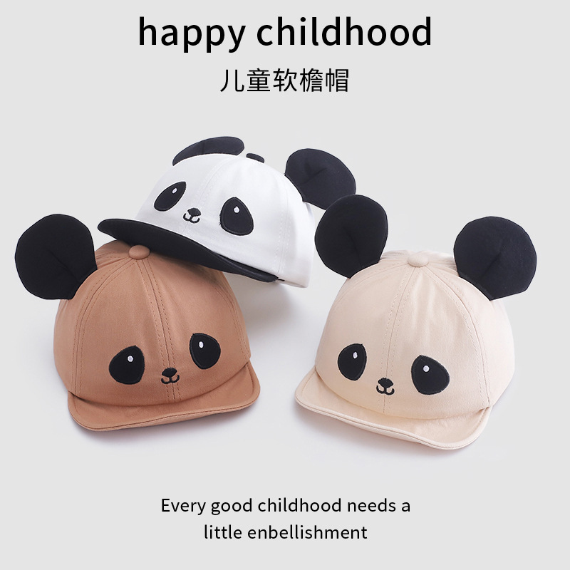 宝宝帽子春季新款卡通可爱熊猫婴幼儿棒球帽夏季百搭翻边鸭舌帽