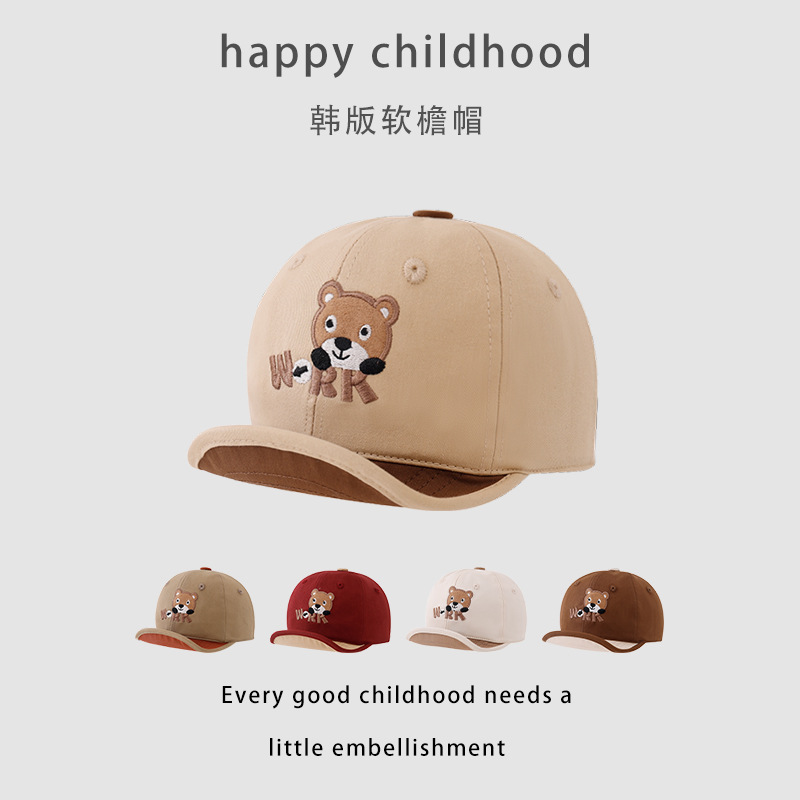 儿童帽子棒球帽春夏季宝宝小孩软沿鸭舌帽男童女童小熊防晒遮阳帽