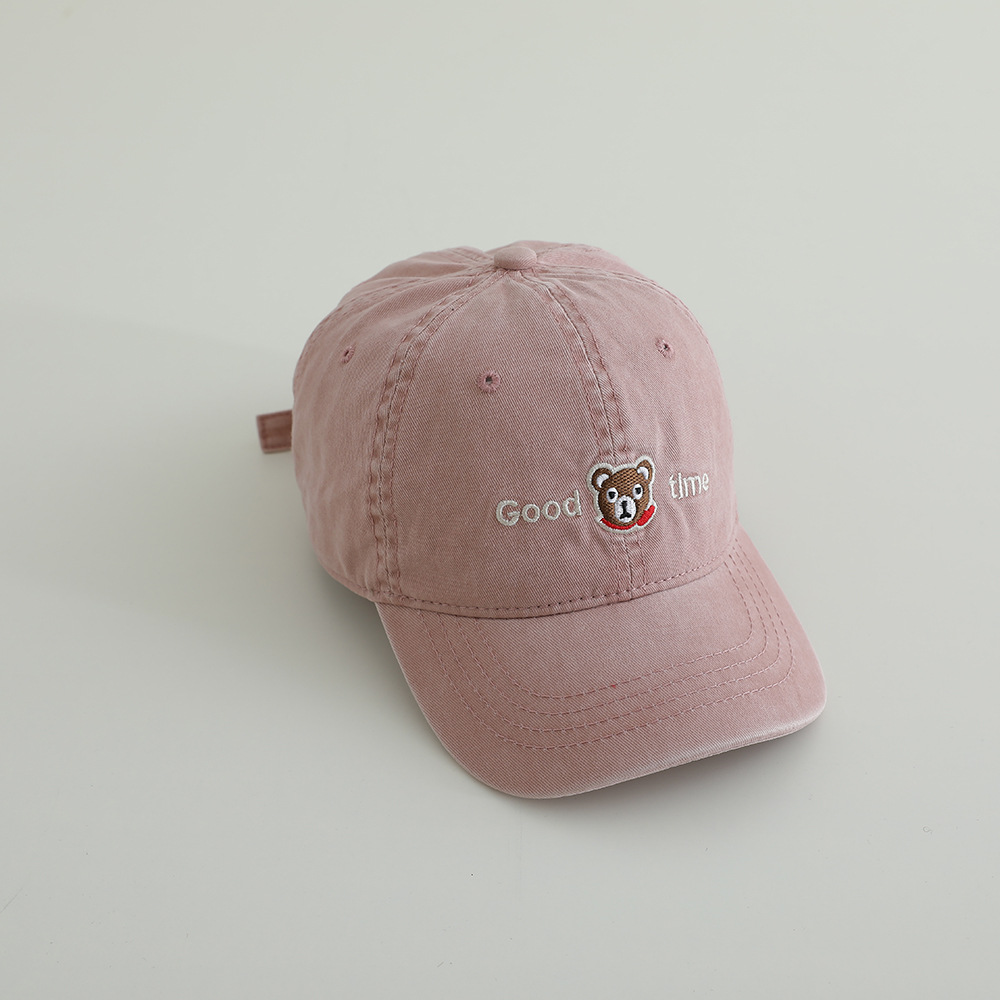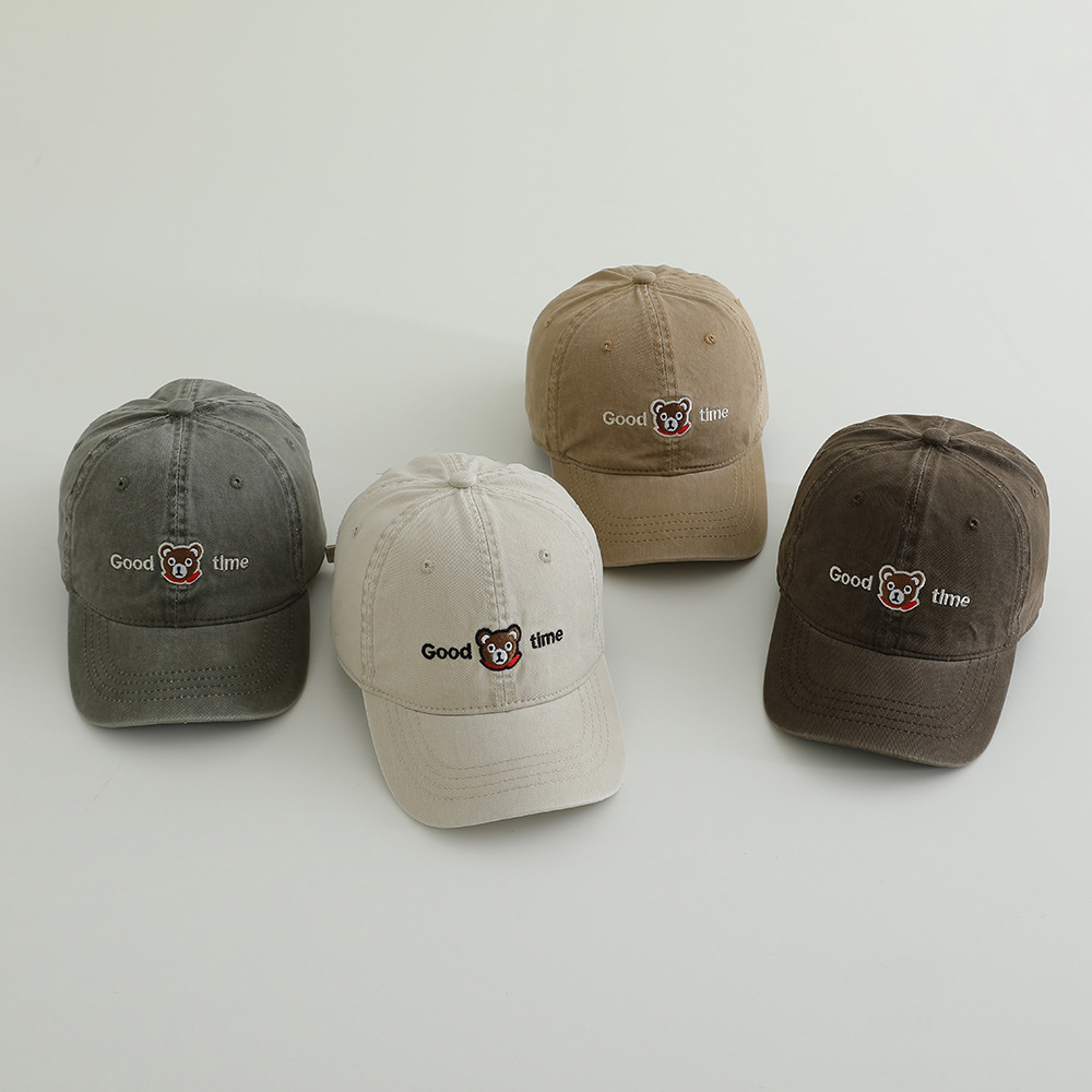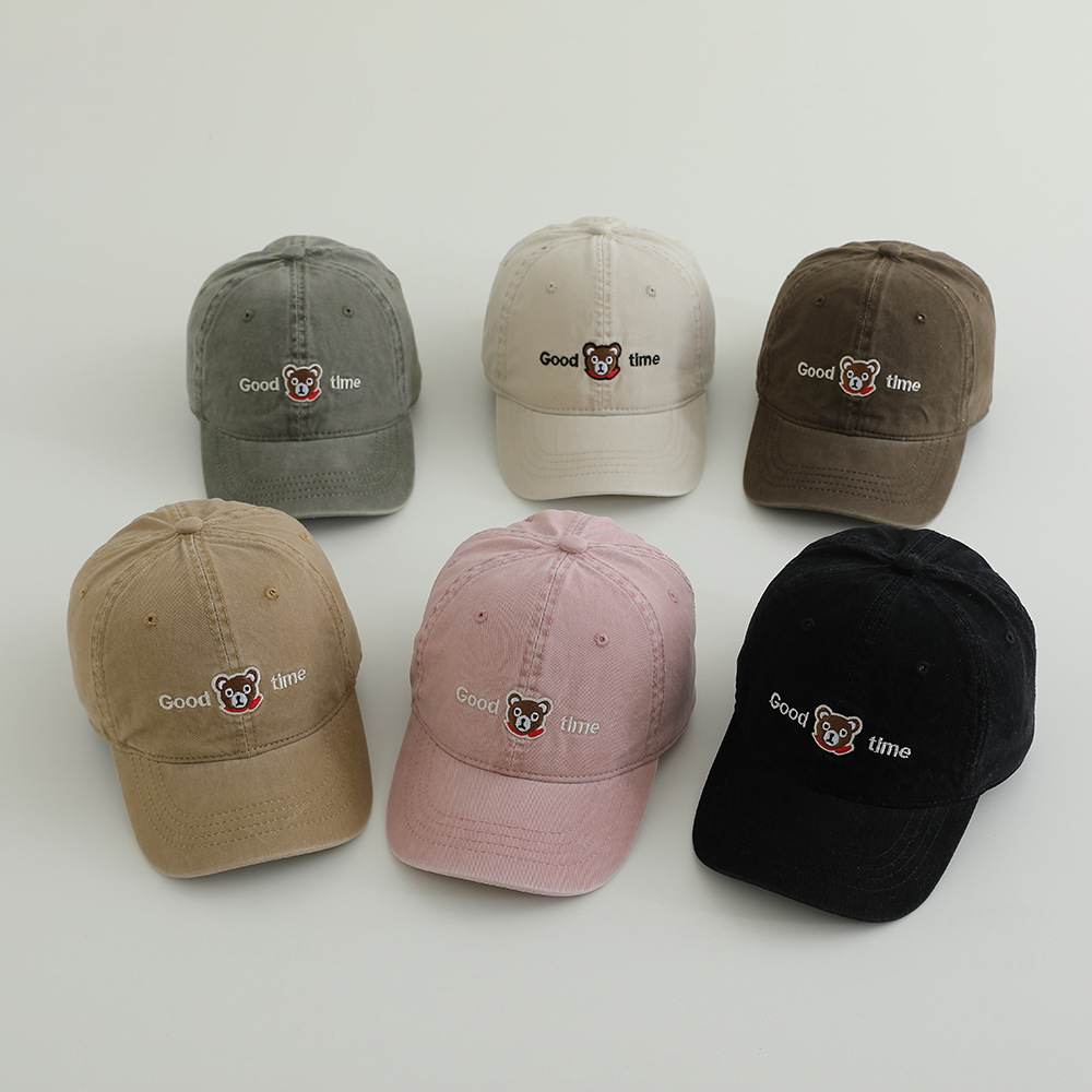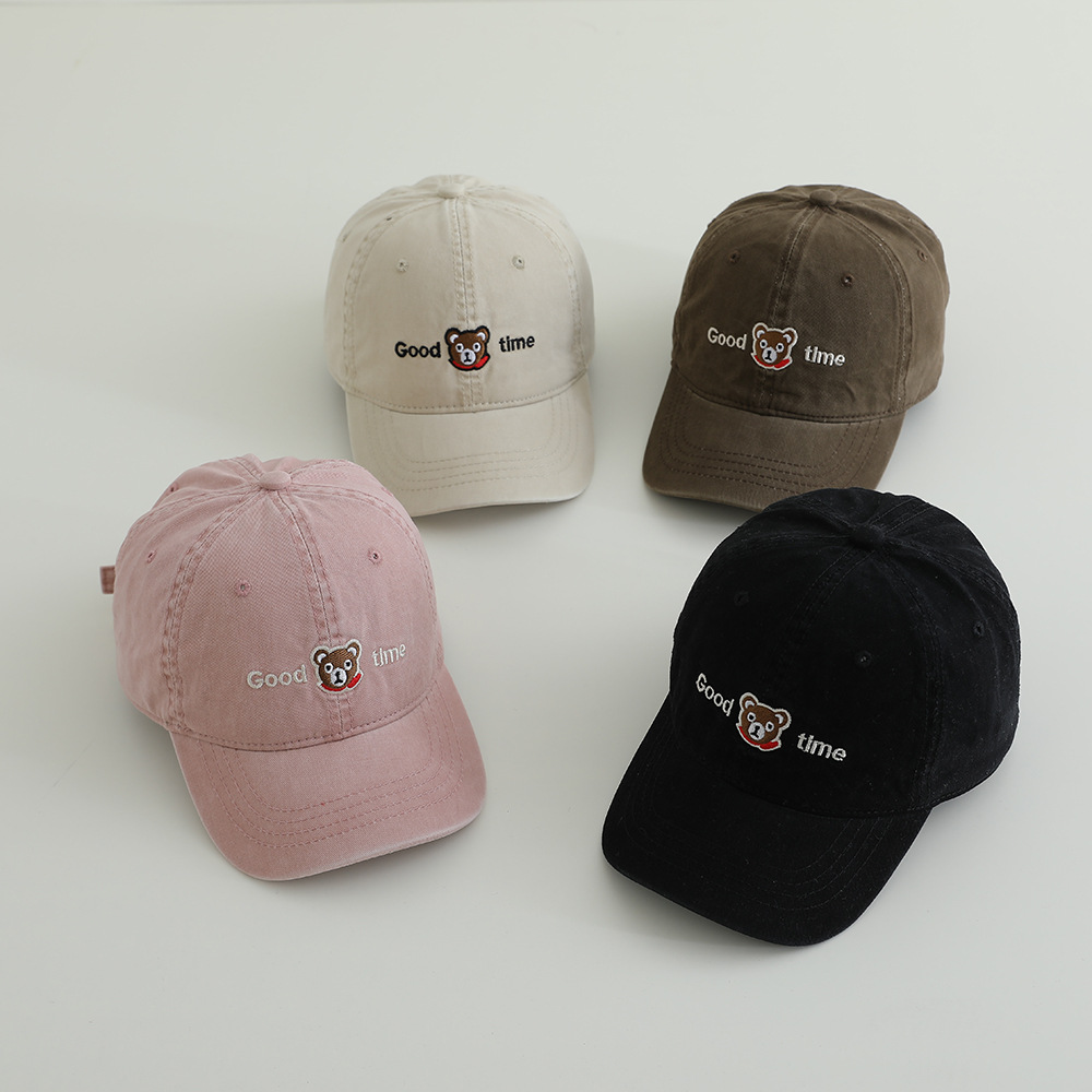 卡通眼镜熊水洗棉布儿童棒球帽春季新款百搭男女童帽子遮阳鸭舌帽