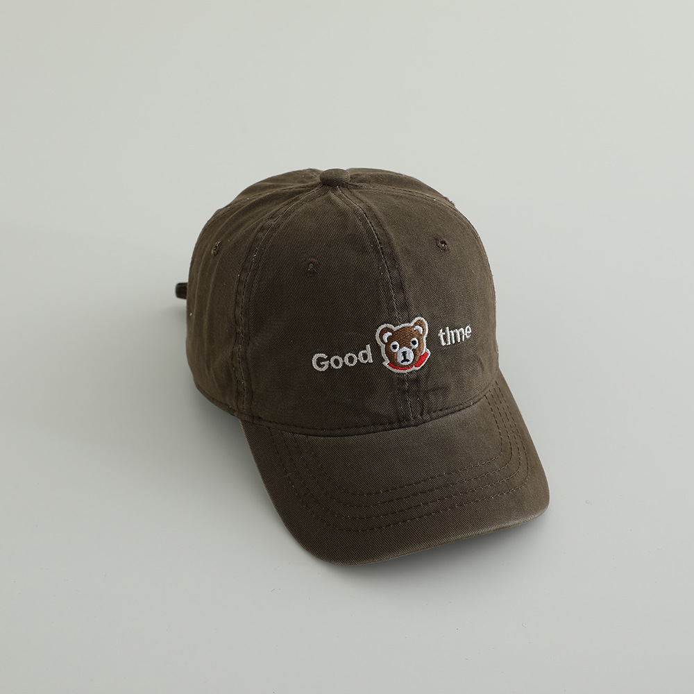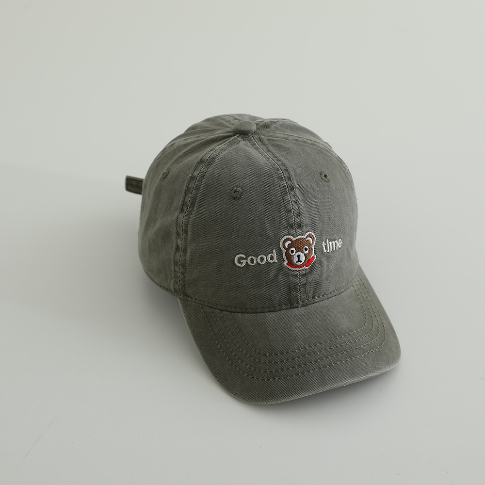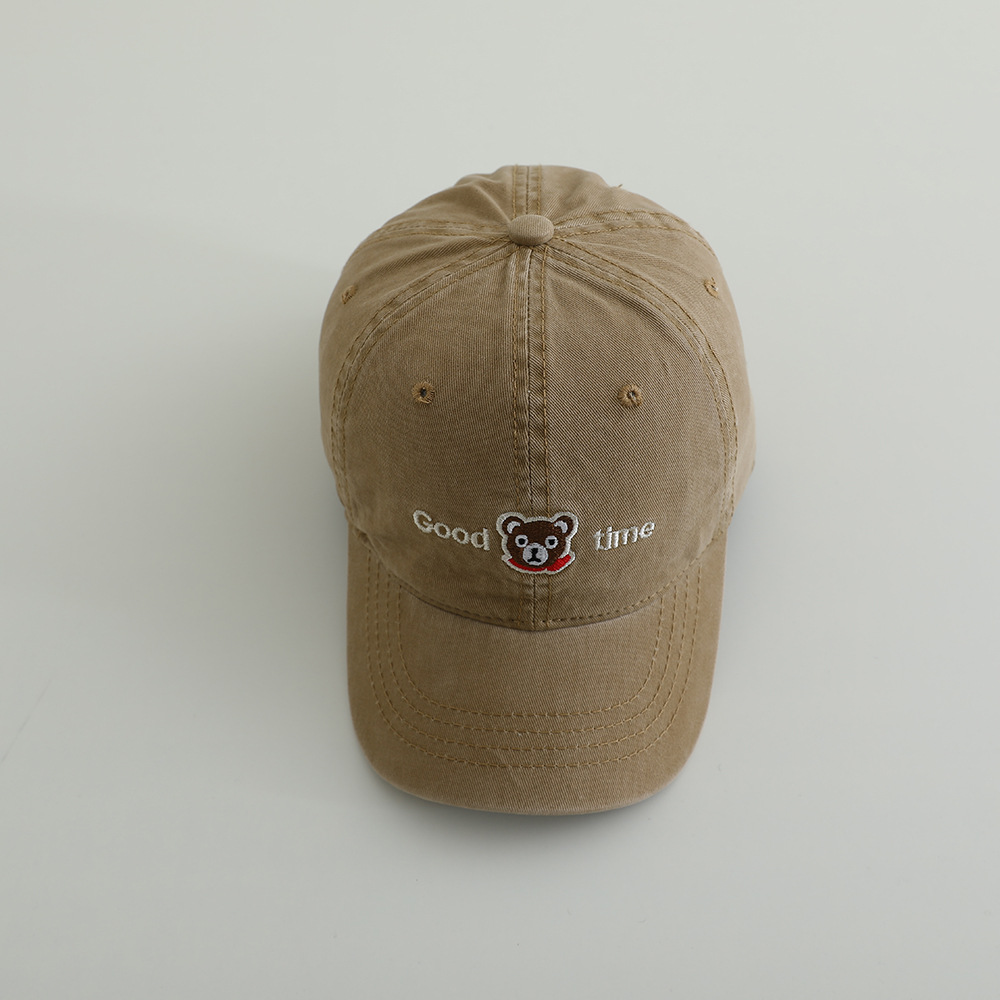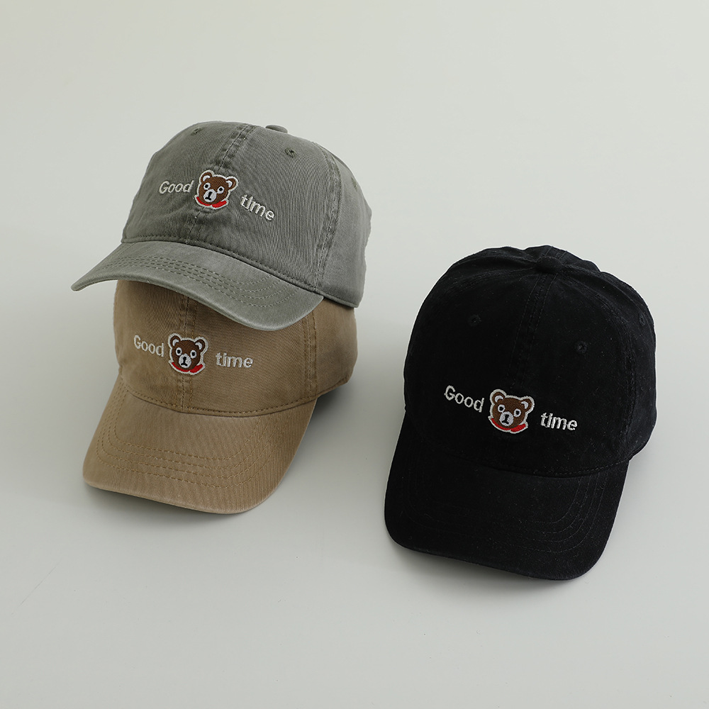 卡通眼镜熊水洗棉布儿童棒球帽春季新款百搭男女童帽子遮阳鸭舌帽