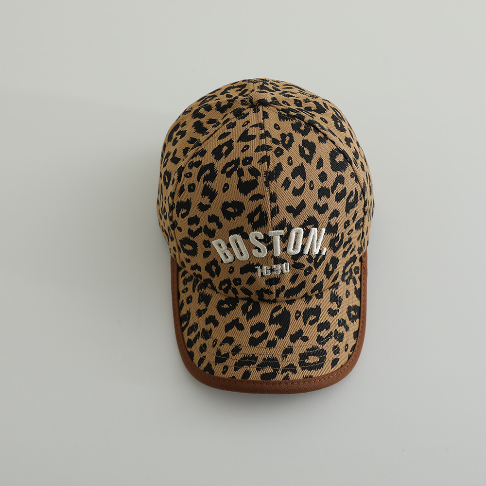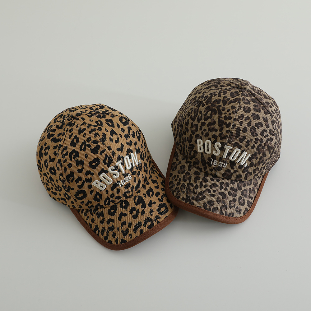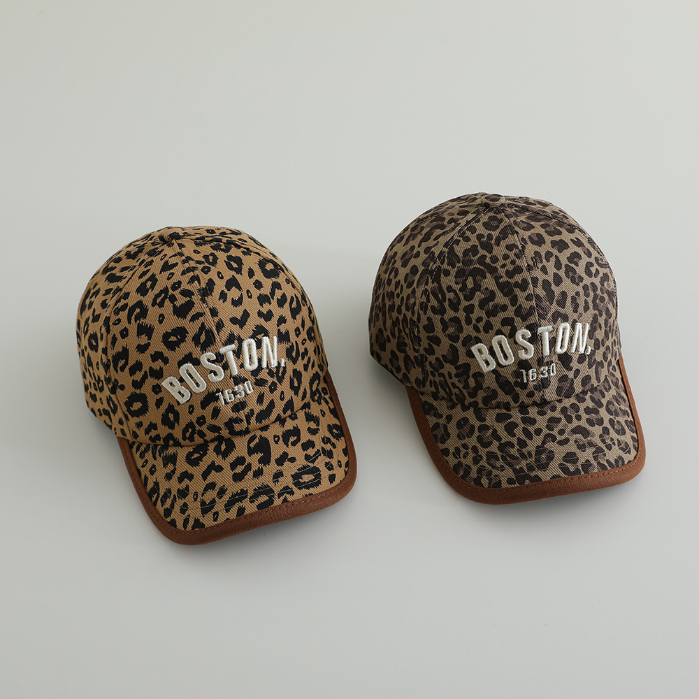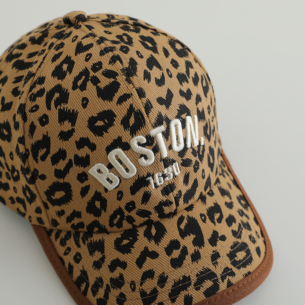 春季新款儿童帽子BOSTON豹纹棒球帽男童时尚百搭遮阳女童鸭舌帽