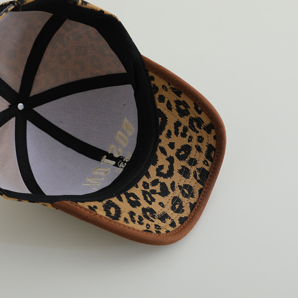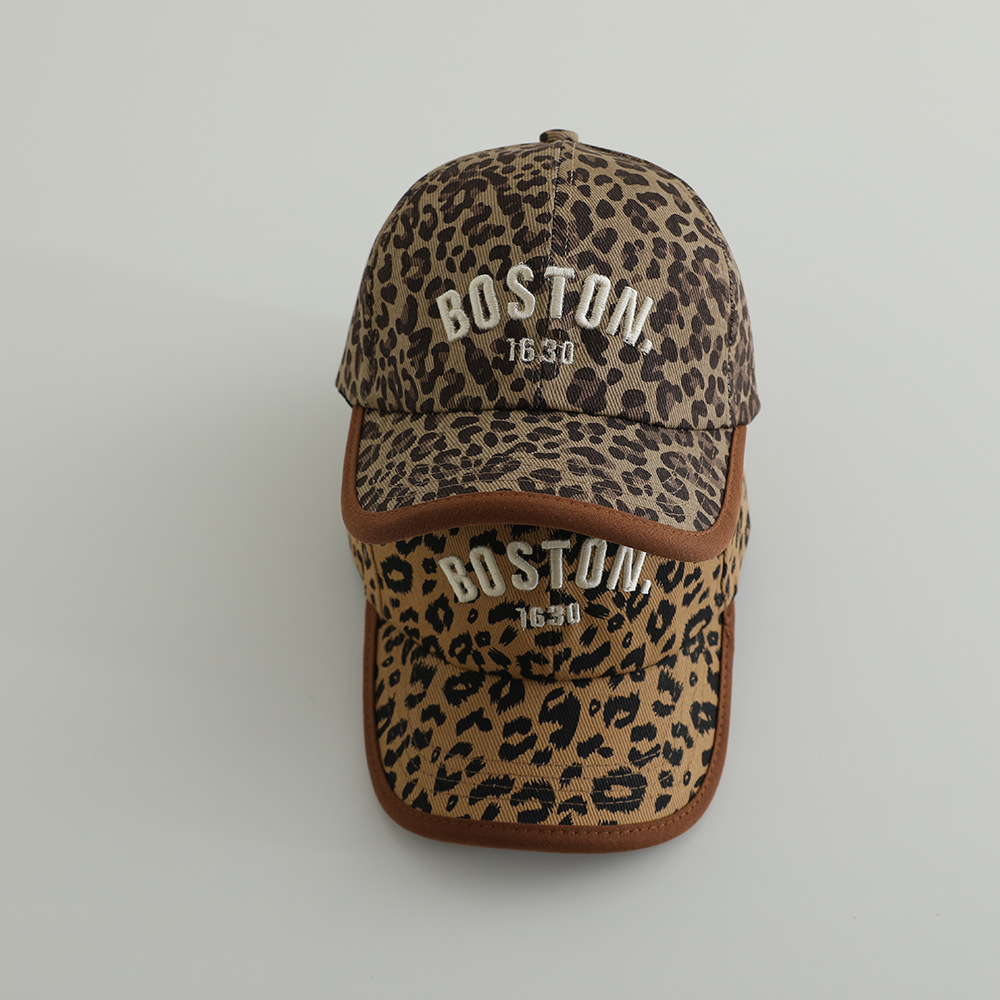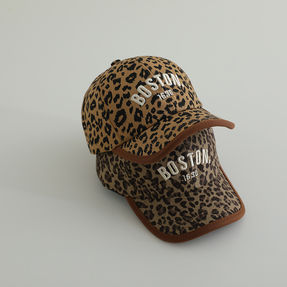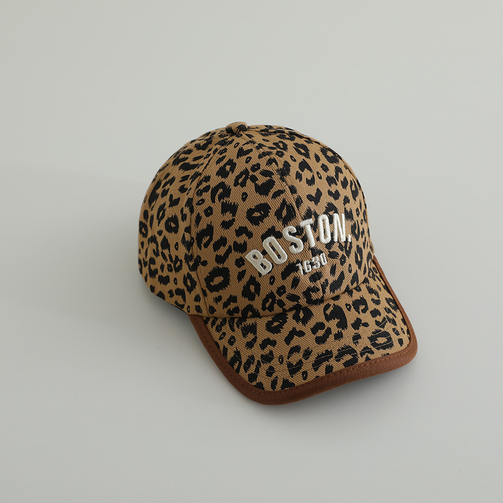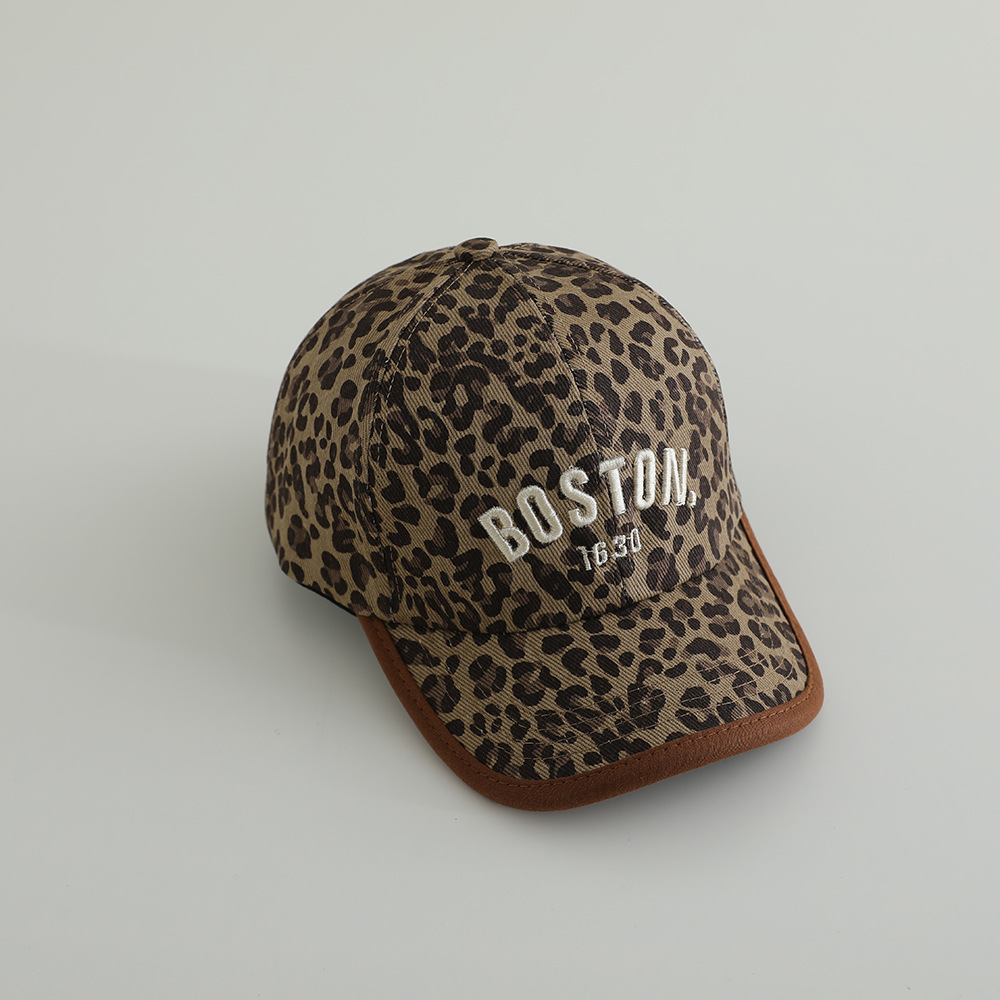 春季新款儿童帽子BOSTON豹纹棒球帽男童时尚百搭遮阳女童鸭舌帽