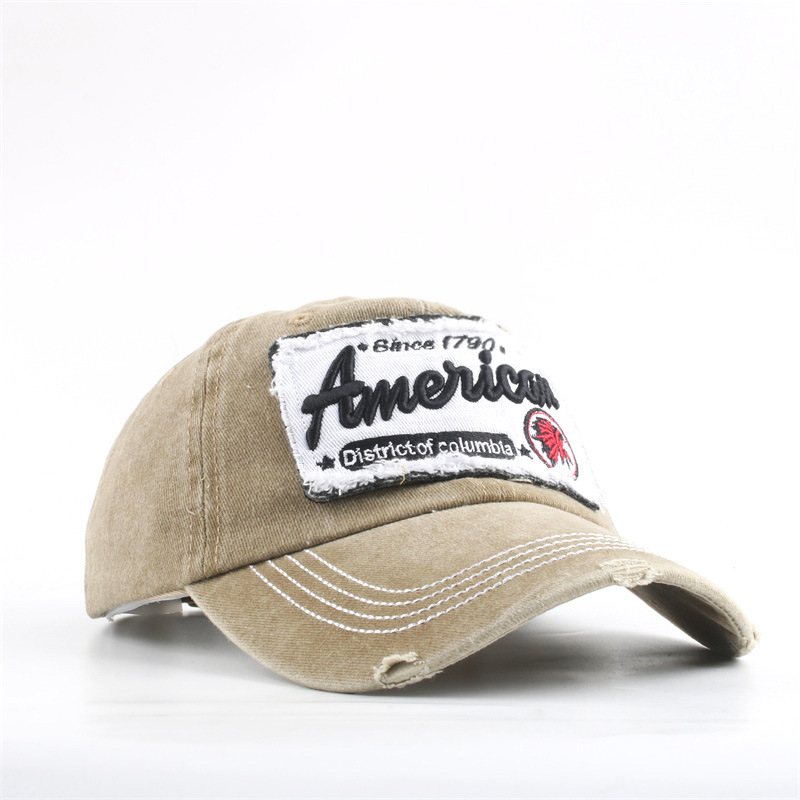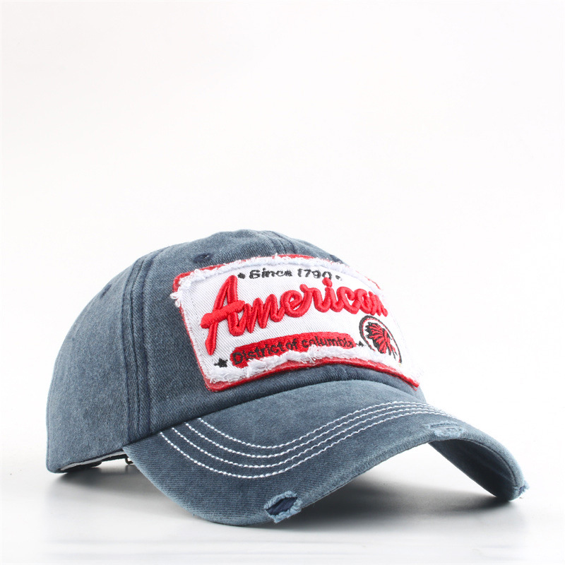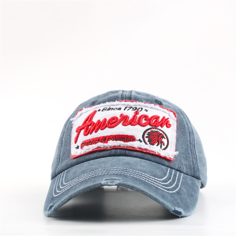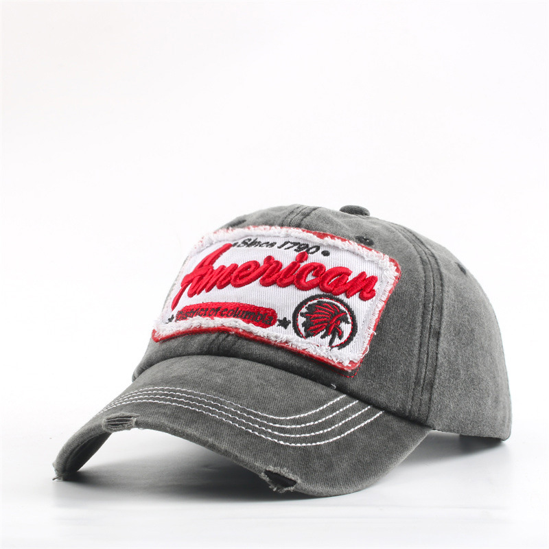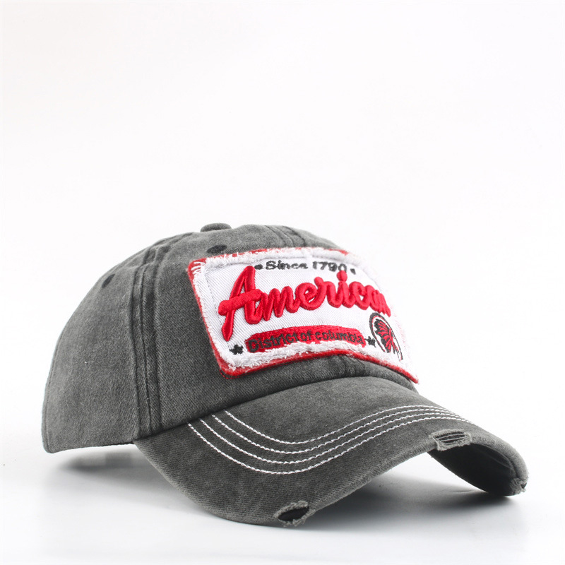 2025新款男士帽子欧美做旧破洞水洗棒球帽Ameican字母鸭舌帽女