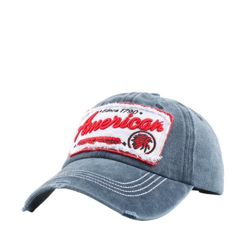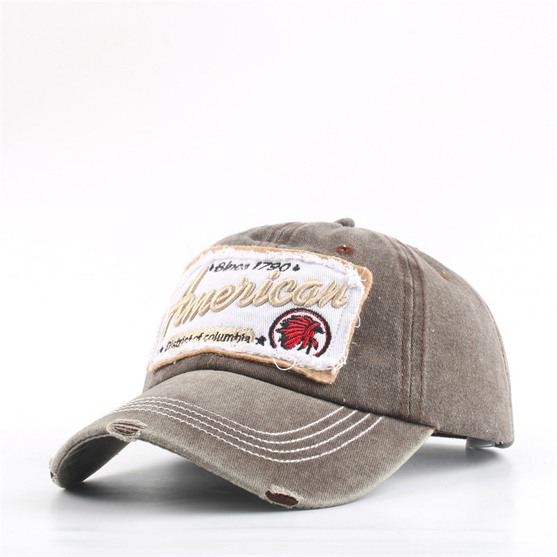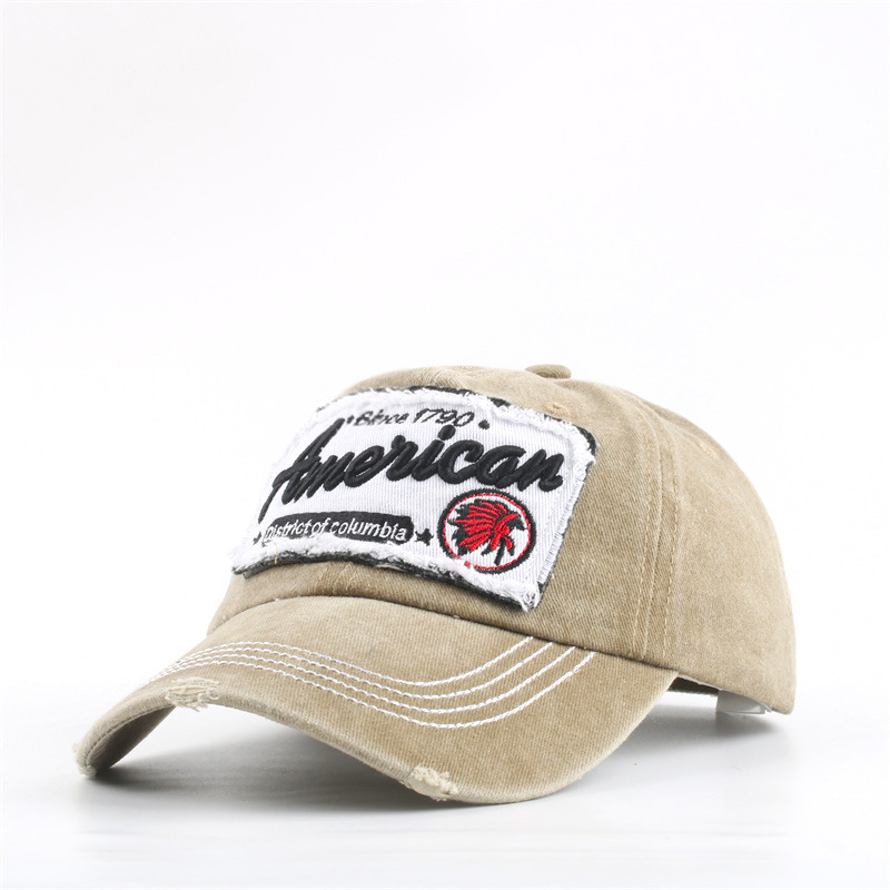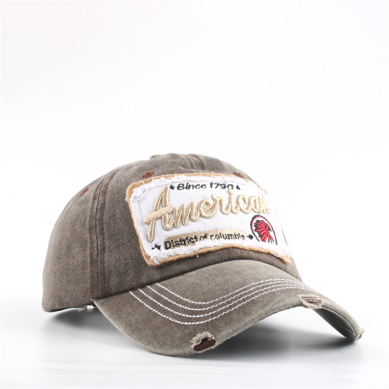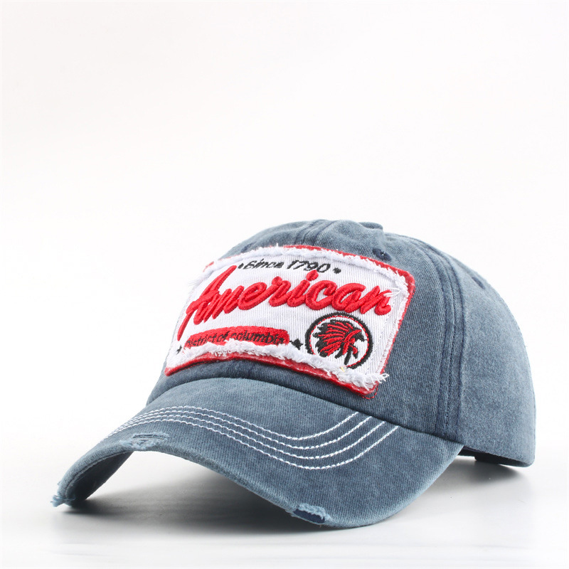2025新款男士帽子欧美做旧破洞水洗棒球帽Ameican字母鸭舌帽女