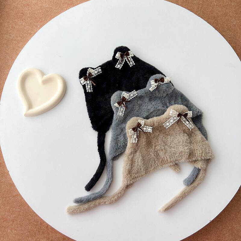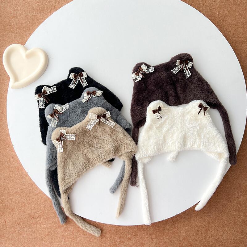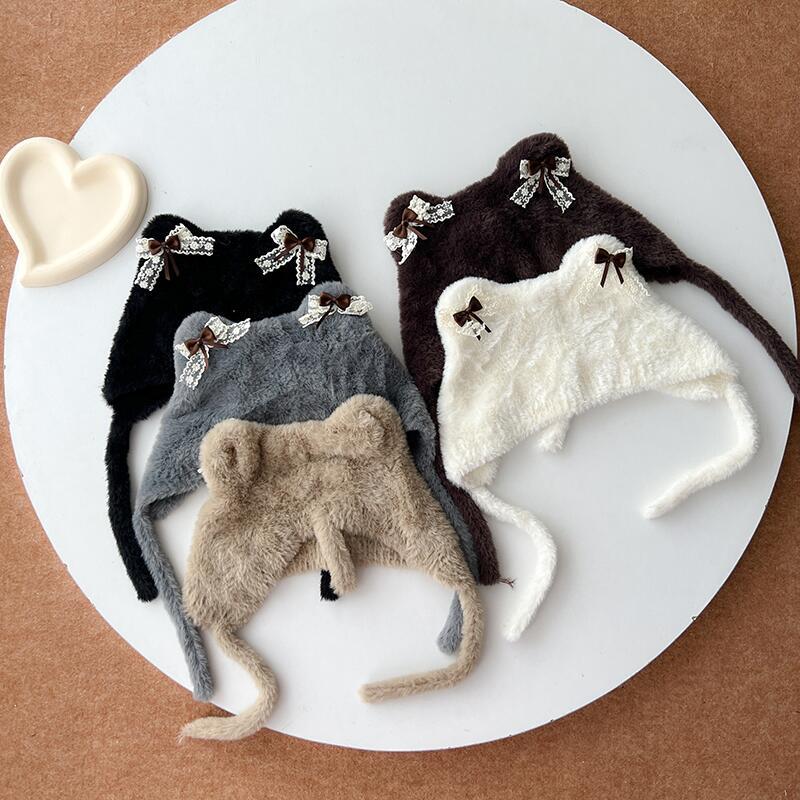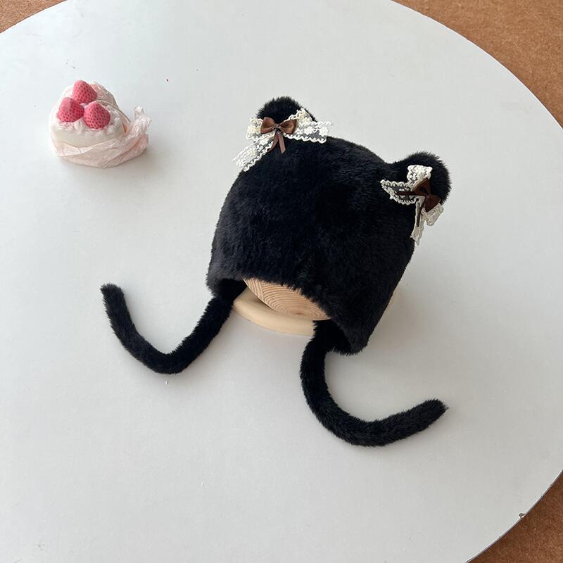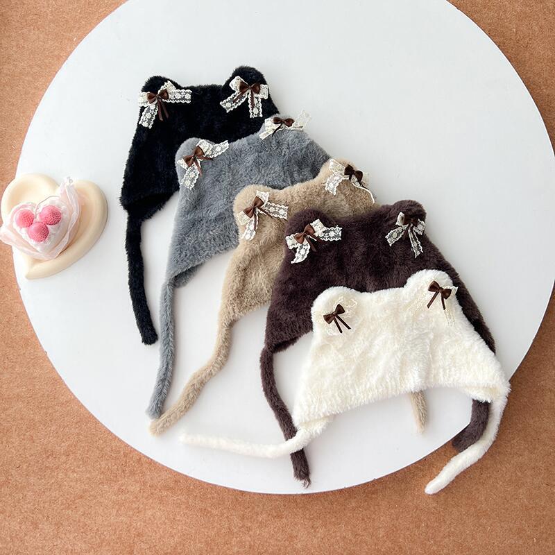 2024秋季新款儿童帽子卡通洛丽塔猫耳朵护耳毛线帽冬天保暖针织帽