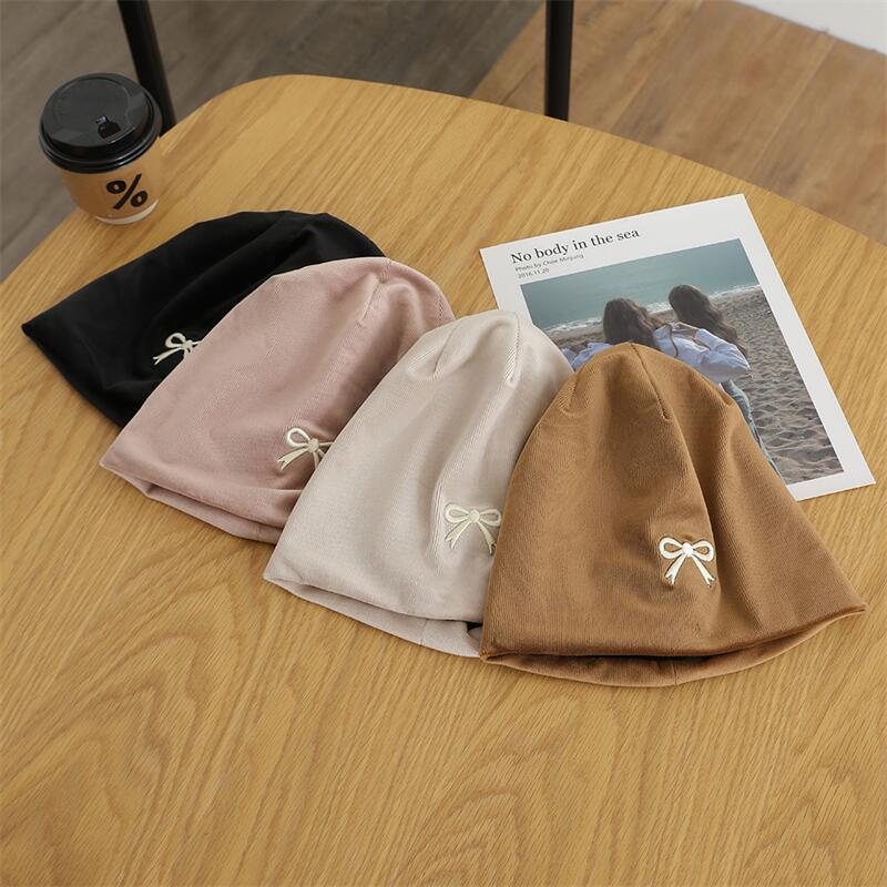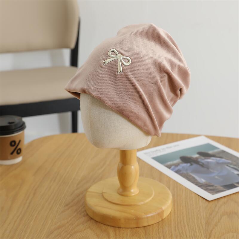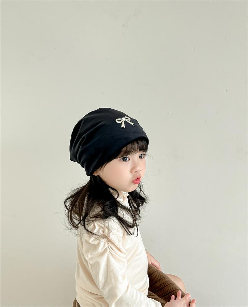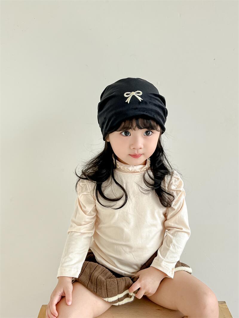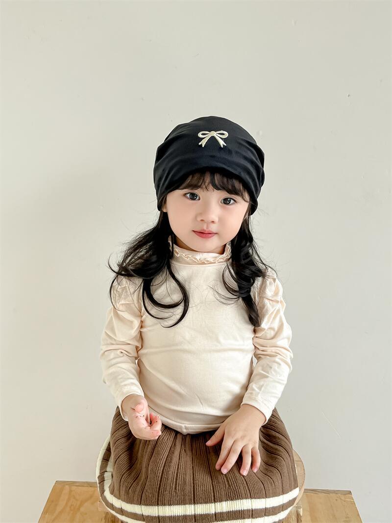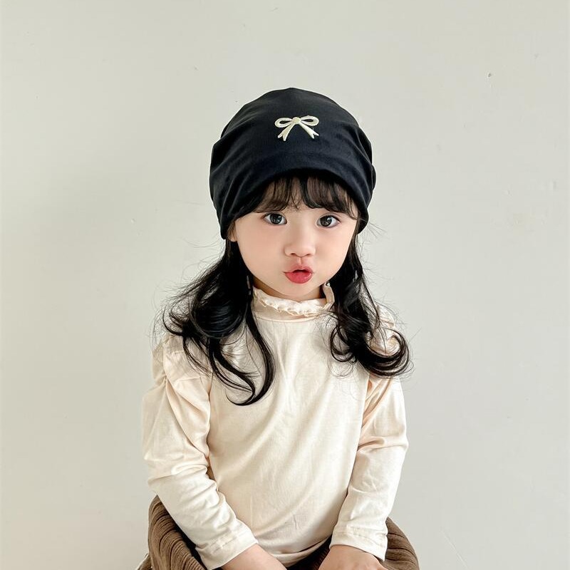 欧美跨境儿童套头帽百搭刺绣蝴蝶结套头堆堆帽森系女童保暖童帽
