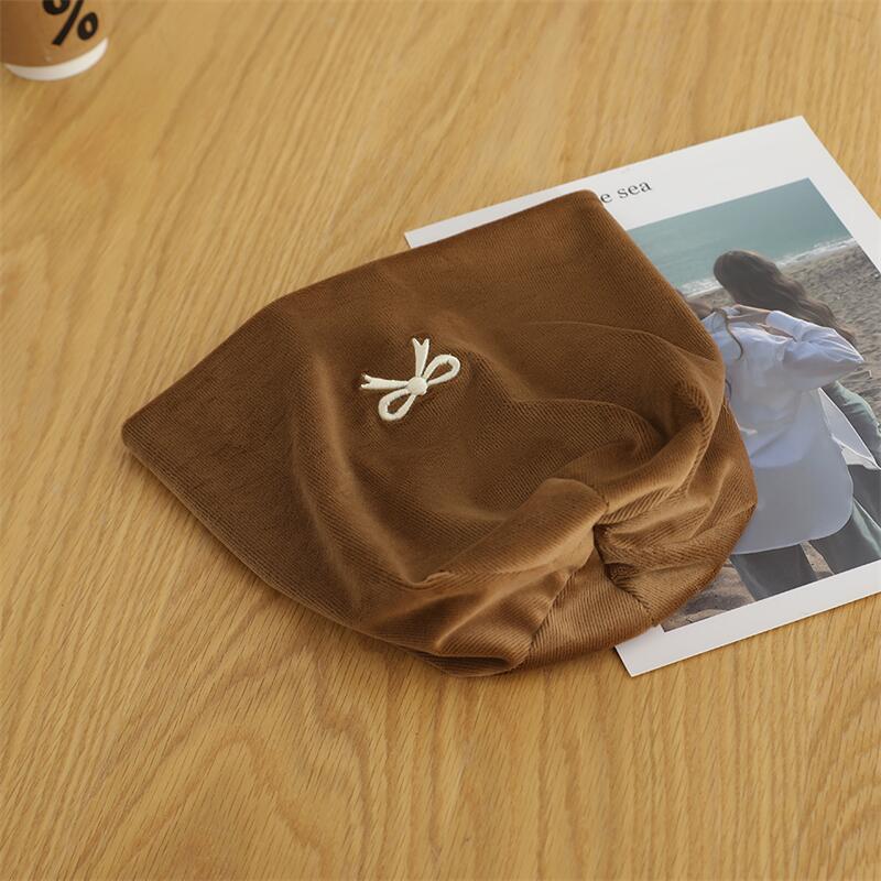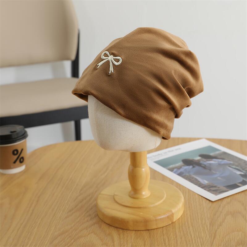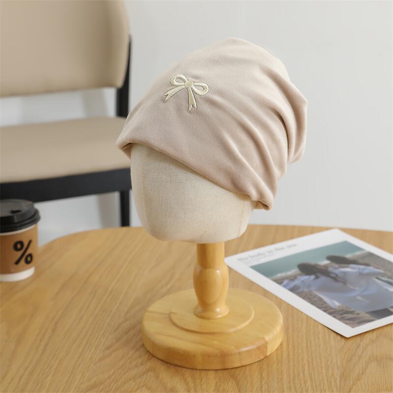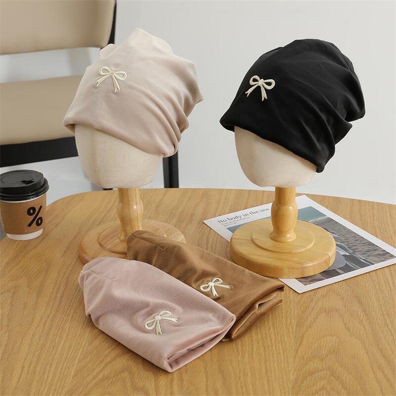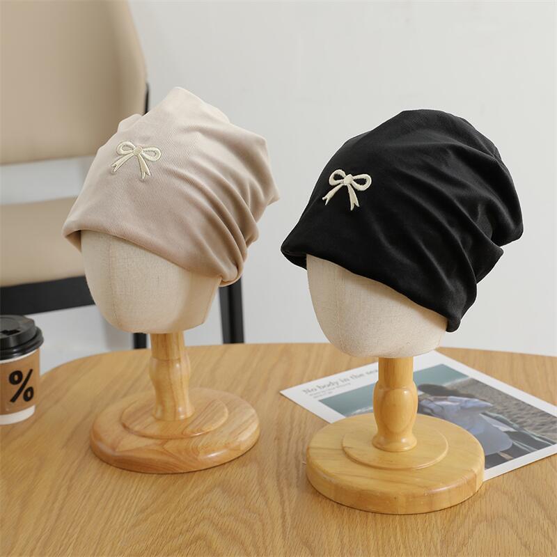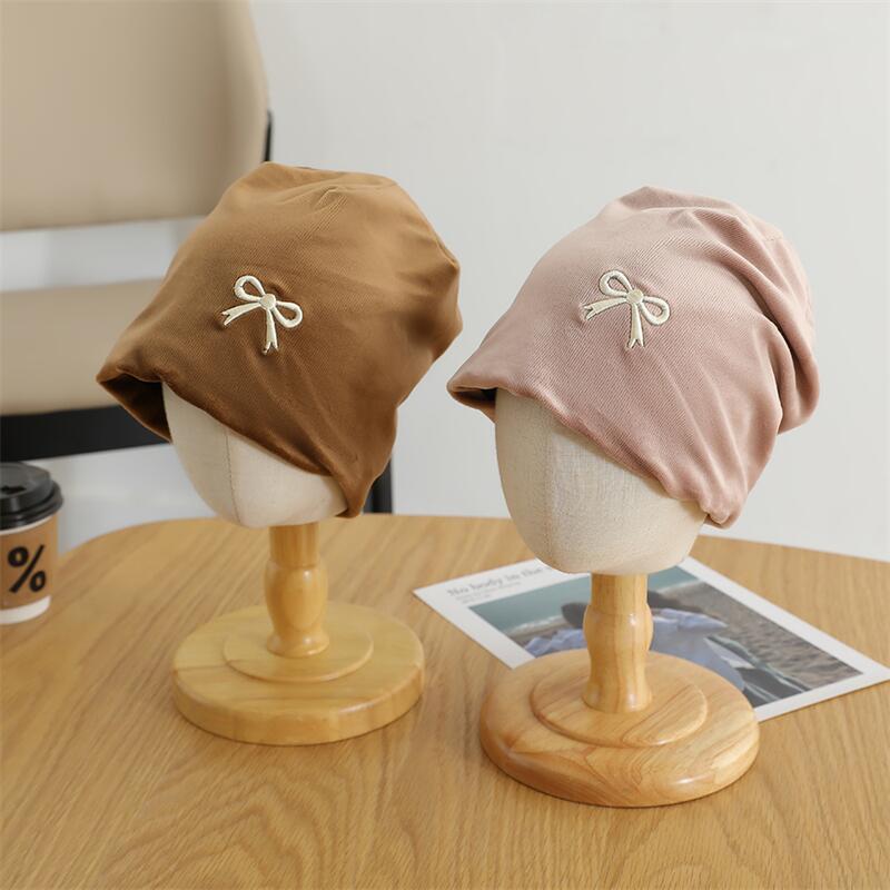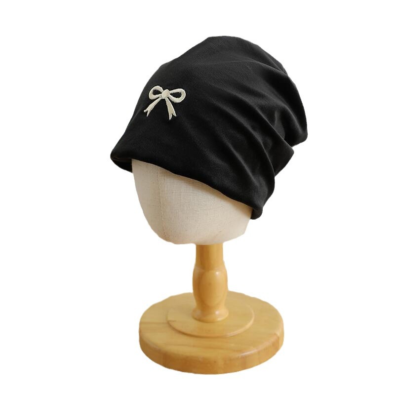 欧美跨境儿童套头帽百搭刺绣蝴蝶结套头堆堆帽森系女童保暖童帽