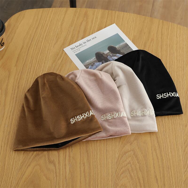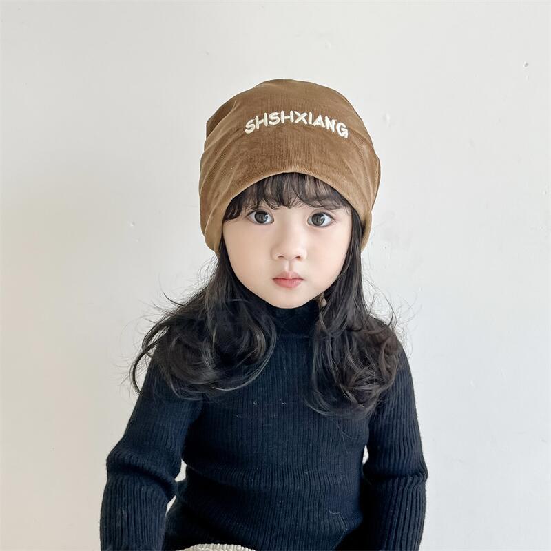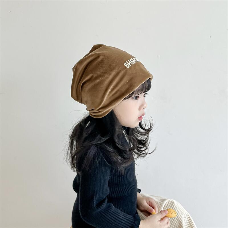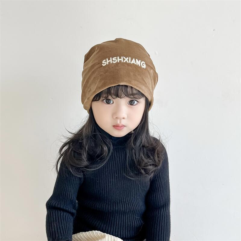 韩版潮流儿童套头帽百搭刺绣字母套头堆堆帽森系女童保暖童帽批发