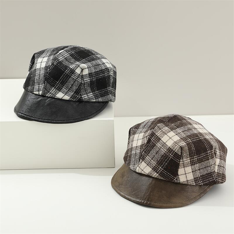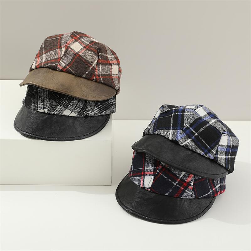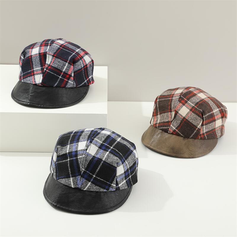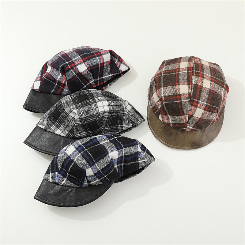 宝宝帽子秋冬季男女儿童贝雷帽休闲洋气英伦格子小孩南瓜帽画家帽