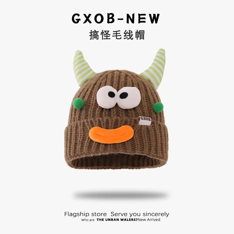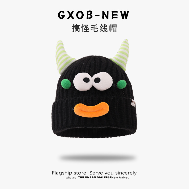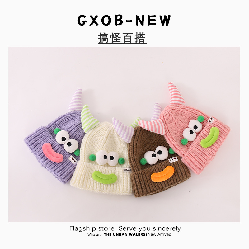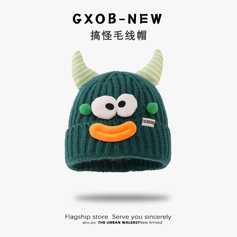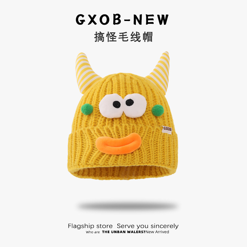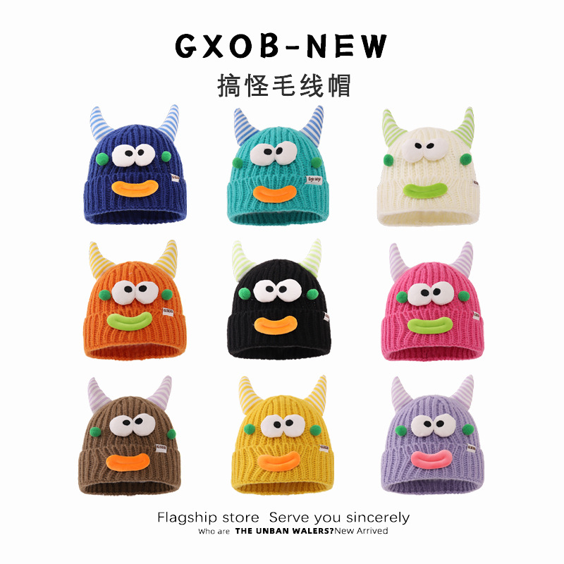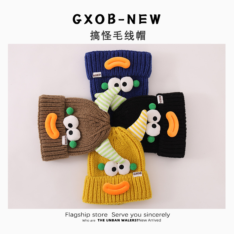 儿童帽子批发秋季新款搞怪小鱼宝宝针织帽冬天保暖男童女童毛线帽