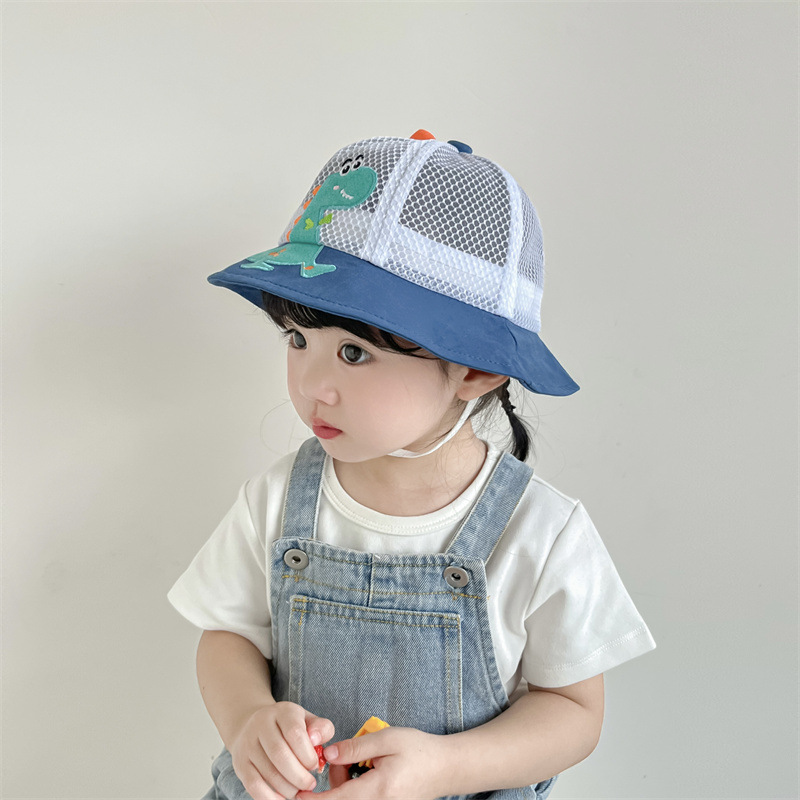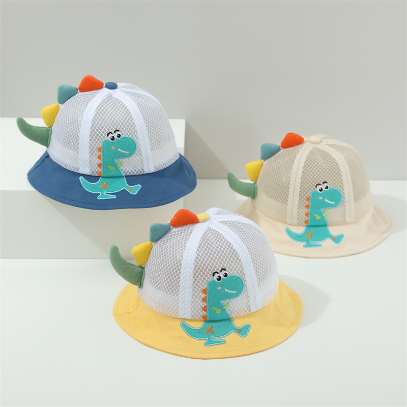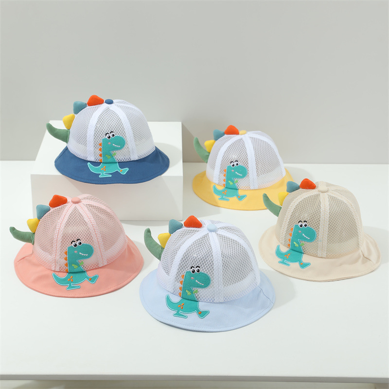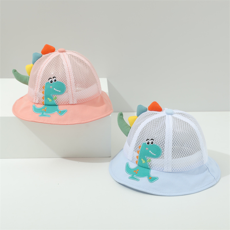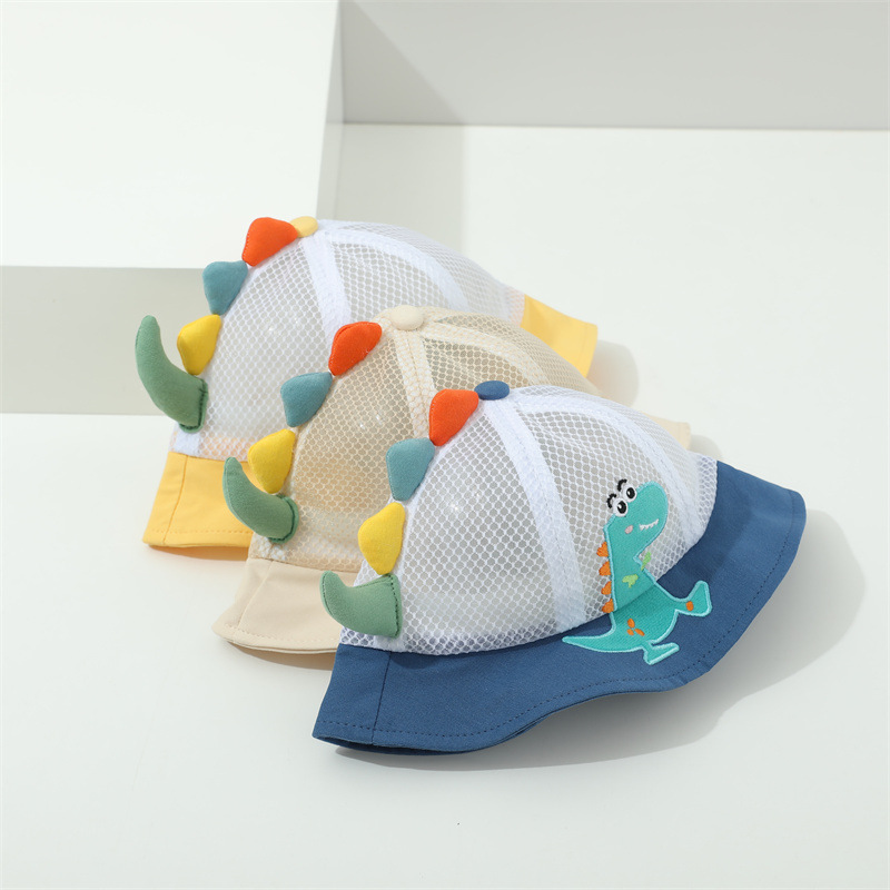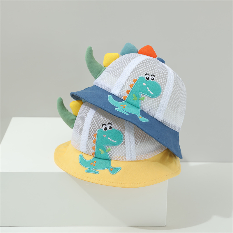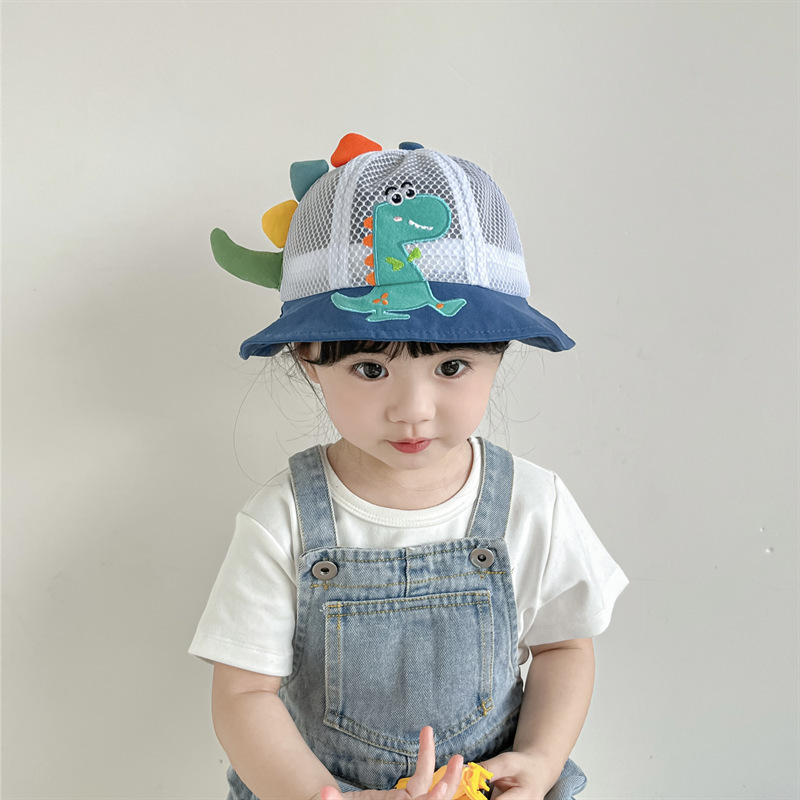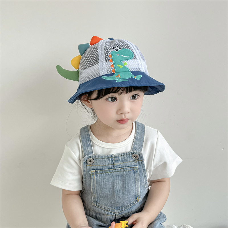 小恐龙儿童渔夫帽夏男童遮阳防晒帽子宝宝可爱超萌女童太阳帽童帽