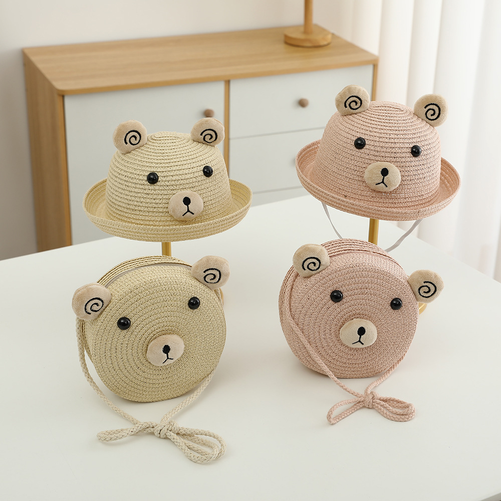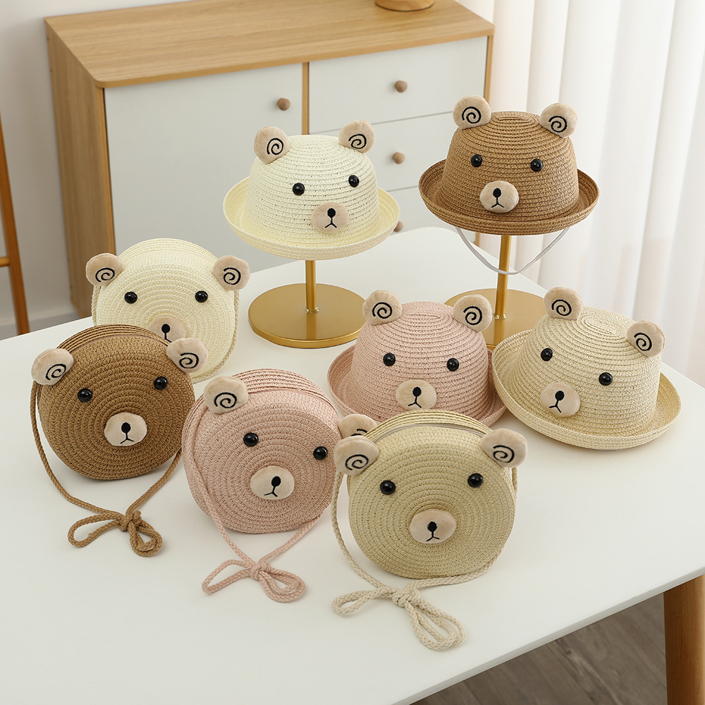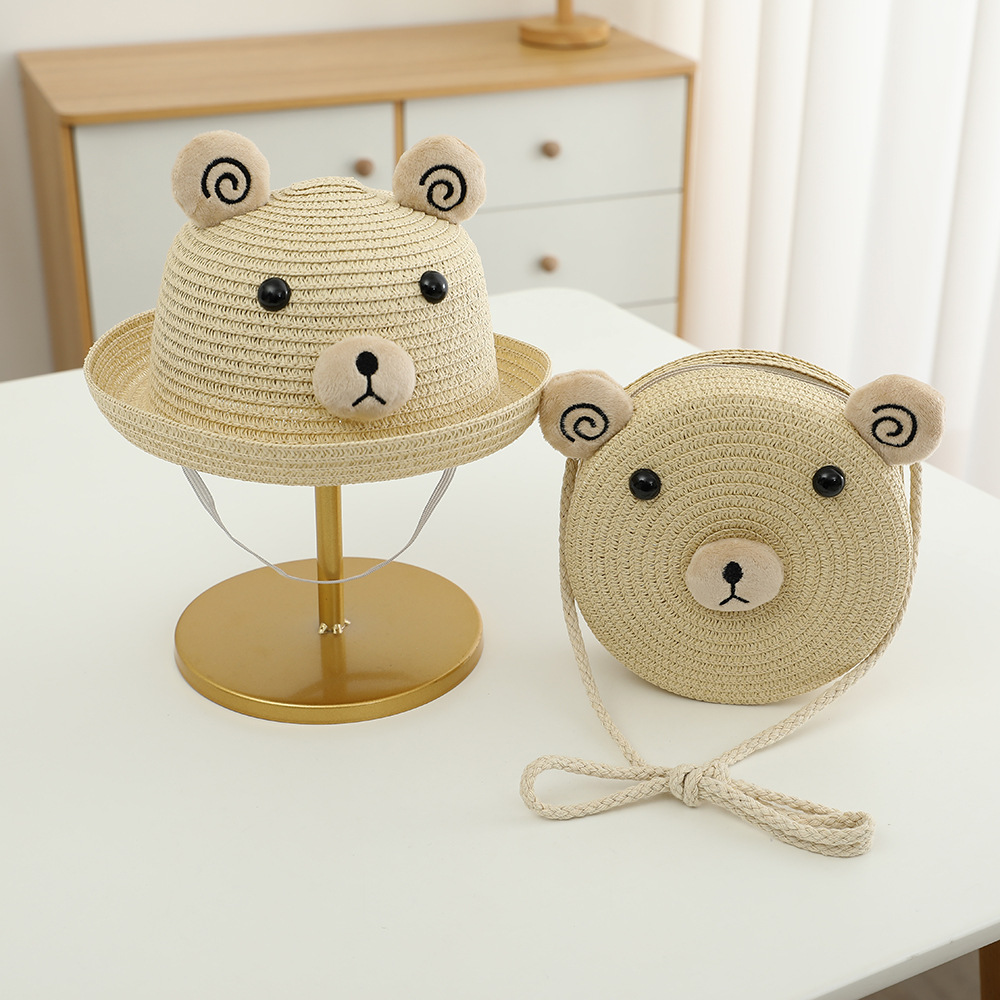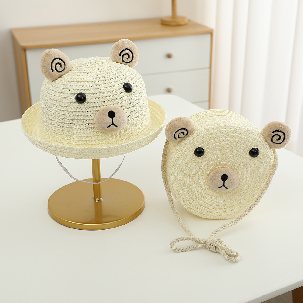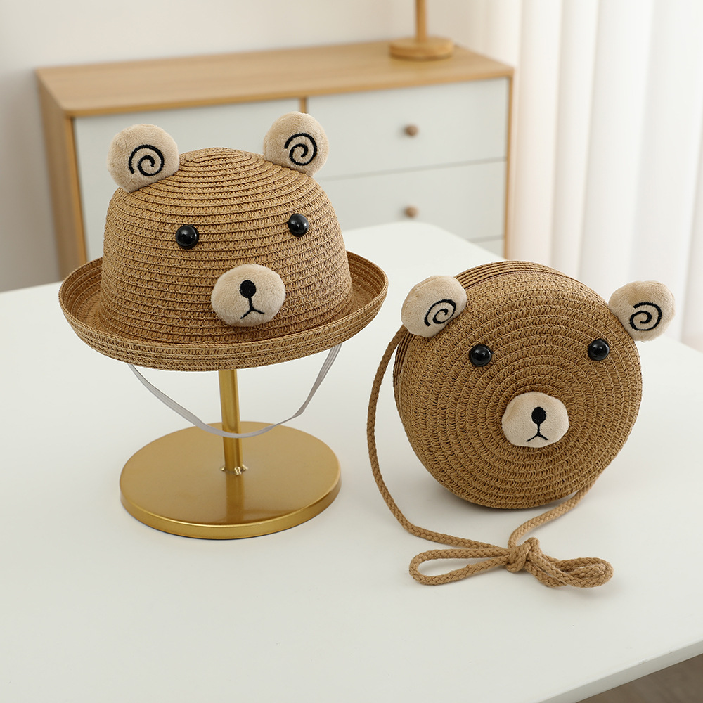 韩国儿童帽子包包卡通可爱晕晕熊男童女童草帽夏天防晒遮阳太阳帽
