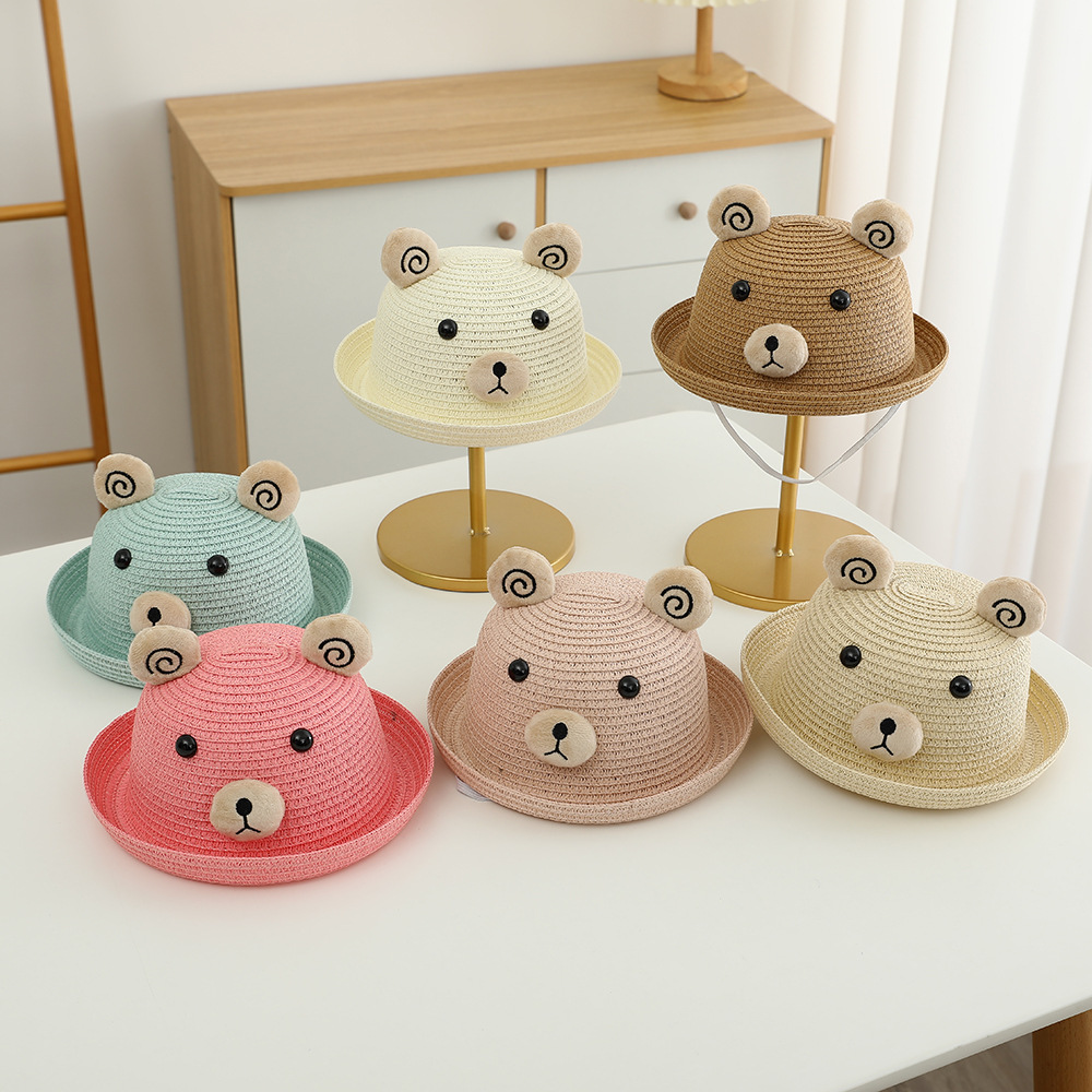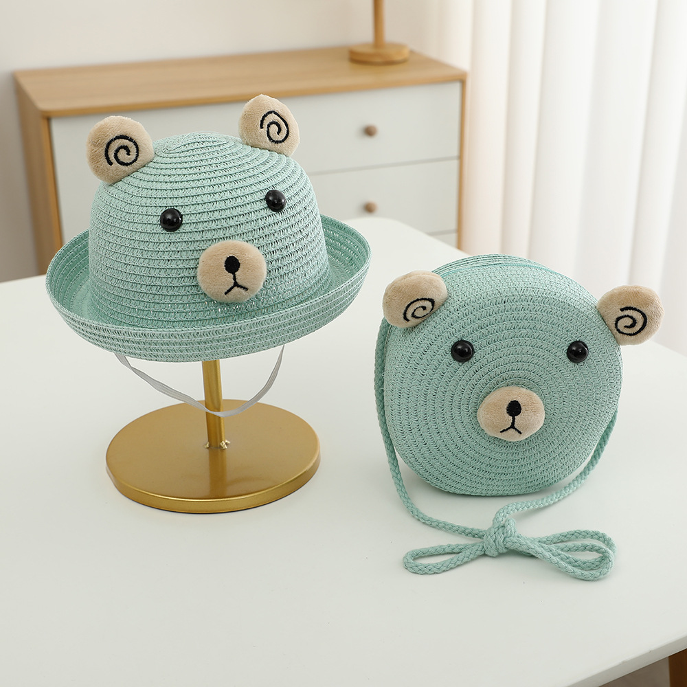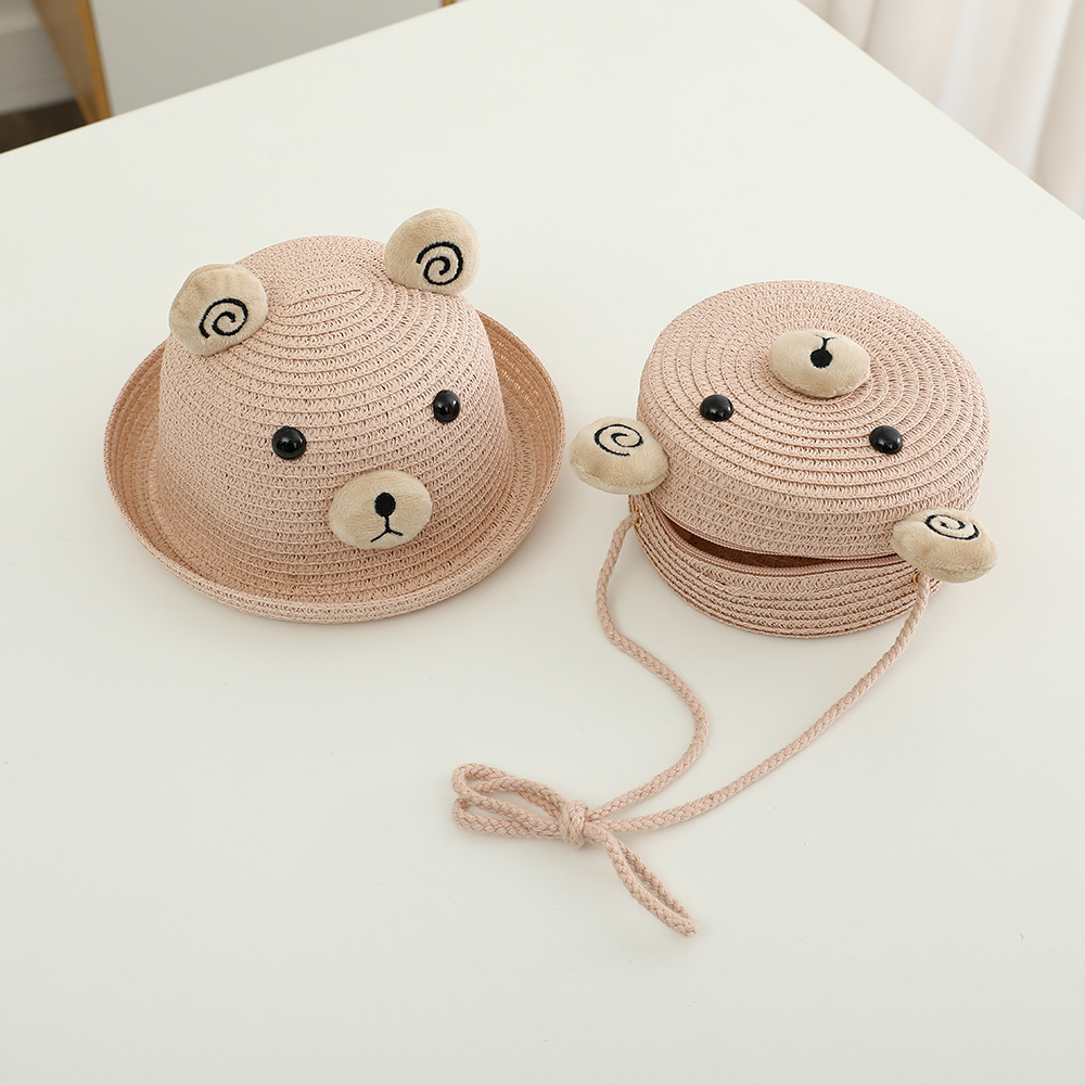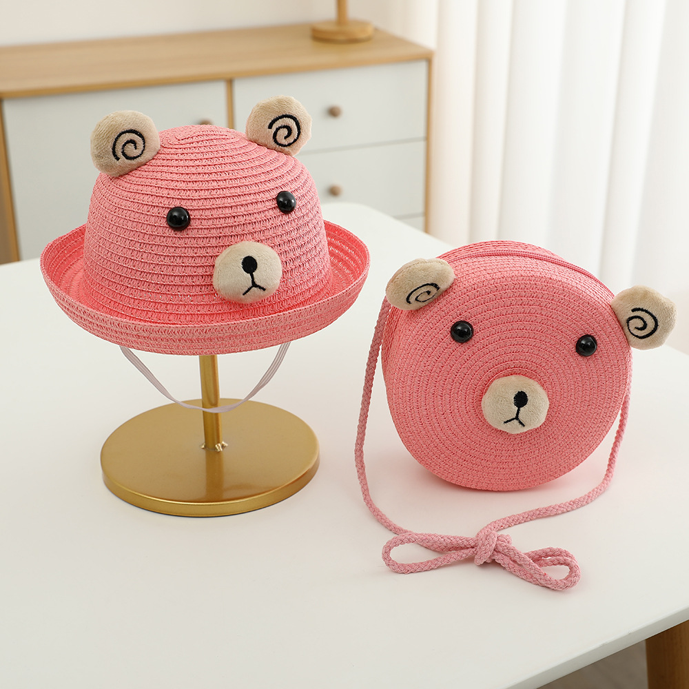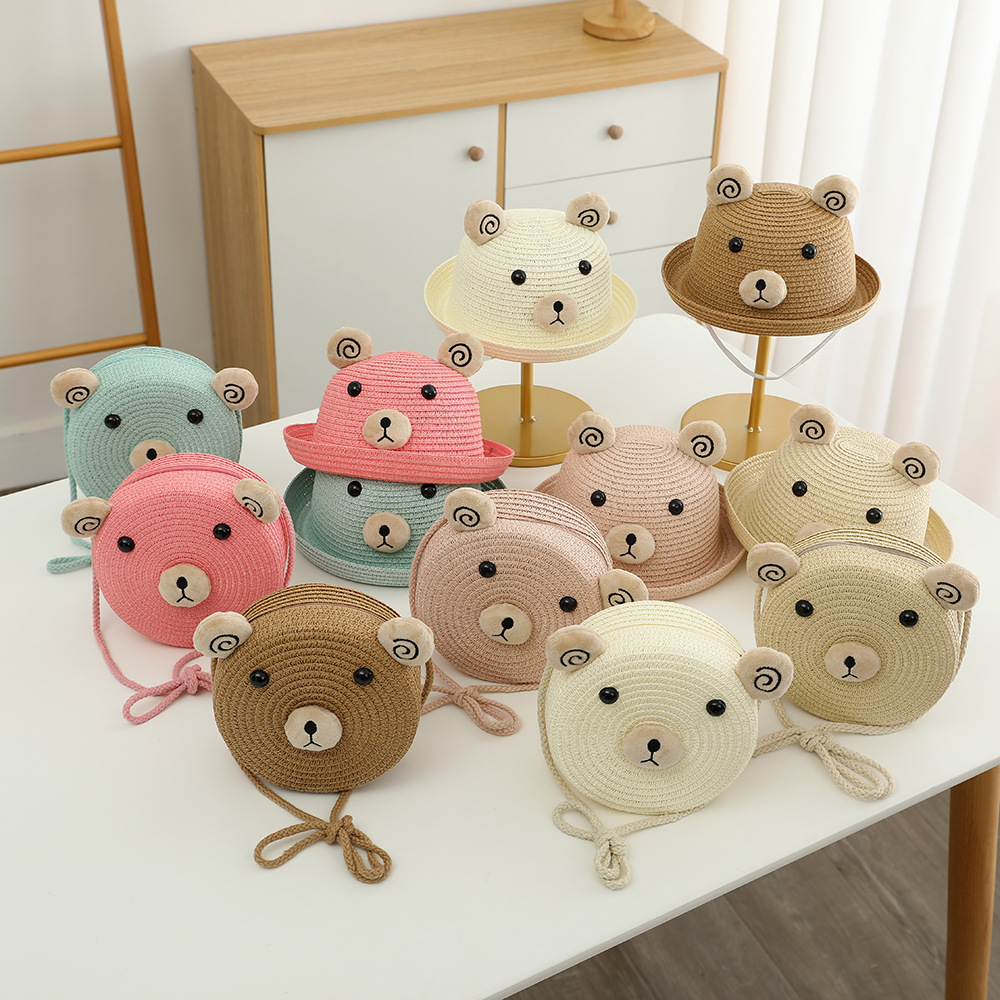 韩国儿童帽子包包卡通可爱晕晕熊男童女童草帽夏天防晒遮阳太阳帽