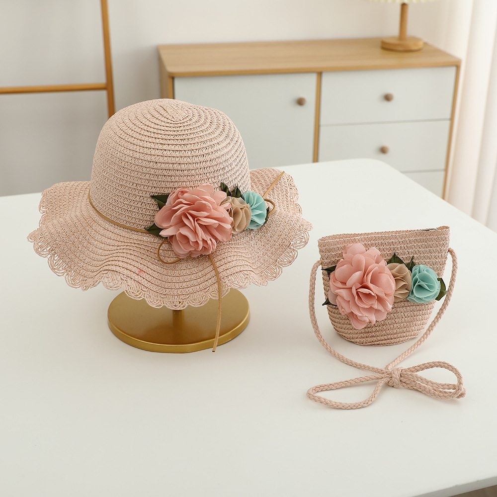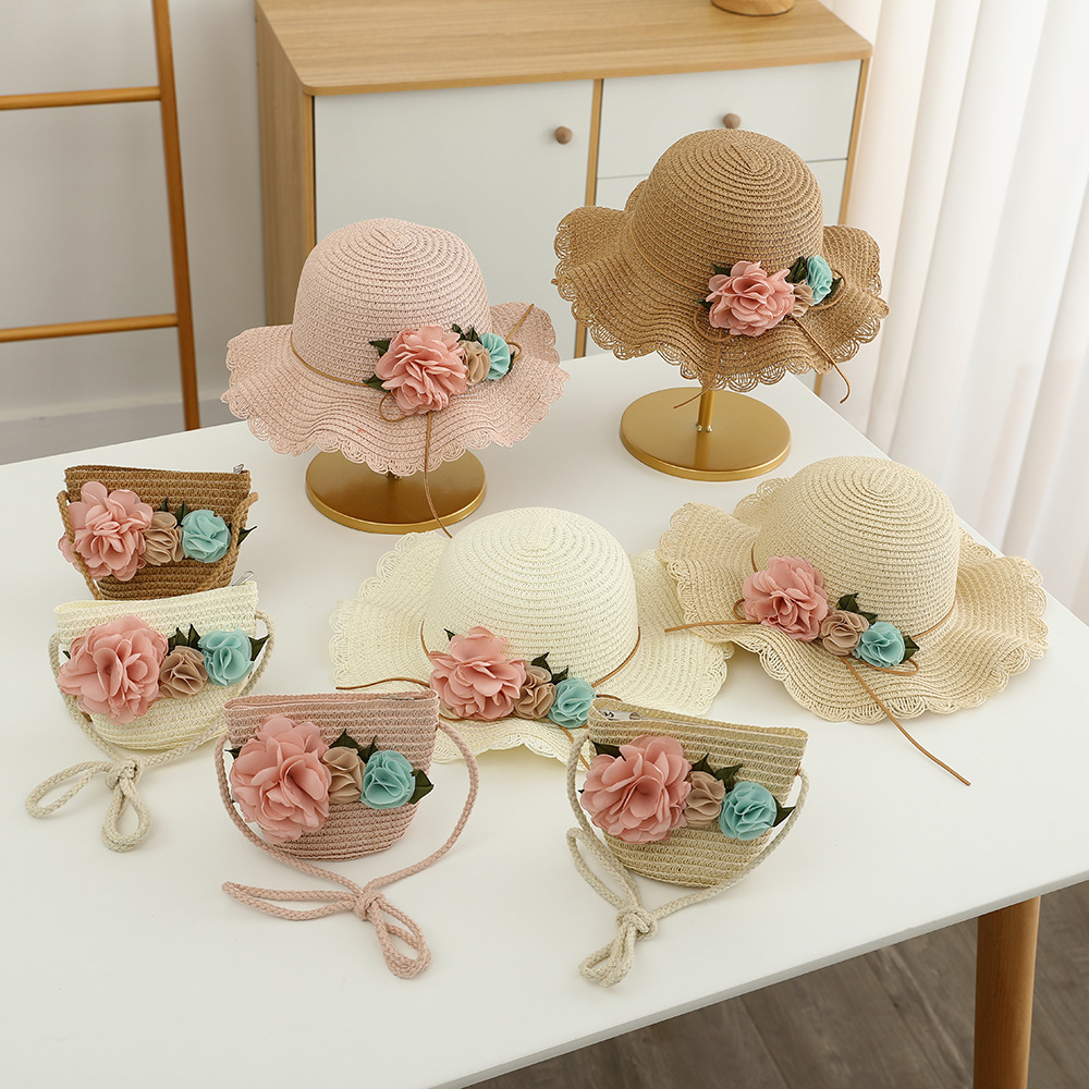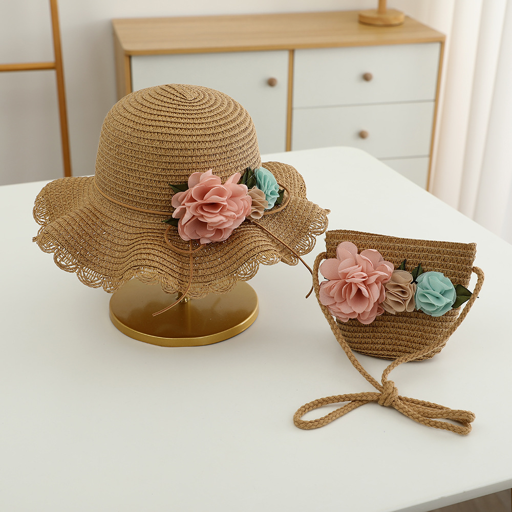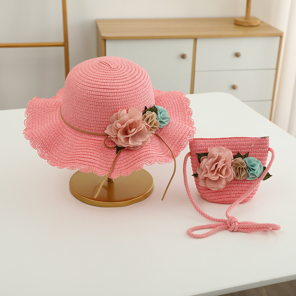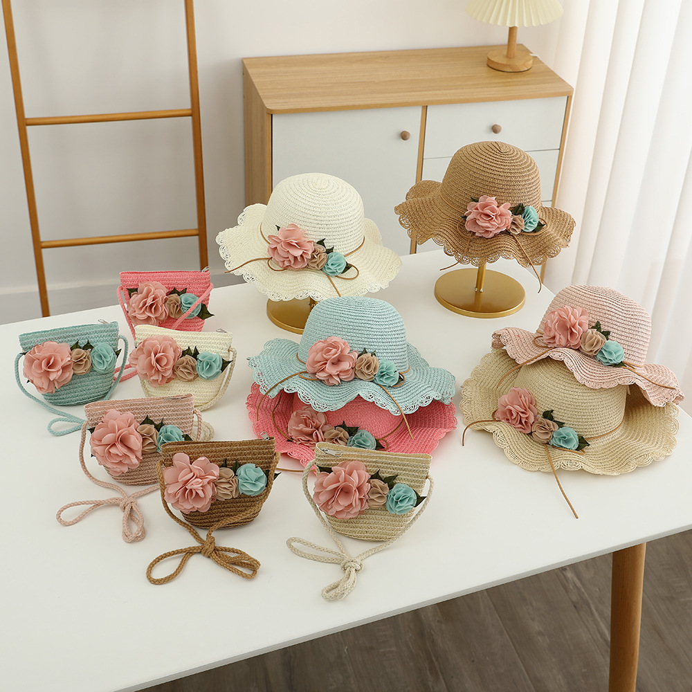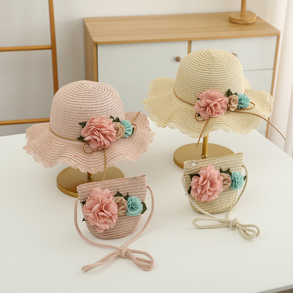 儿童遮阳帽子包包甜美公主花朵女童草帽夏天韩版潮流防晒太阳帽