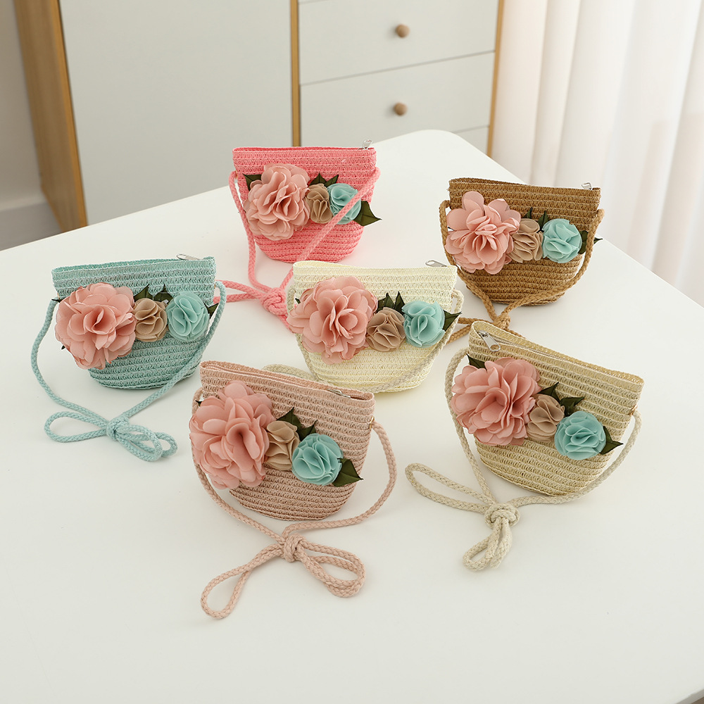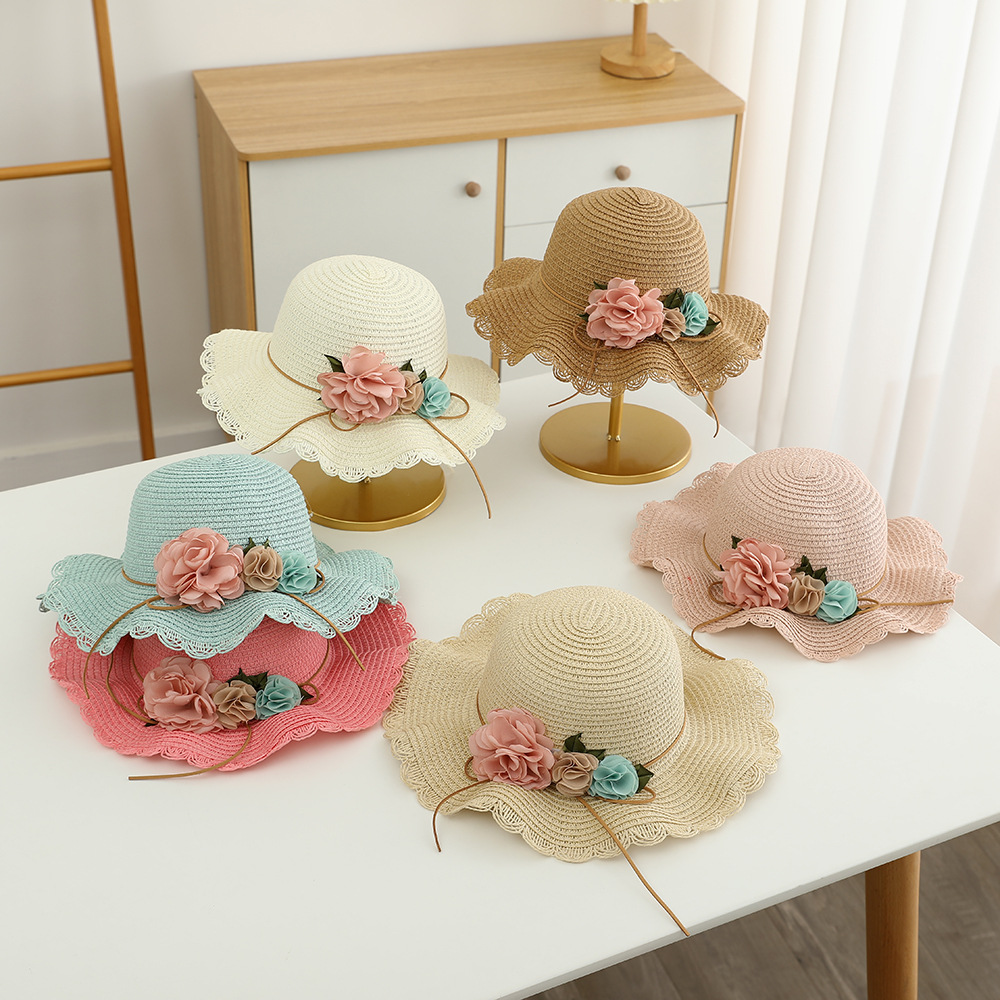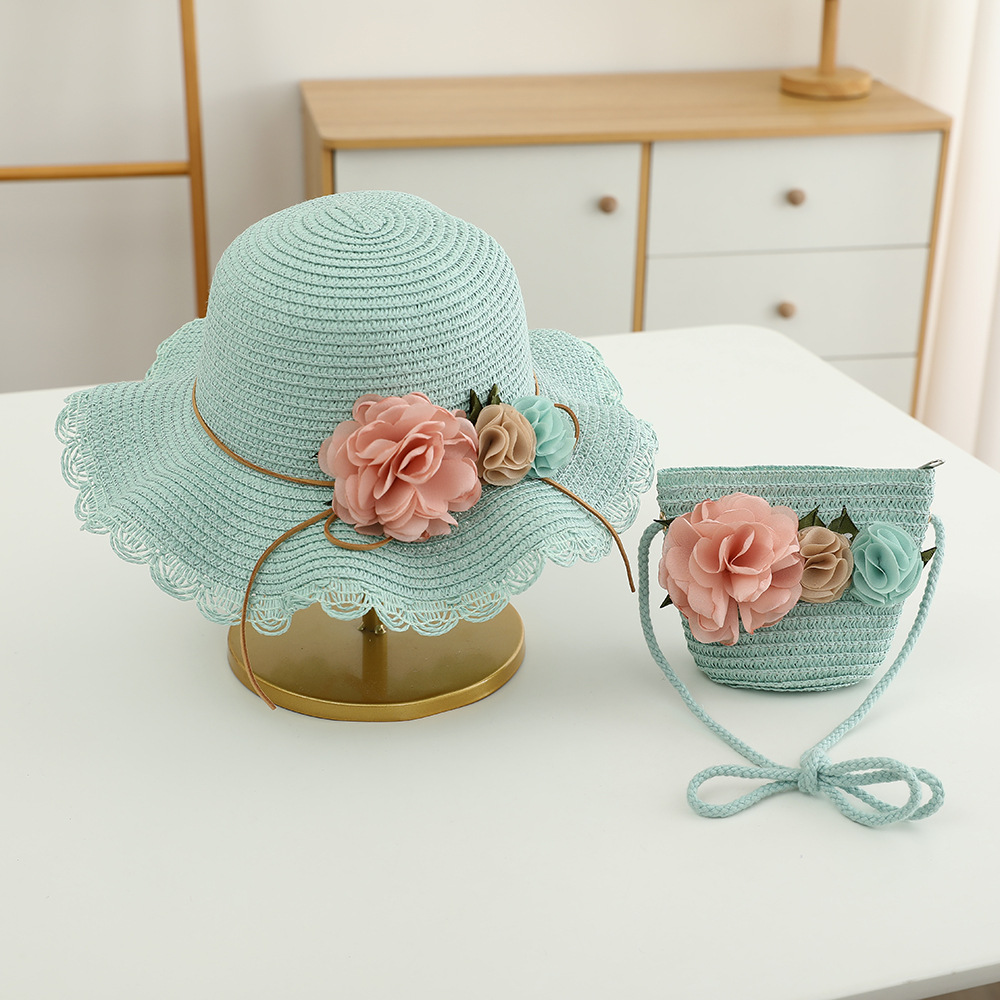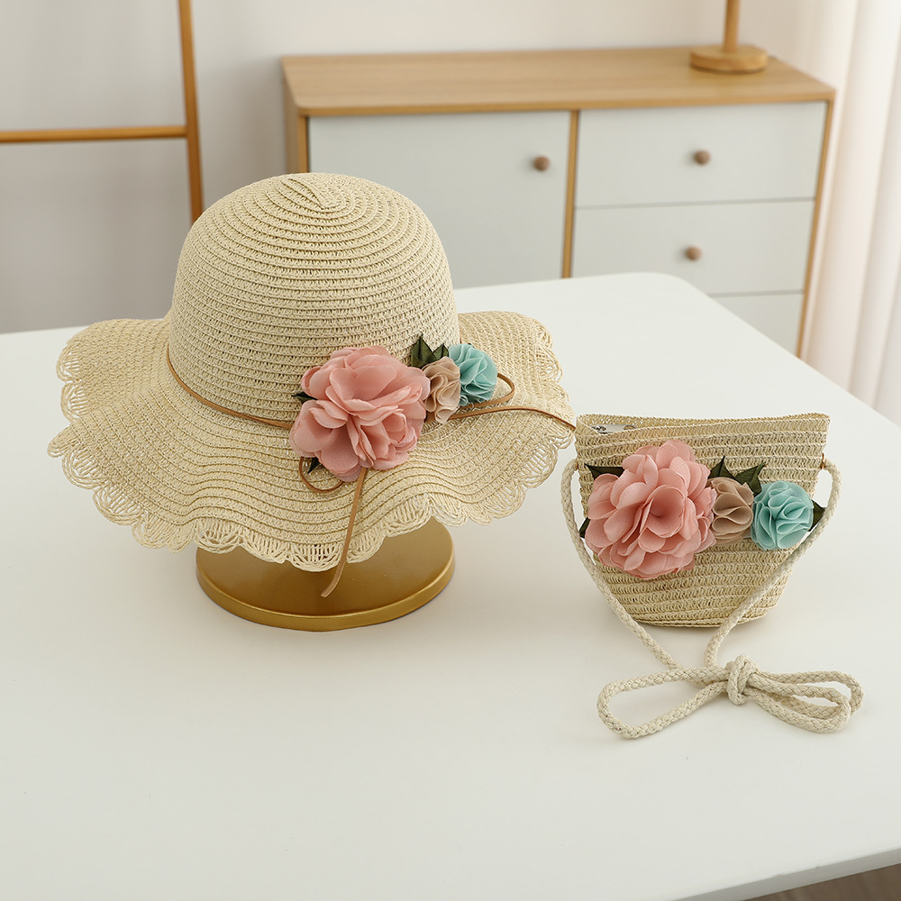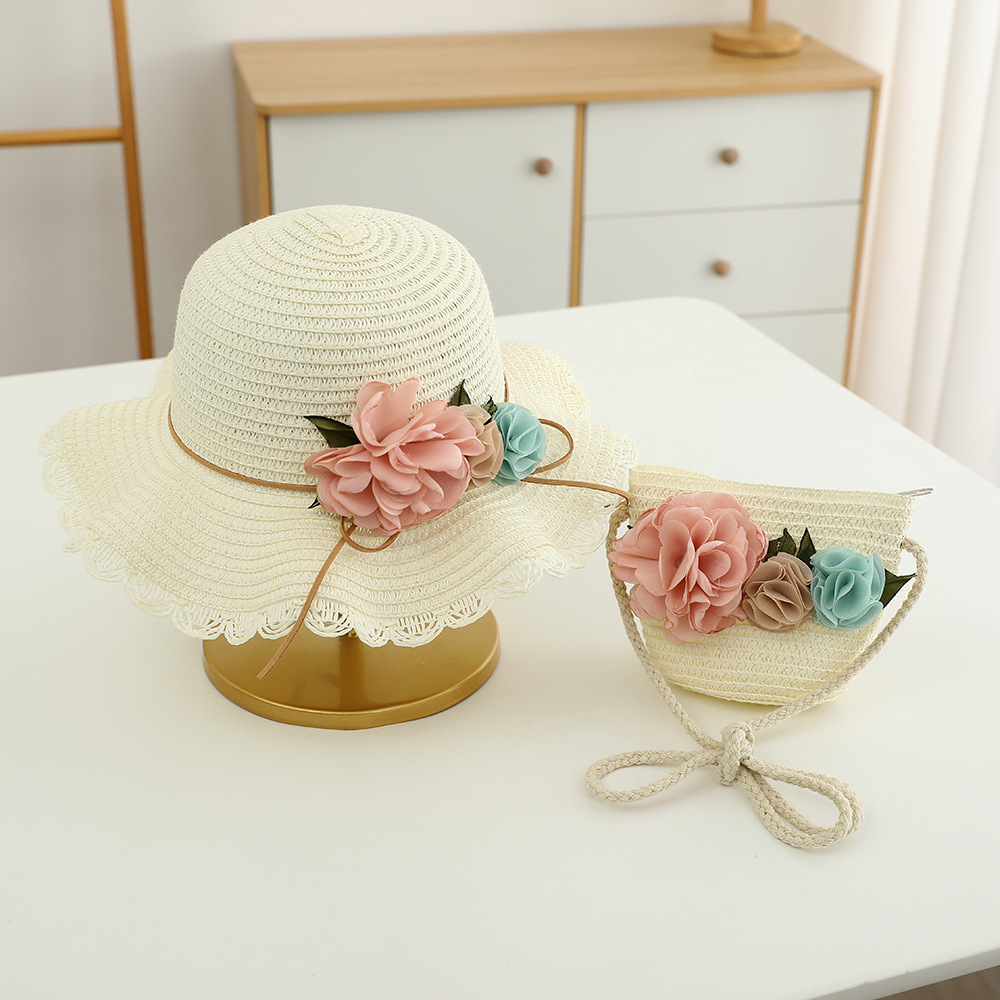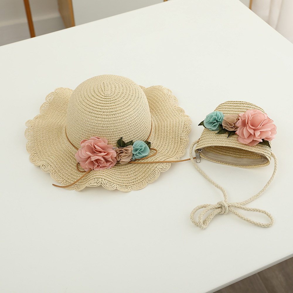 儿童遮阳帽子包包甜美公主花朵女童草帽夏天韩版潮流防晒太阳帽