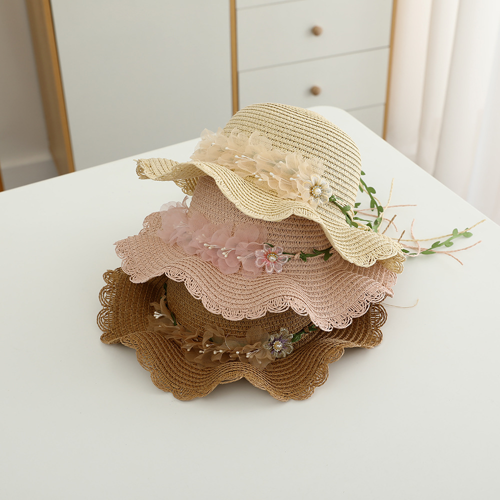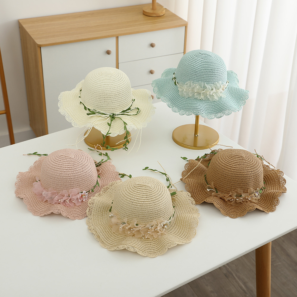 韩版潮流儿童遮阳帽子包包淑女甜美柳条枝女童草帽夏季防晒太阳帽
