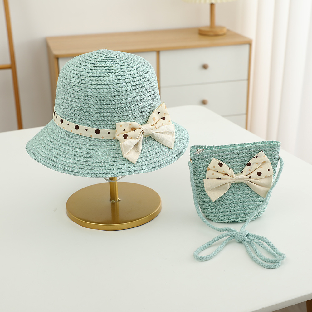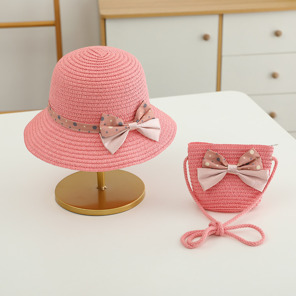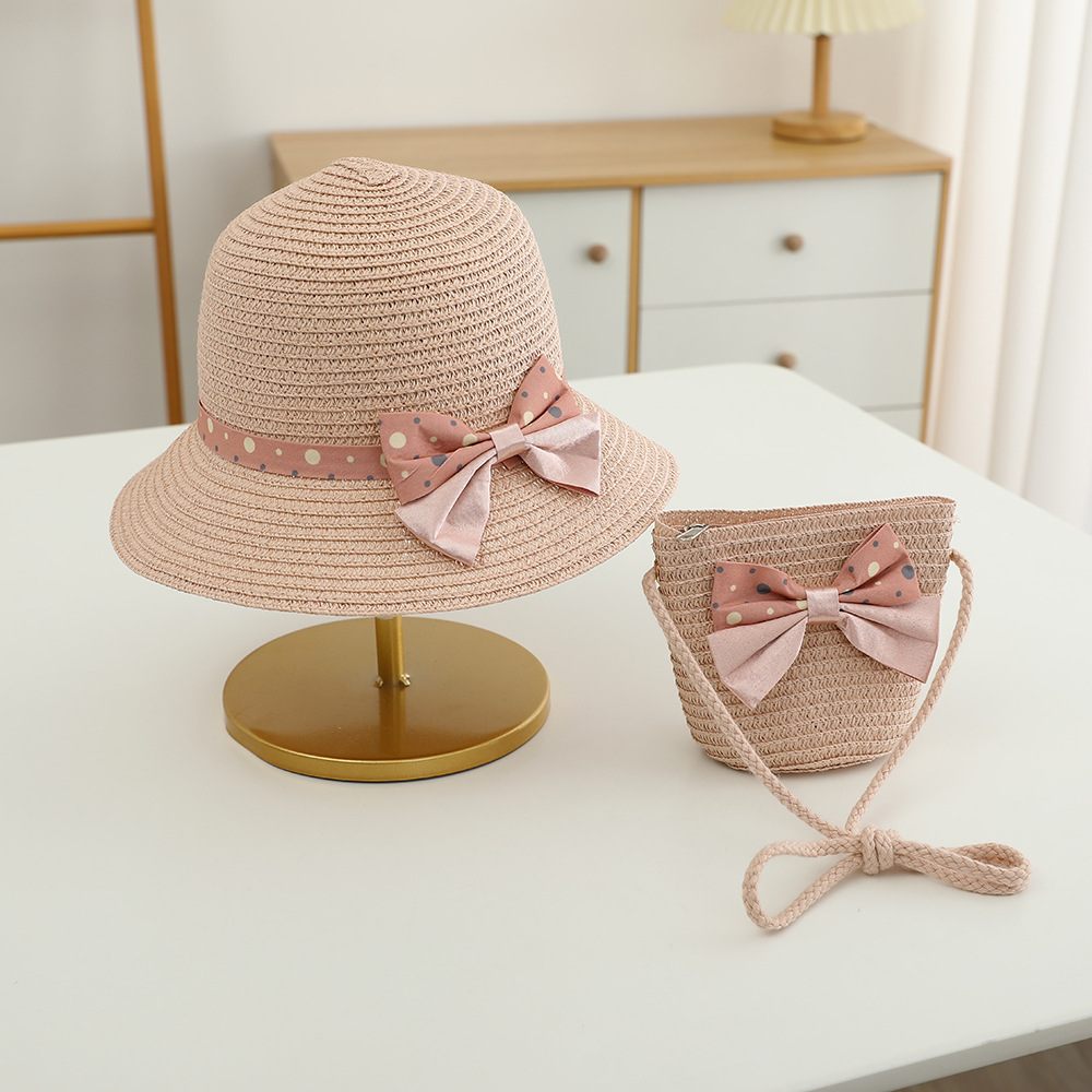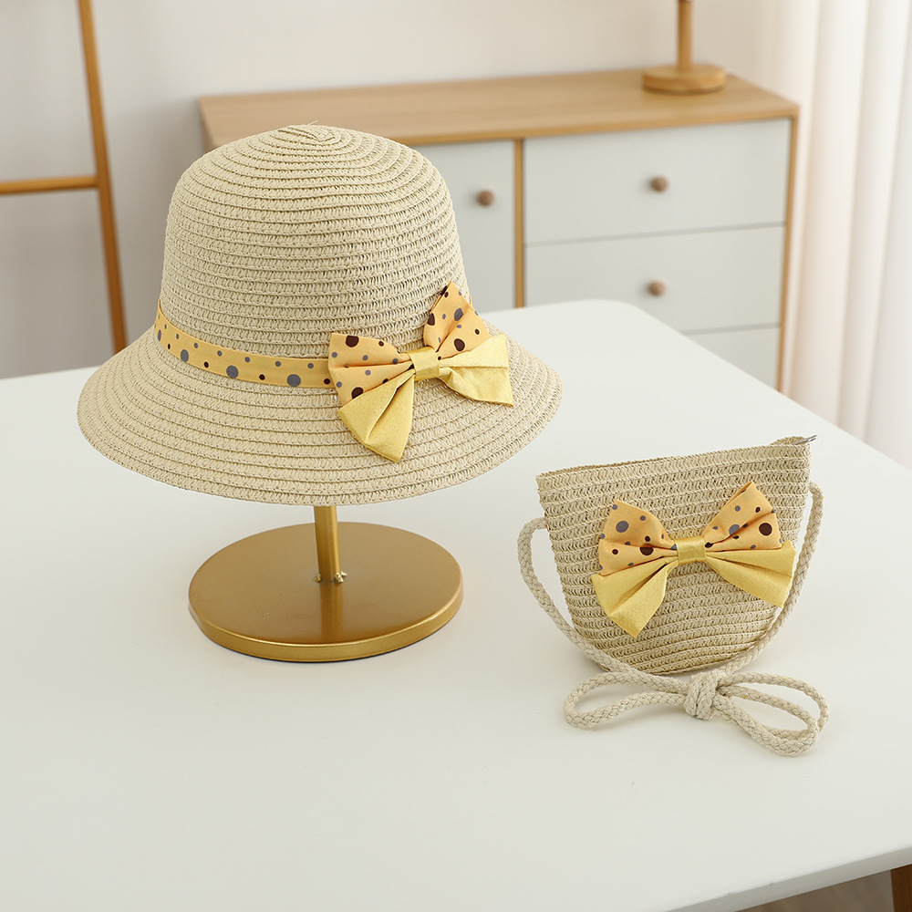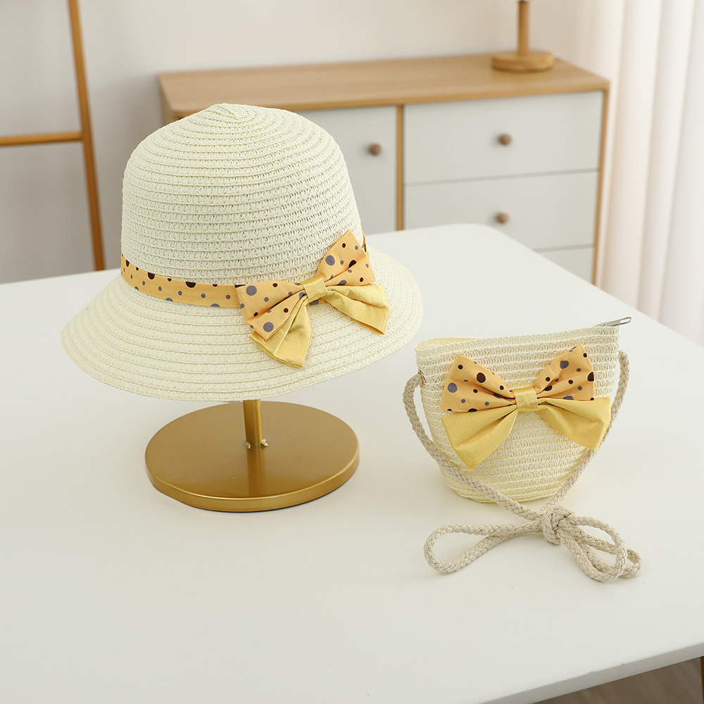 儿童草帽韩版潮流帽子包包二件套圆点蝴蝶结夏天防晒帽遮阳帽批发