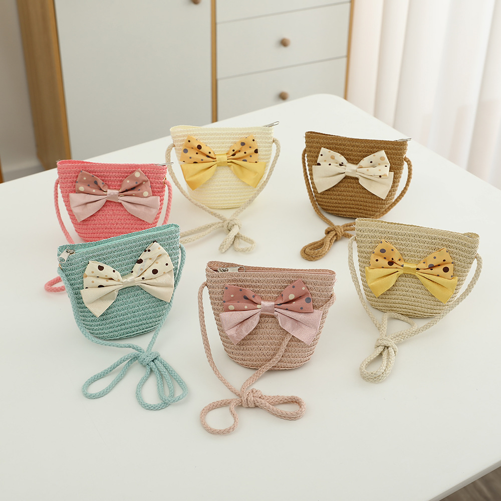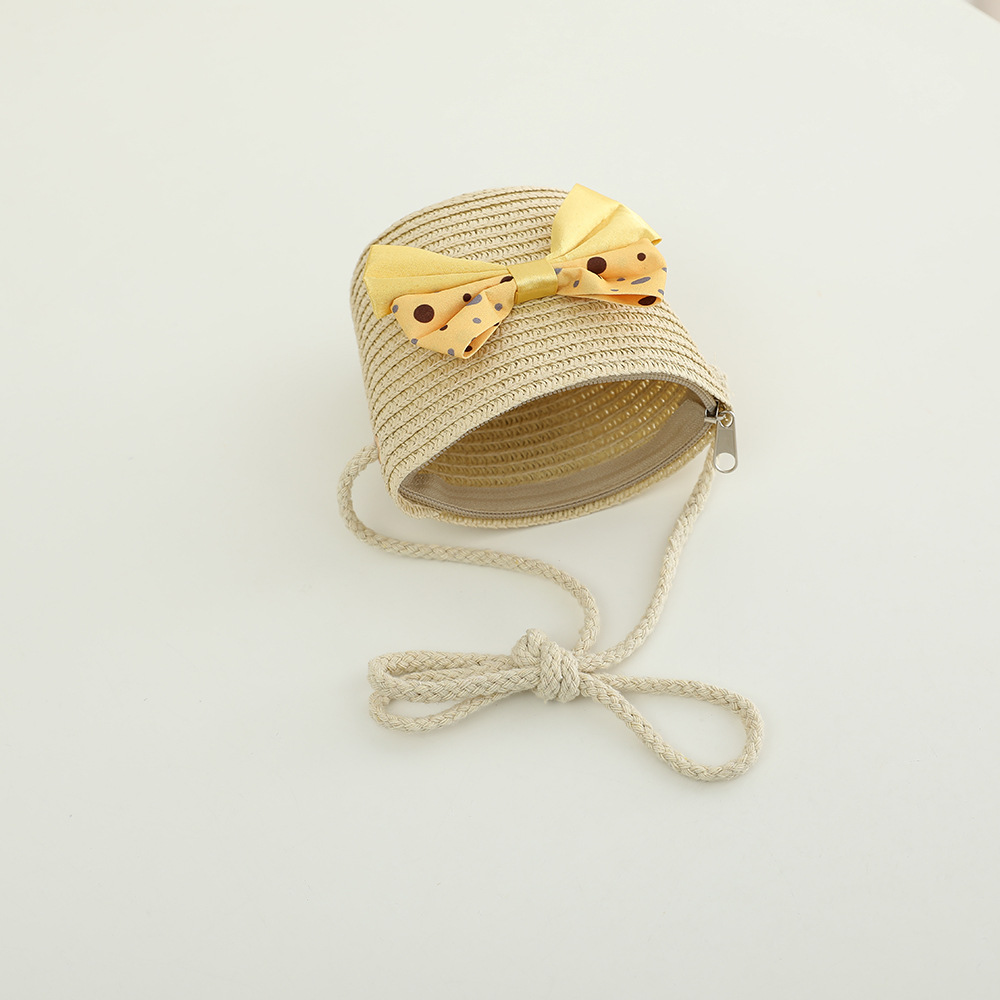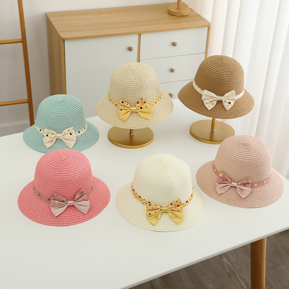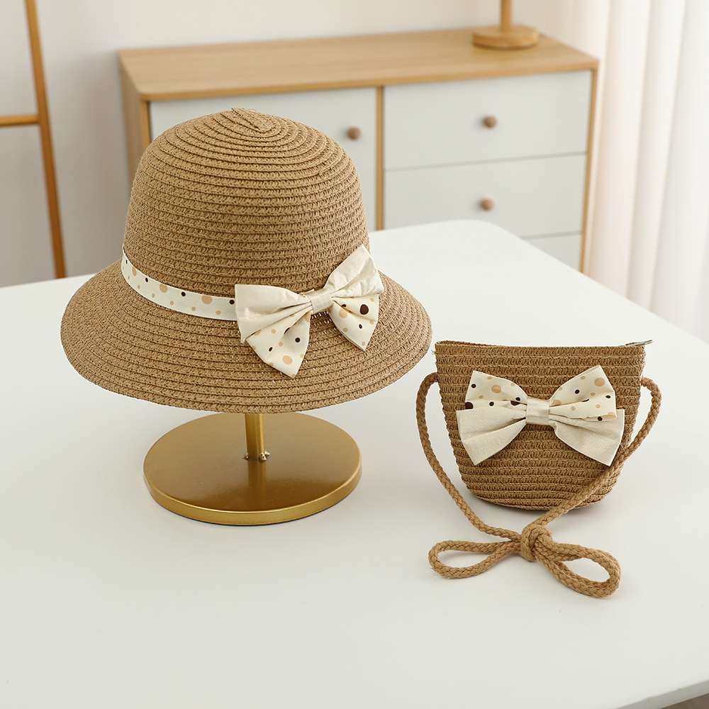 儿童草帽韩版潮流帽子包包二件套圆点蝴蝶结夏天防晒帽遮阳帽批发