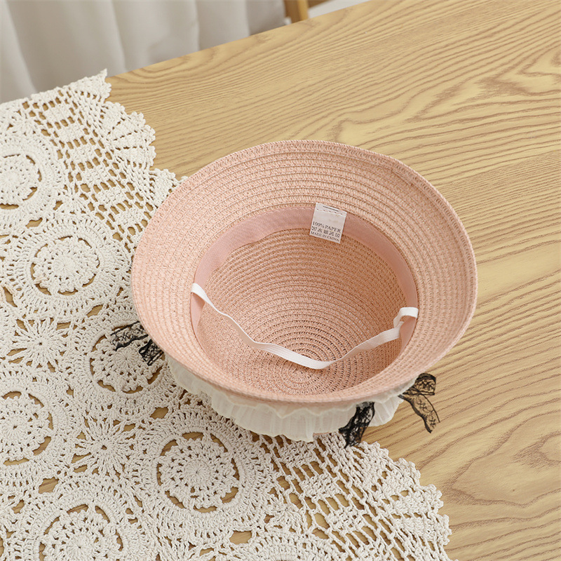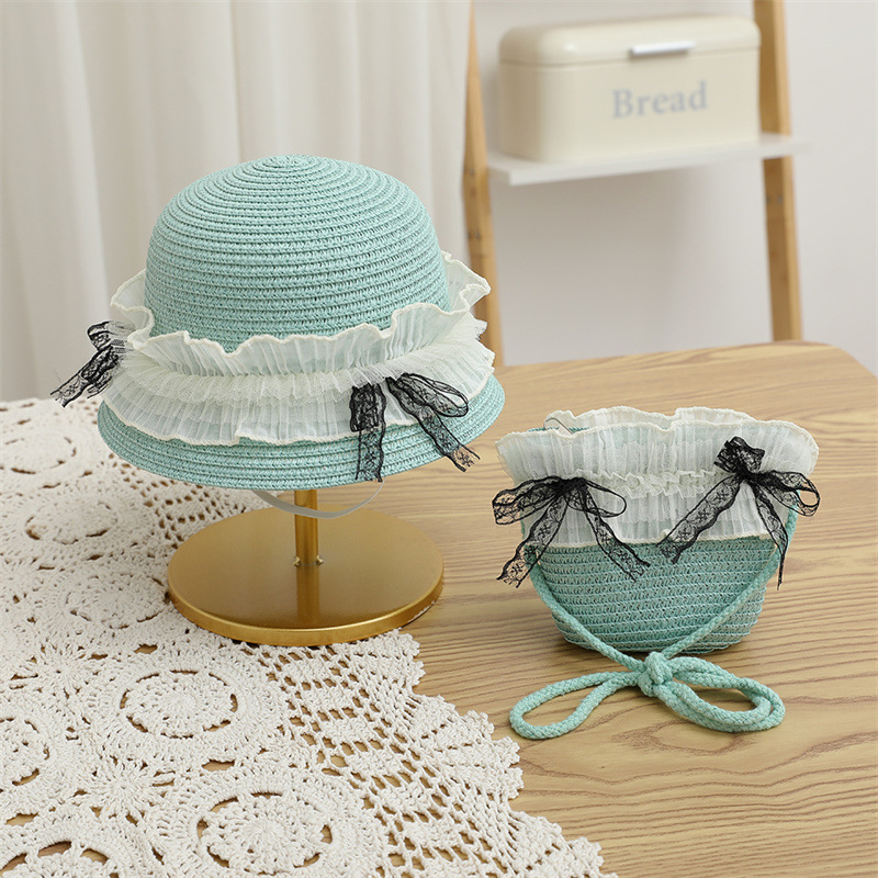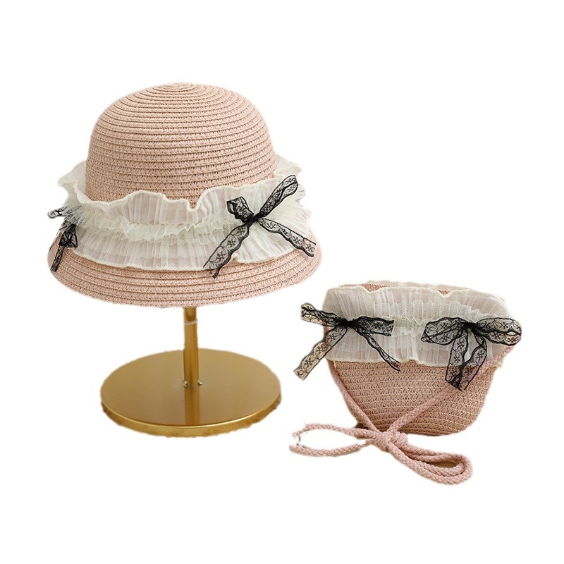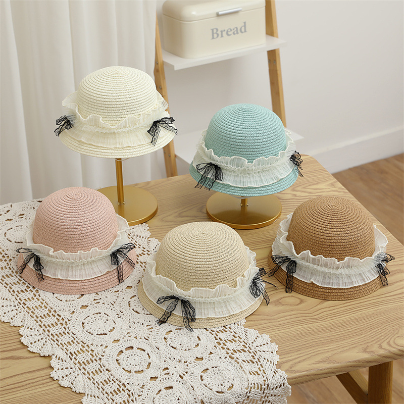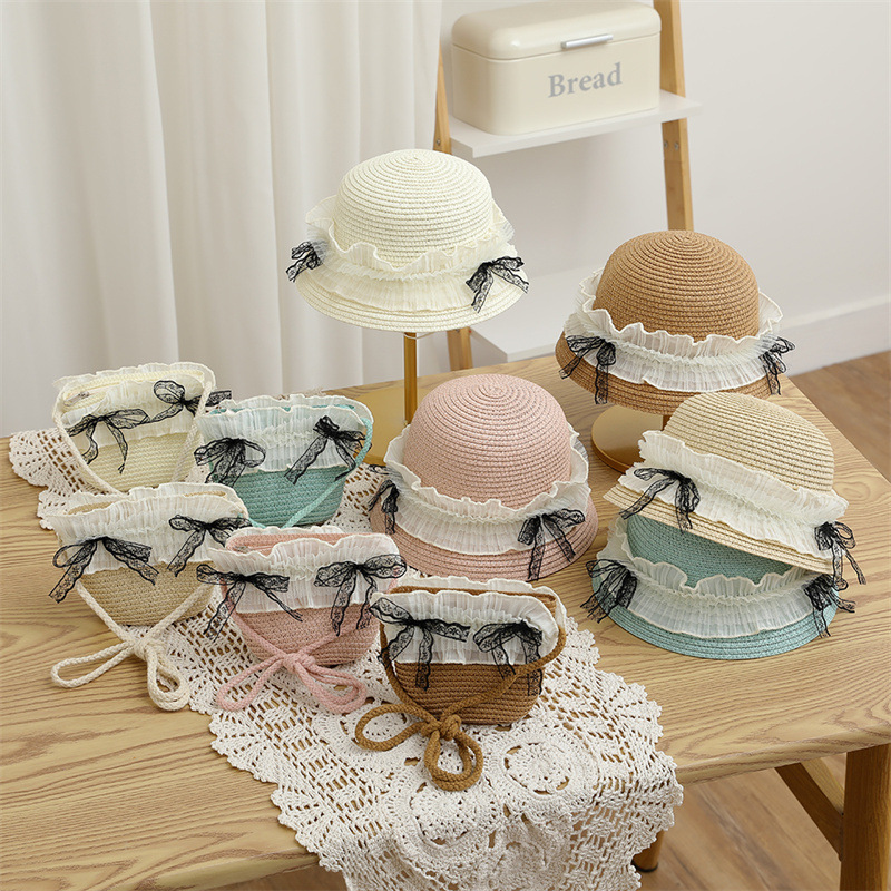 韩版儿童遮阳帽皱皱纱洋气气质女孩草帽夏天防晒遮阳太阳帽包包