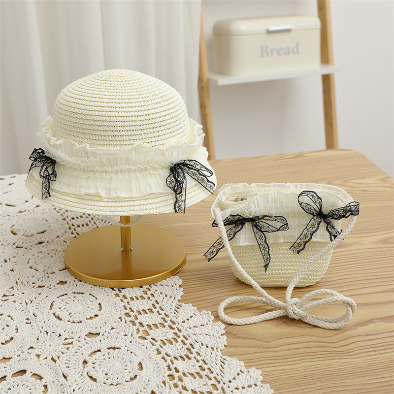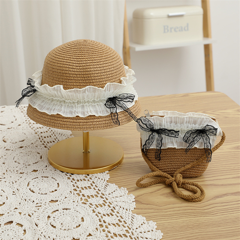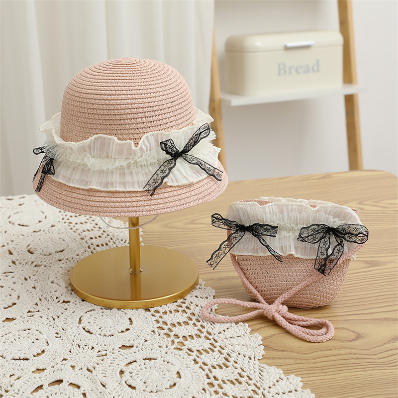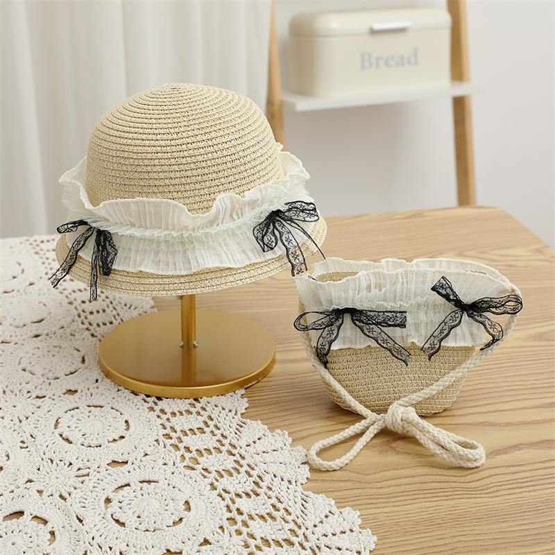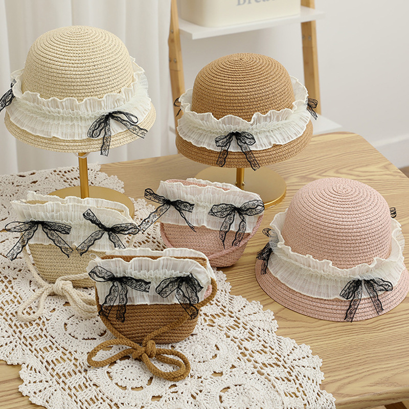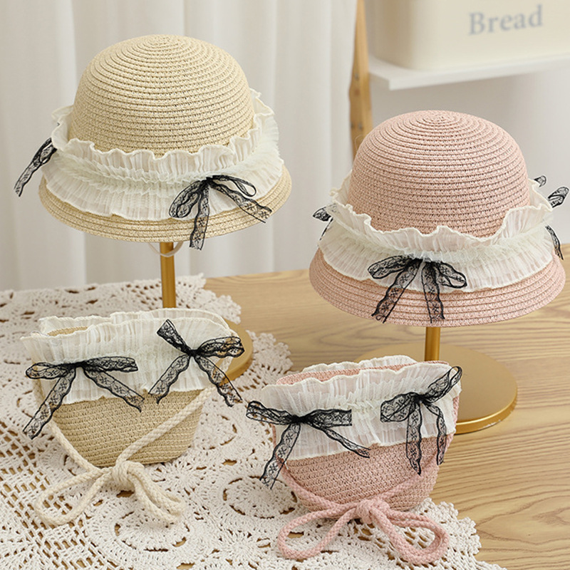 韩版儿童遮阳帽皱皱纱洋气气质女孩草帽夏天防晒遮阳太阳帽包包