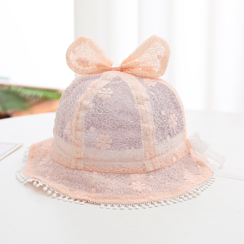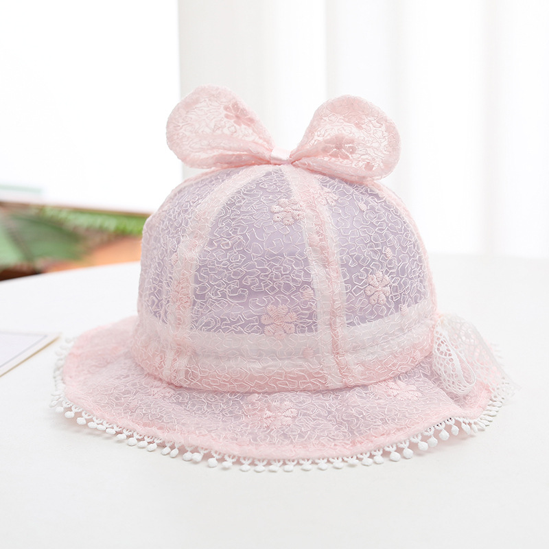 春季新款儿童渔夫帽可爱蝴蝶结女童遮阳帽夏季透气防晒太阳帽子