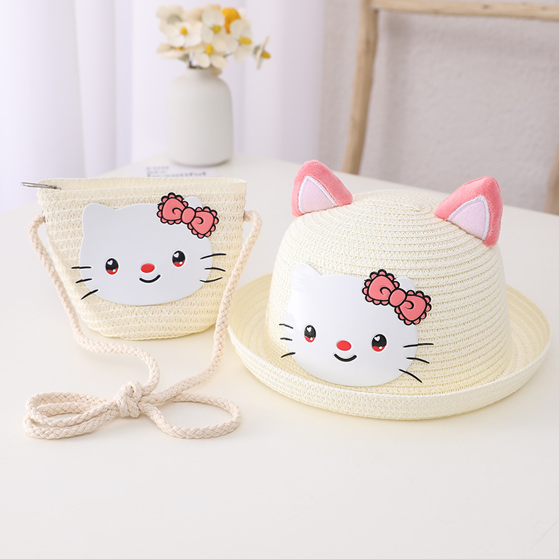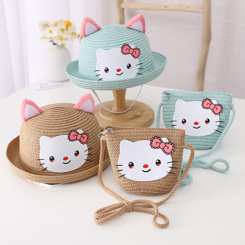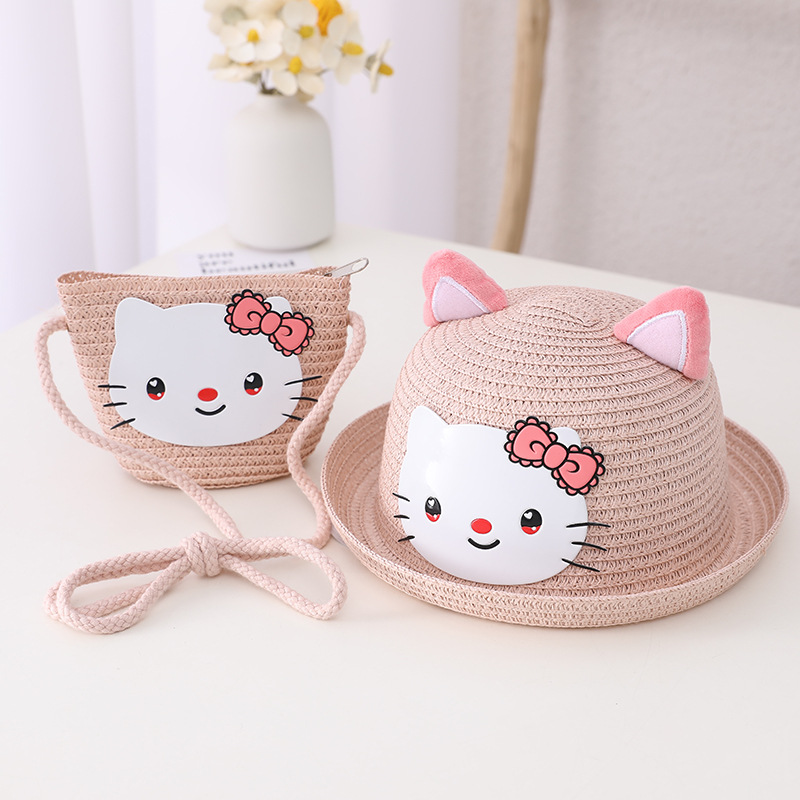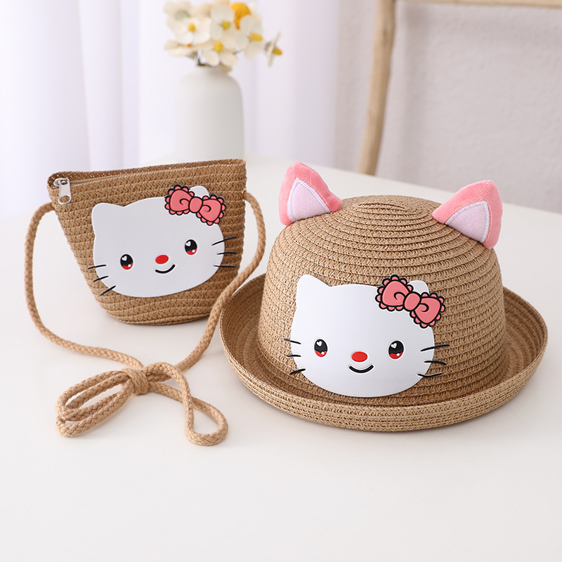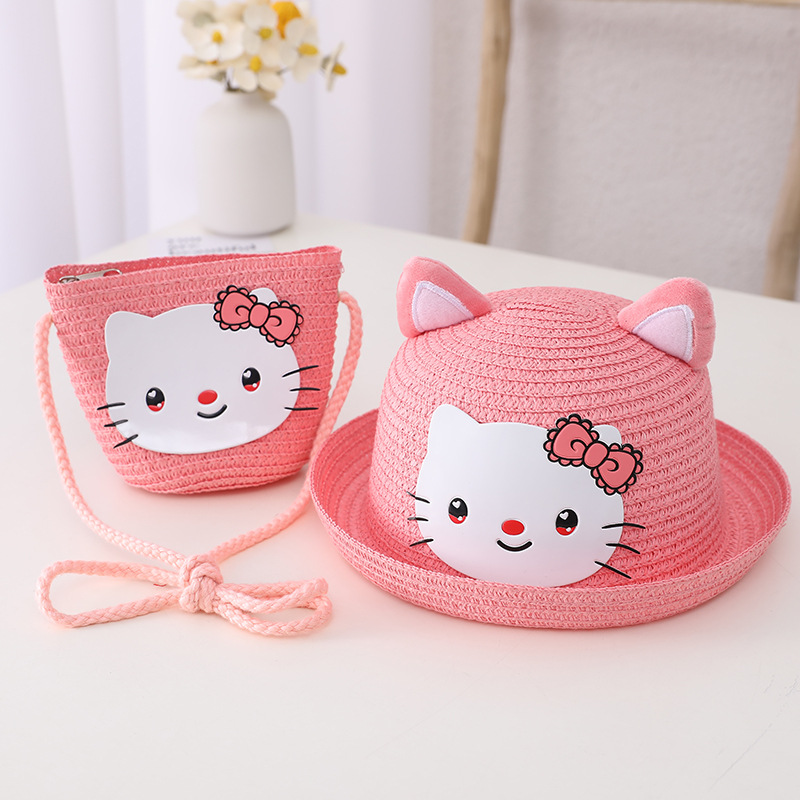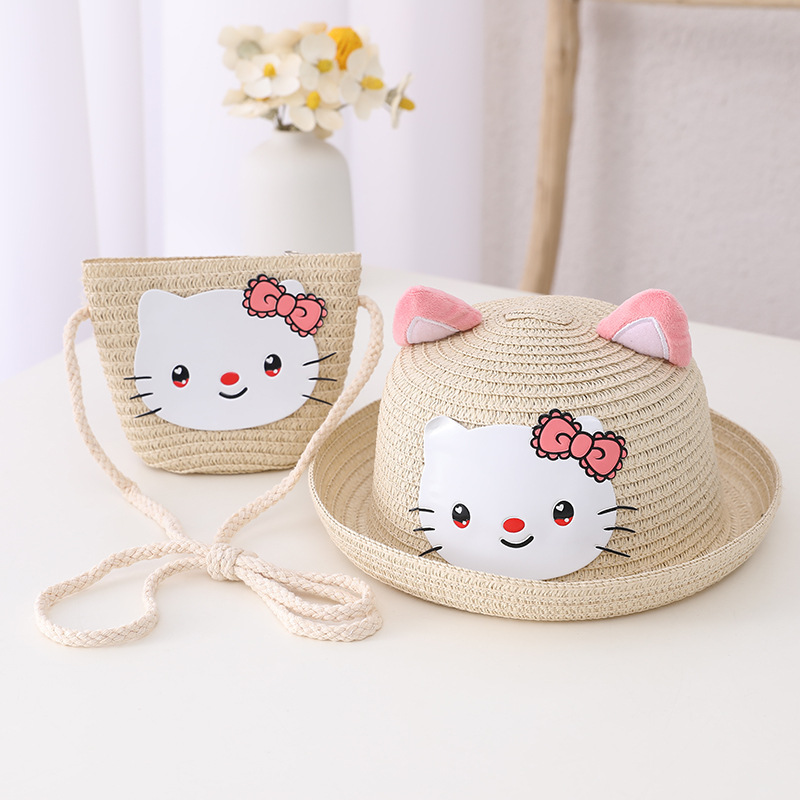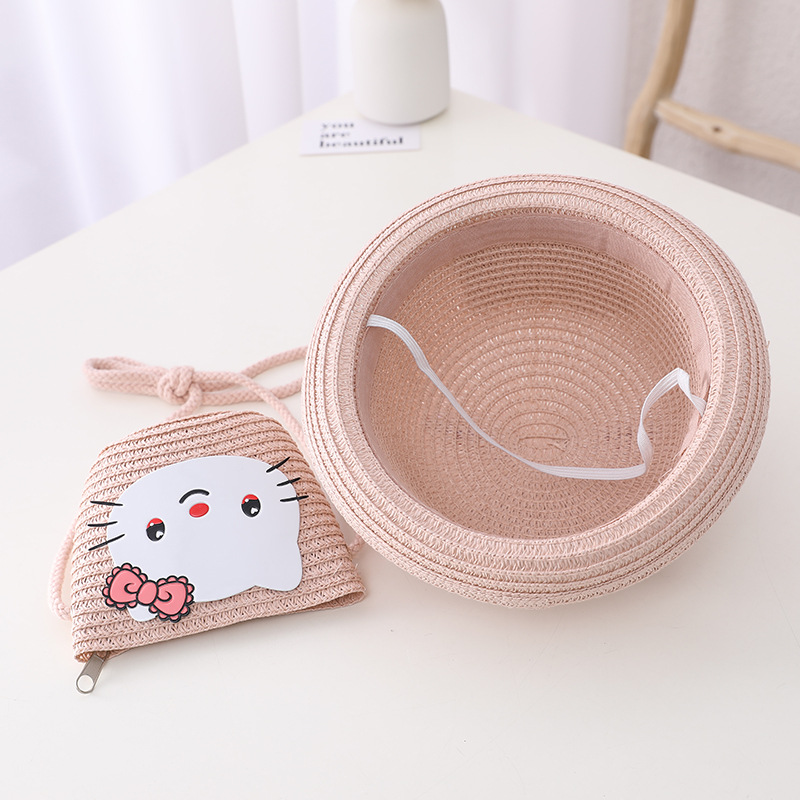 儿童卡通草帽女童太阳帽夏季儿童防晒帽宝宝遮阳帽子包包帽子套装