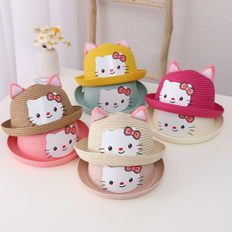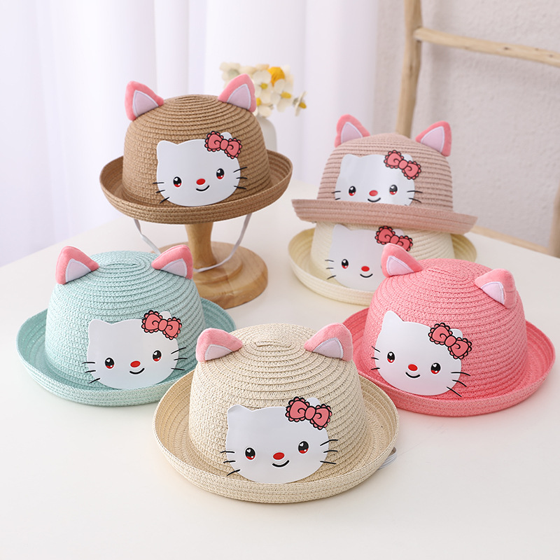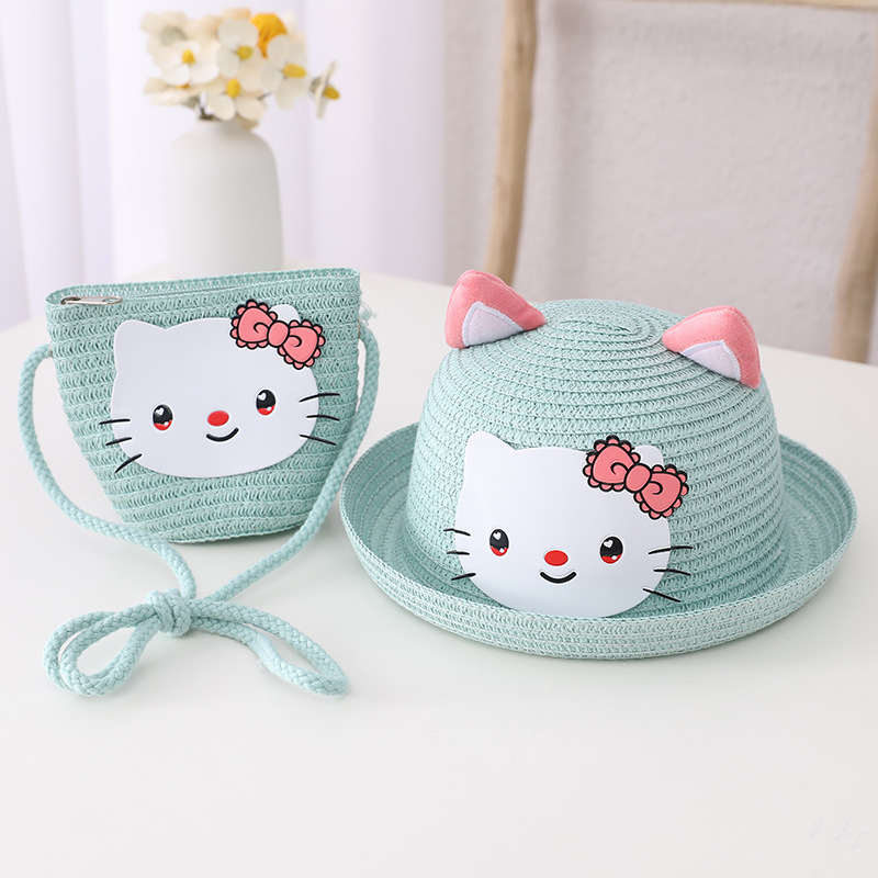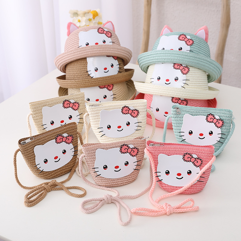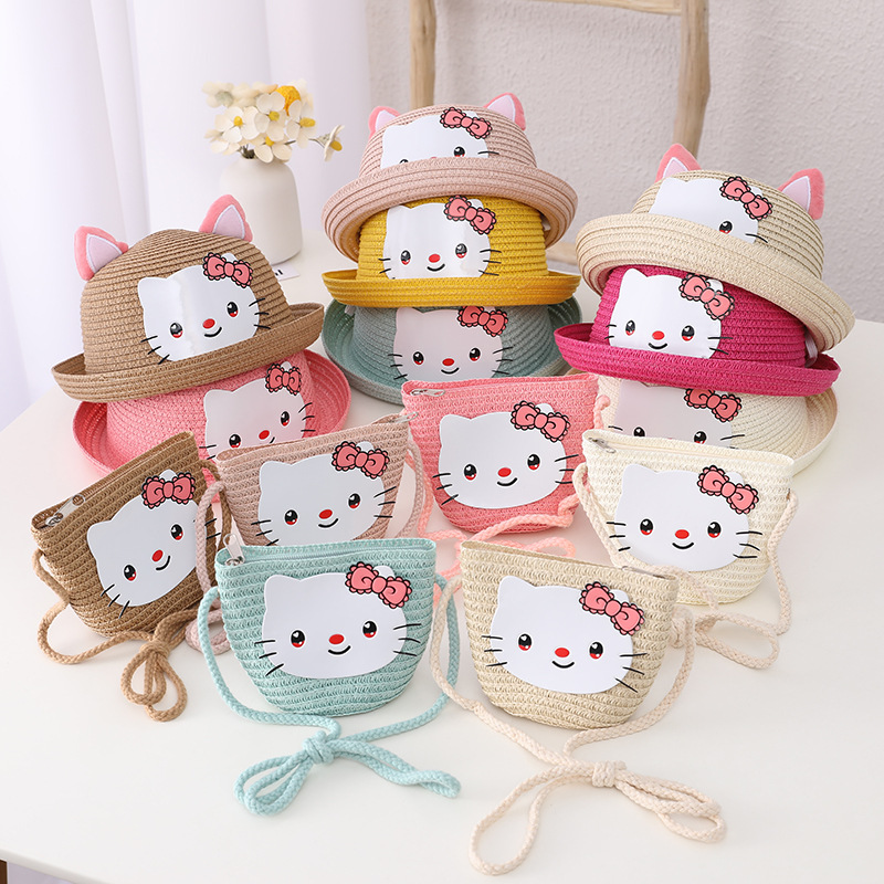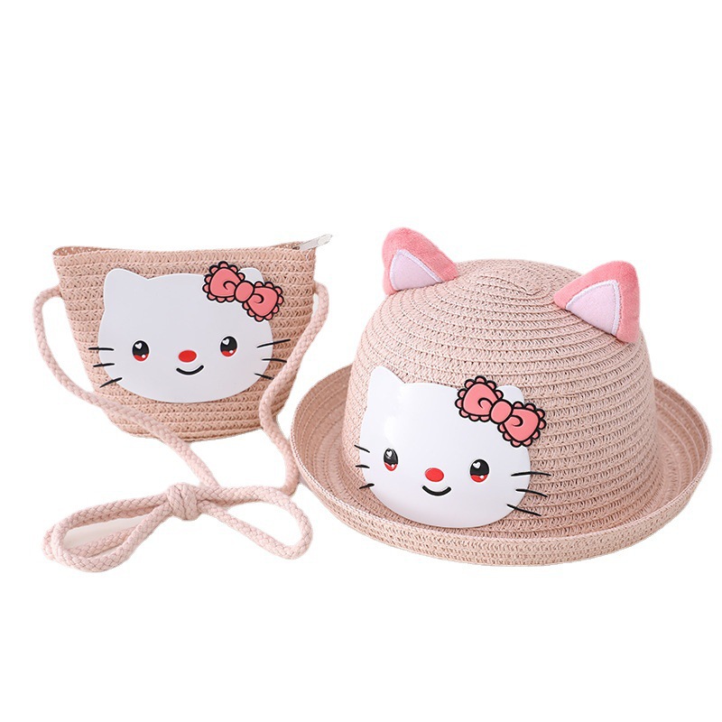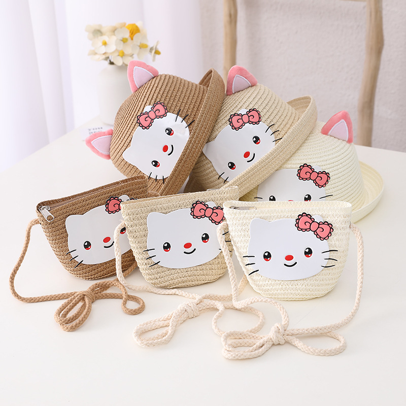 儿童卡通草帽女童太阳帽夏季儿童防晒帽宝宝遮阳帽子包包帽子套装