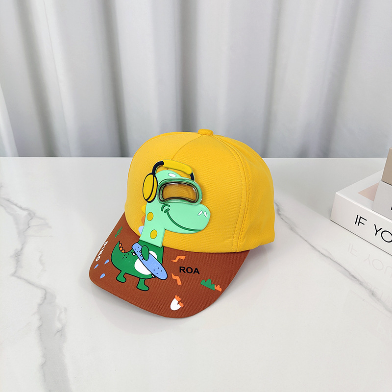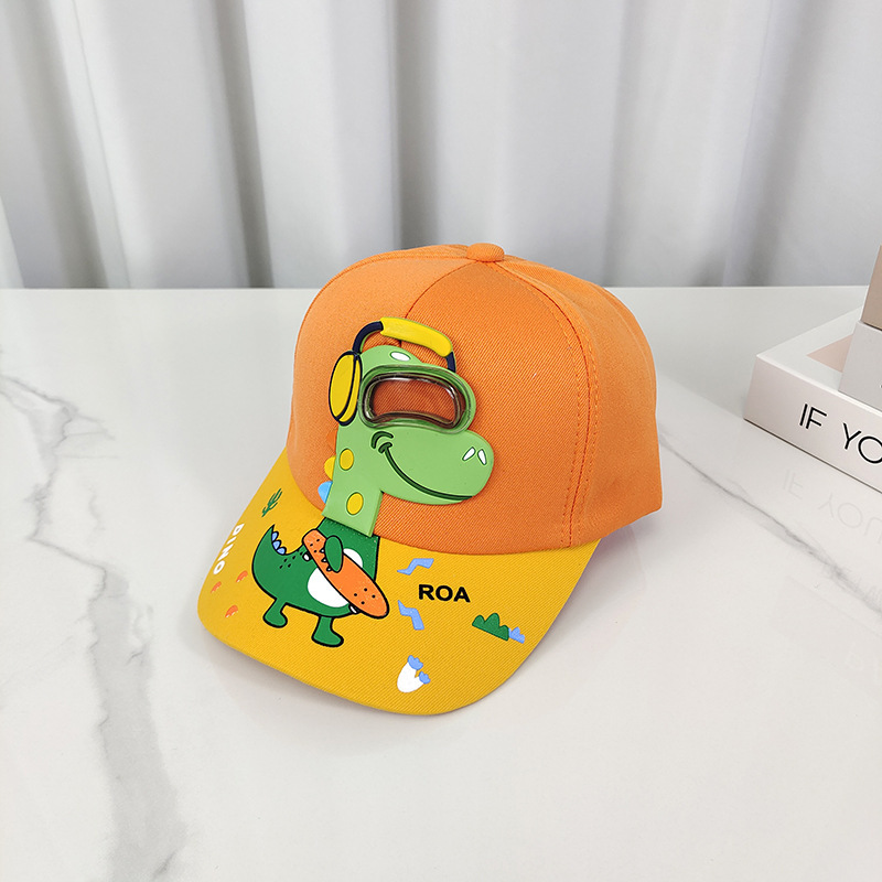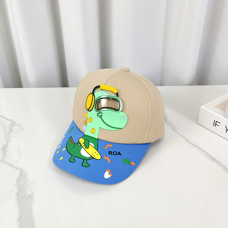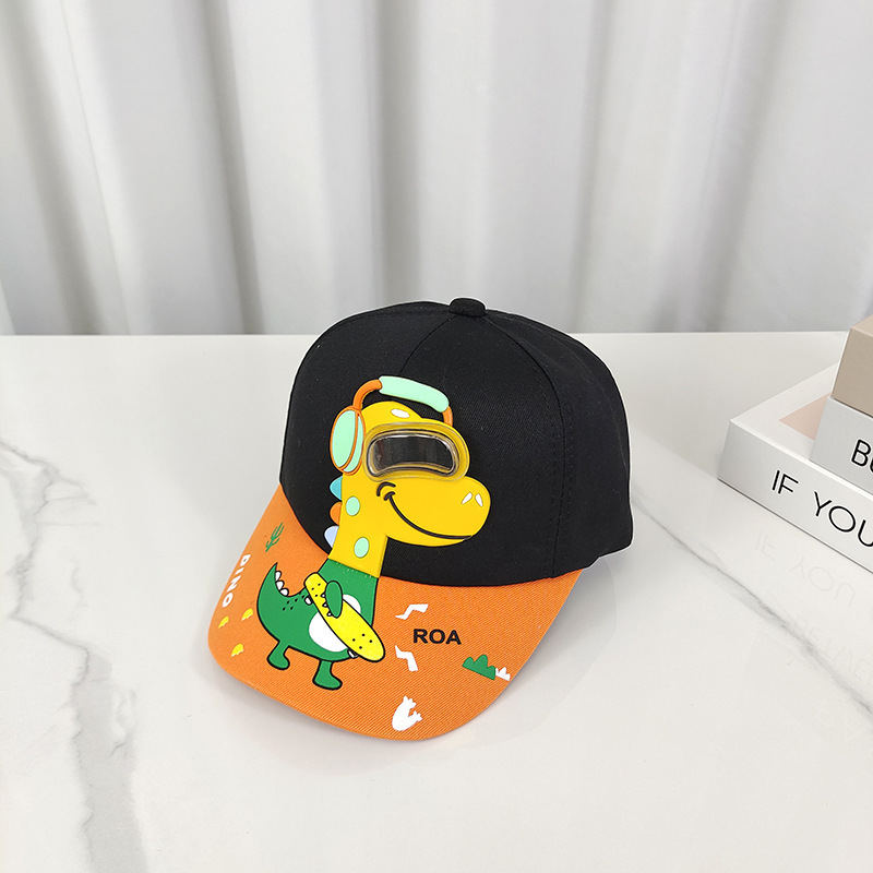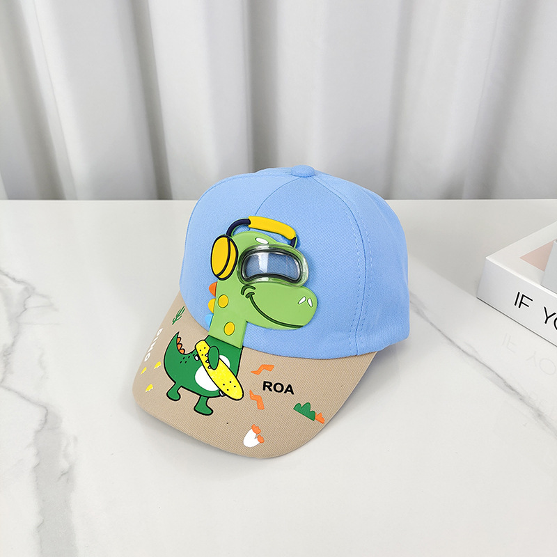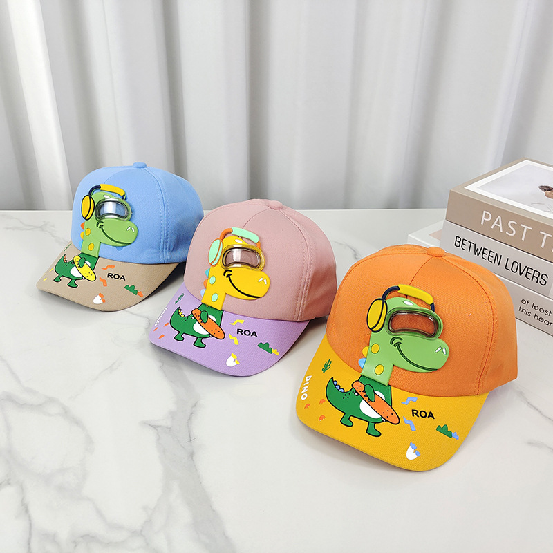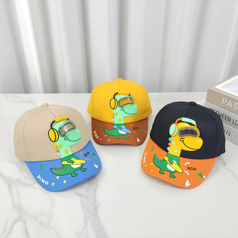 新款儿童帽子男女宝宝卡通耳机恐龙印花拼色棒球帽户外出游防晒帽