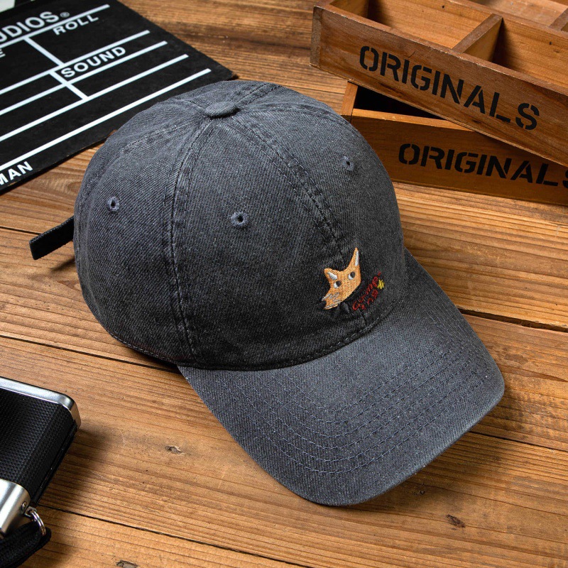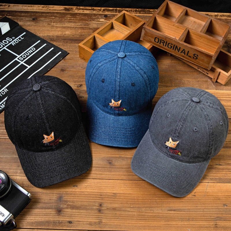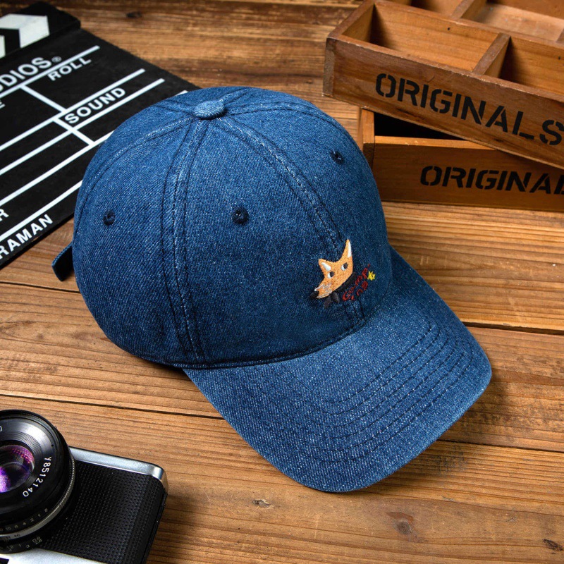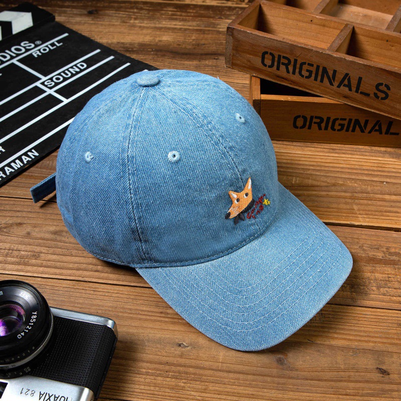卡通狐狸刺绣牛仔棒球帽韩版时尚街头男女通用鸭舌帽显脸小四季款