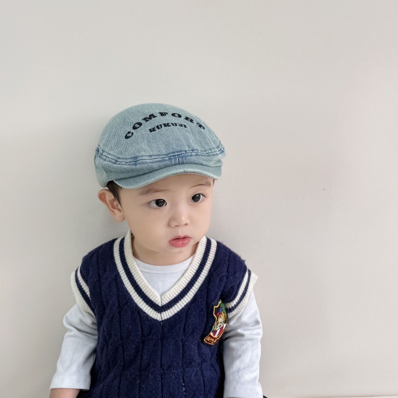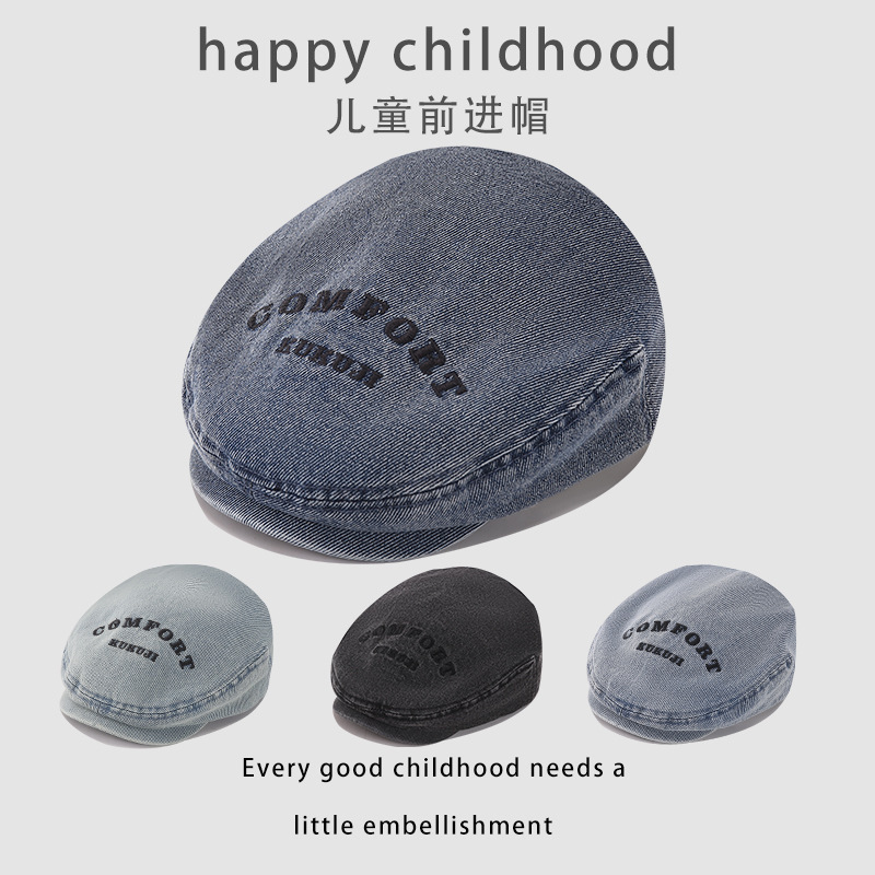 儿童帽子春秋新款字母时尚牛仔贝雷帽男女宝宝休闲百搭遮阳前进帽