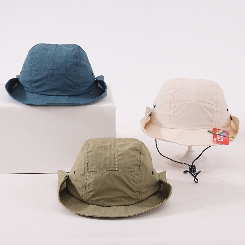 儿童速干渔夫帽男女宝宝户外露营防晒遮阳帽纯色速干夏季登山帽