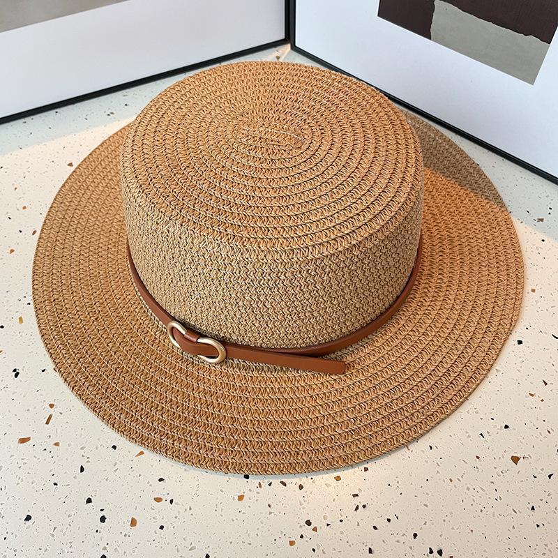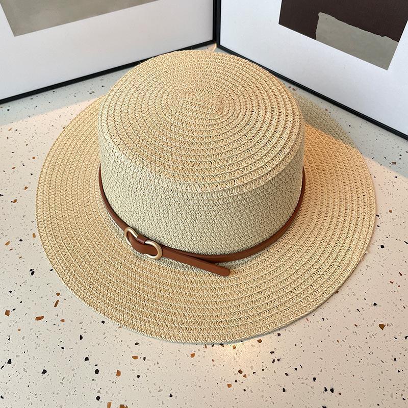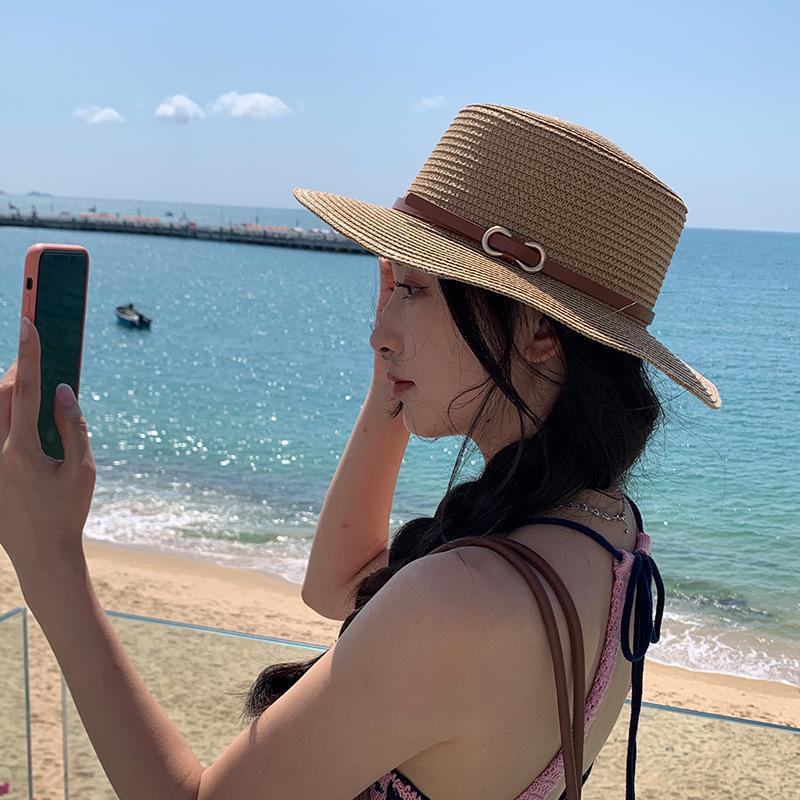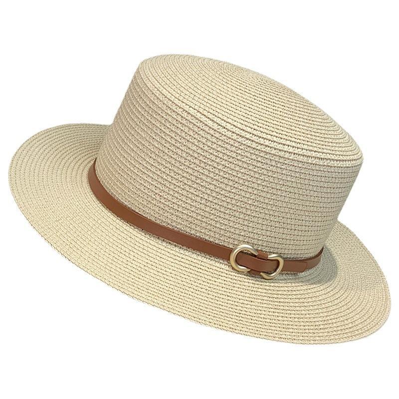 遮阳草帽子女夏季皮带扣时尚英伦风礼帽海边度假沙滩帽防晒太阳帽