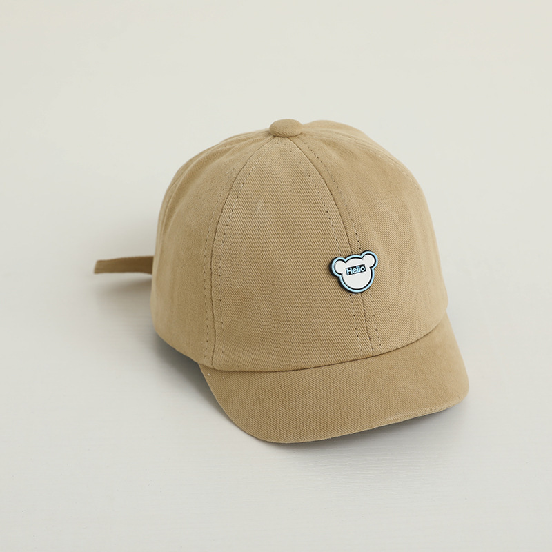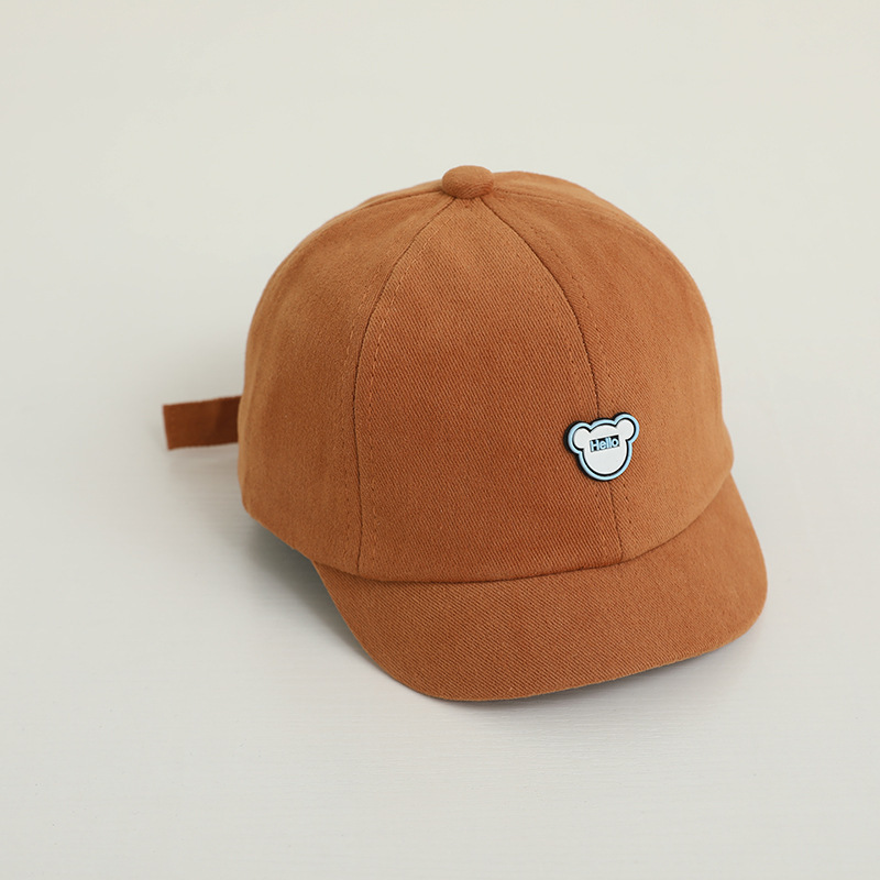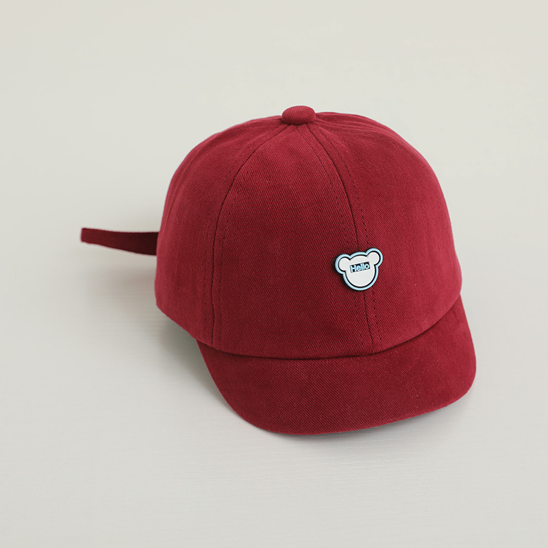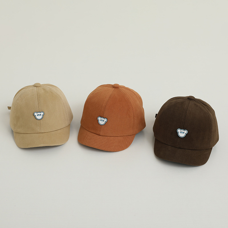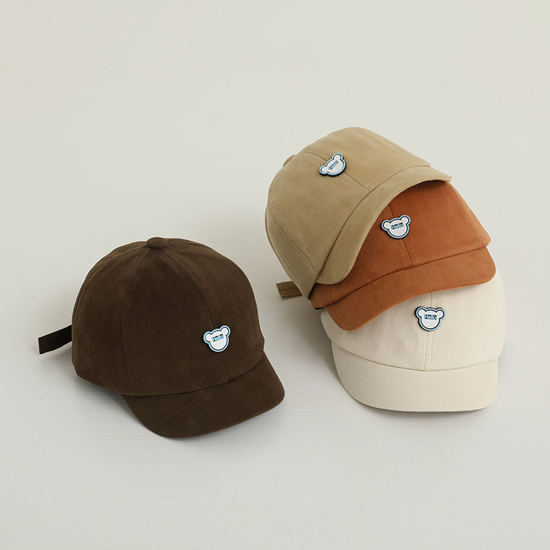 儿童帽子男女宝宝纯色短檐棒球帽春秋新款小熊标遮阳鸭舌帽批发