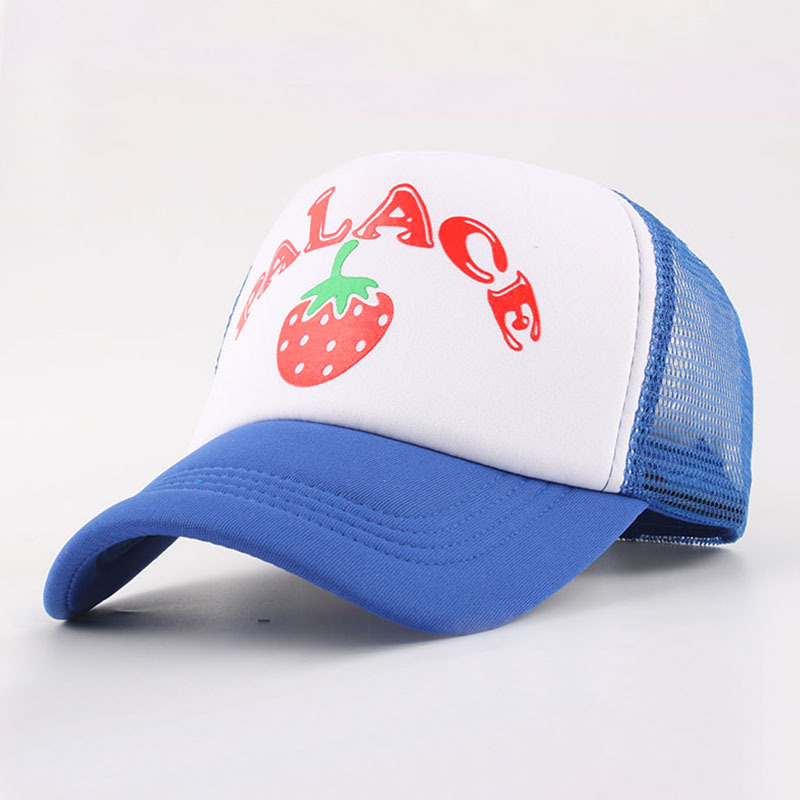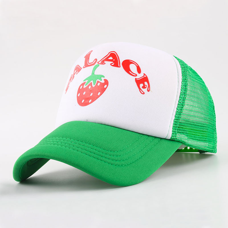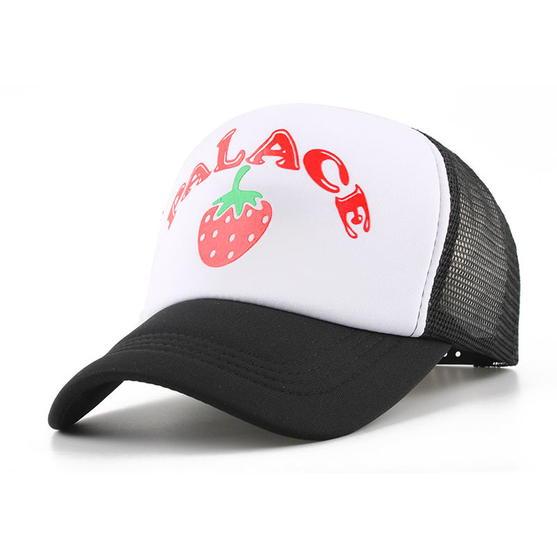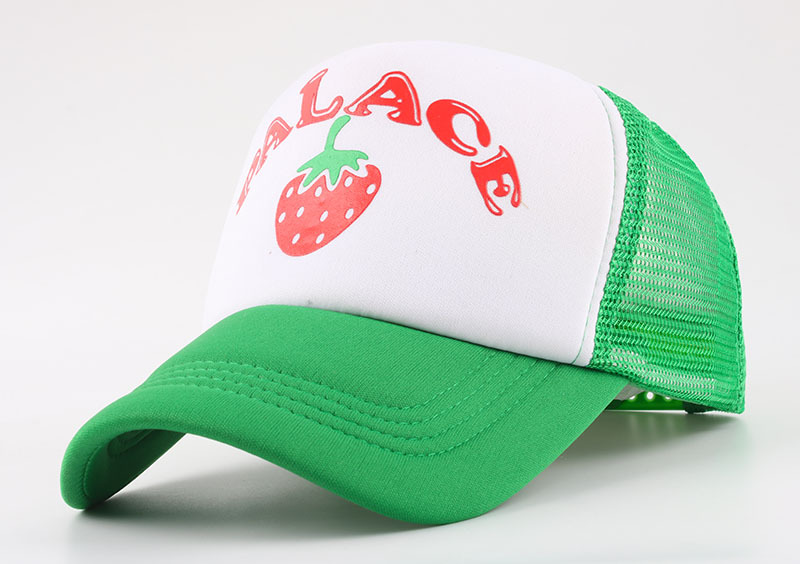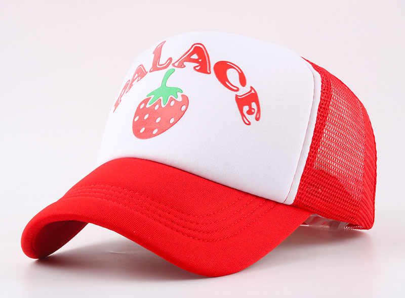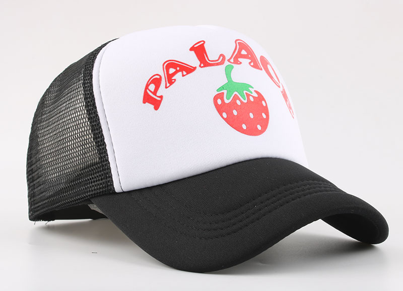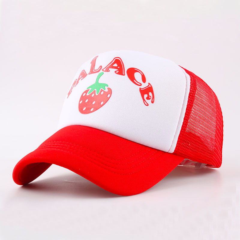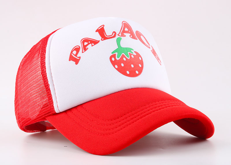 跨境新款帽子PALACE草莓印花亲子款网帽春夏季遮阳棒球帽司机帽男