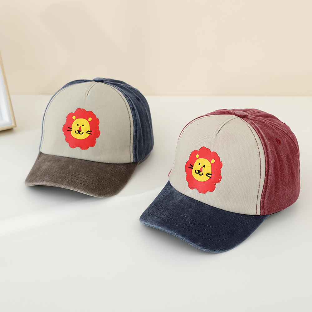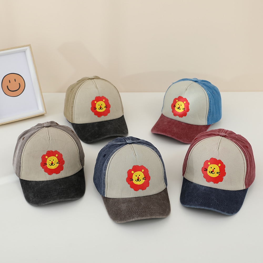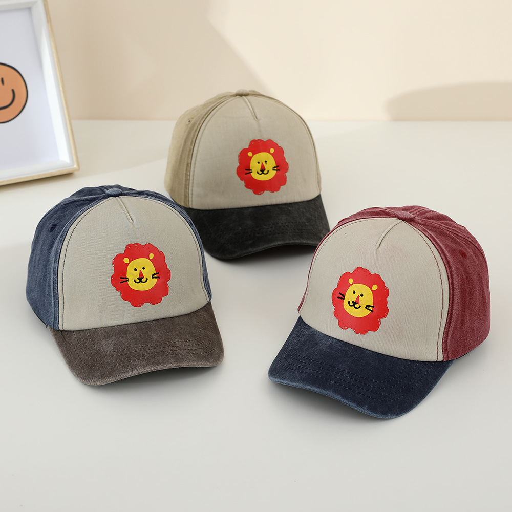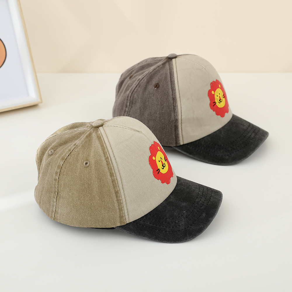 狮子头水洗鸭舌帽男女童卡通儿童帽春秋新款遮阳帽宝宝拼色棒球帽
