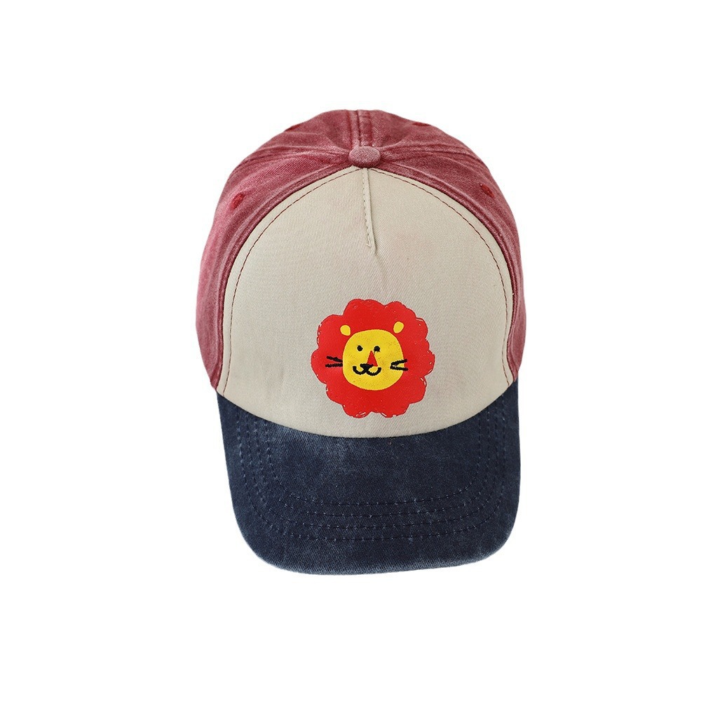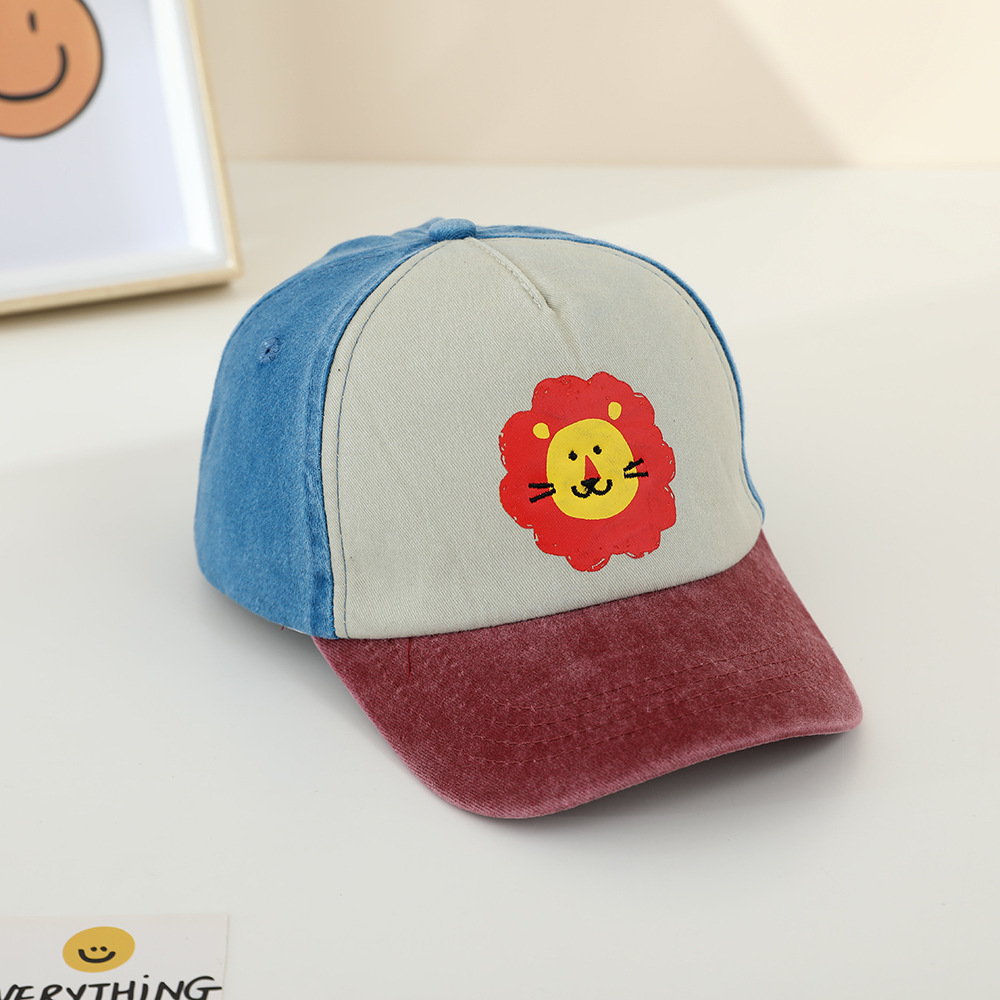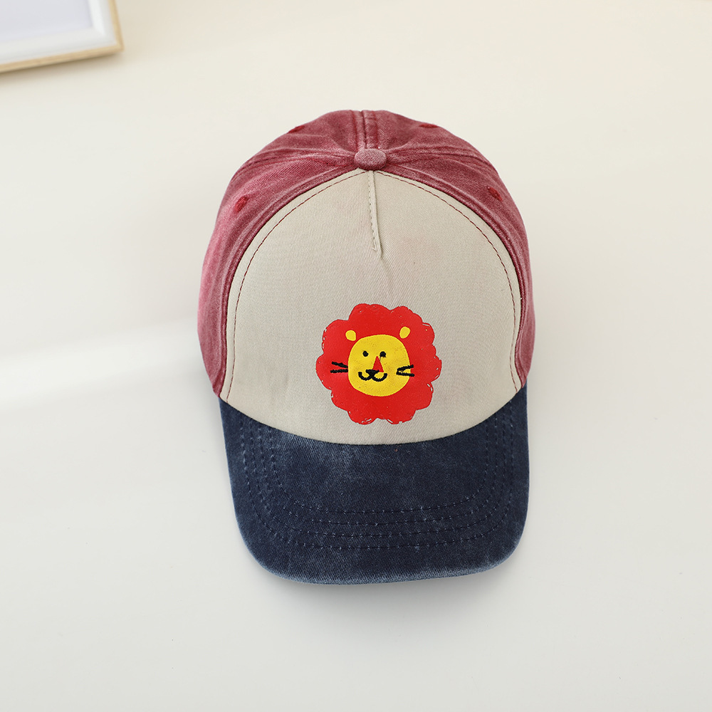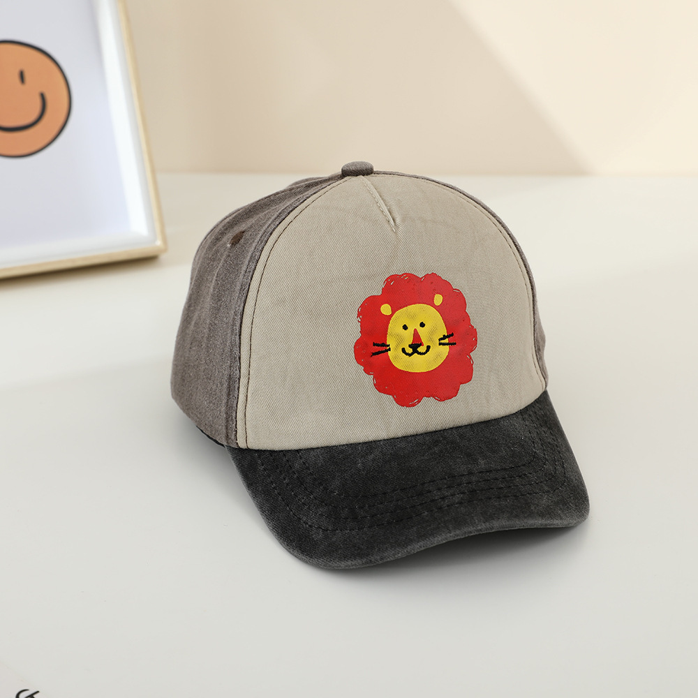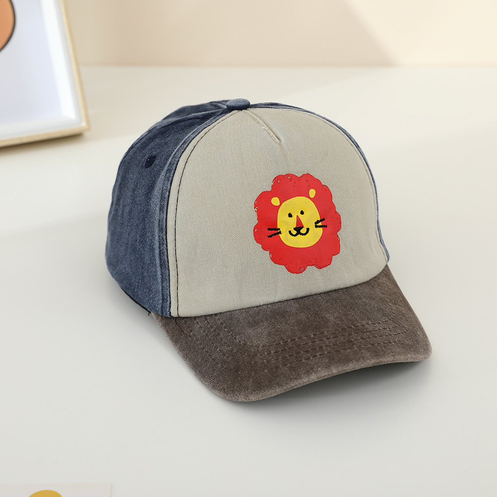 狮子头水洗鸭舌帽男女童卡通儿童帽春秋新款遮阳帽宝宝拼色棒球帽