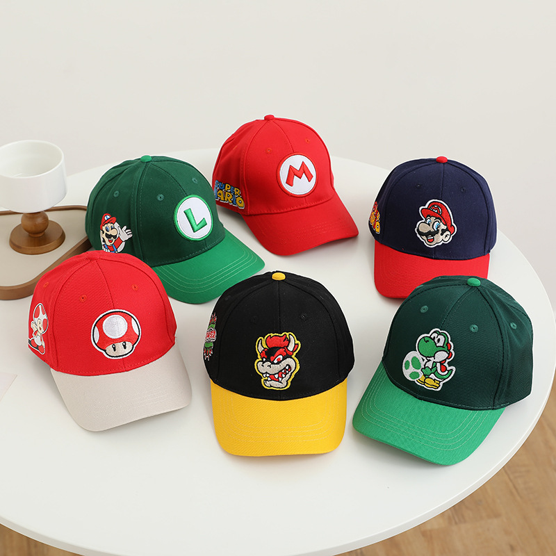 跨境儿童帽子宝宝卡通超级玛丽刺绣棒球帽户外遮阳鸭舌帽童帽批发