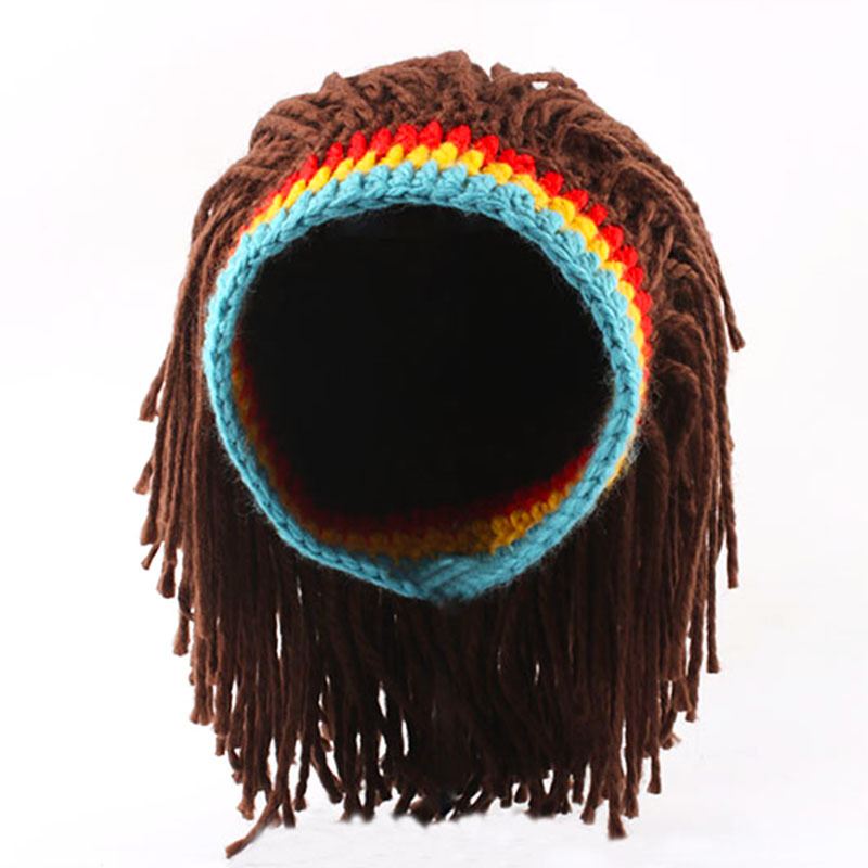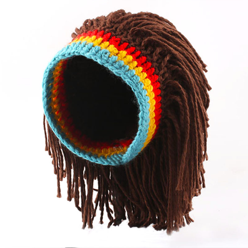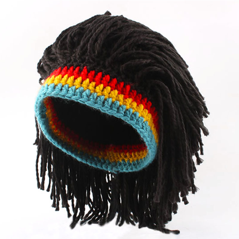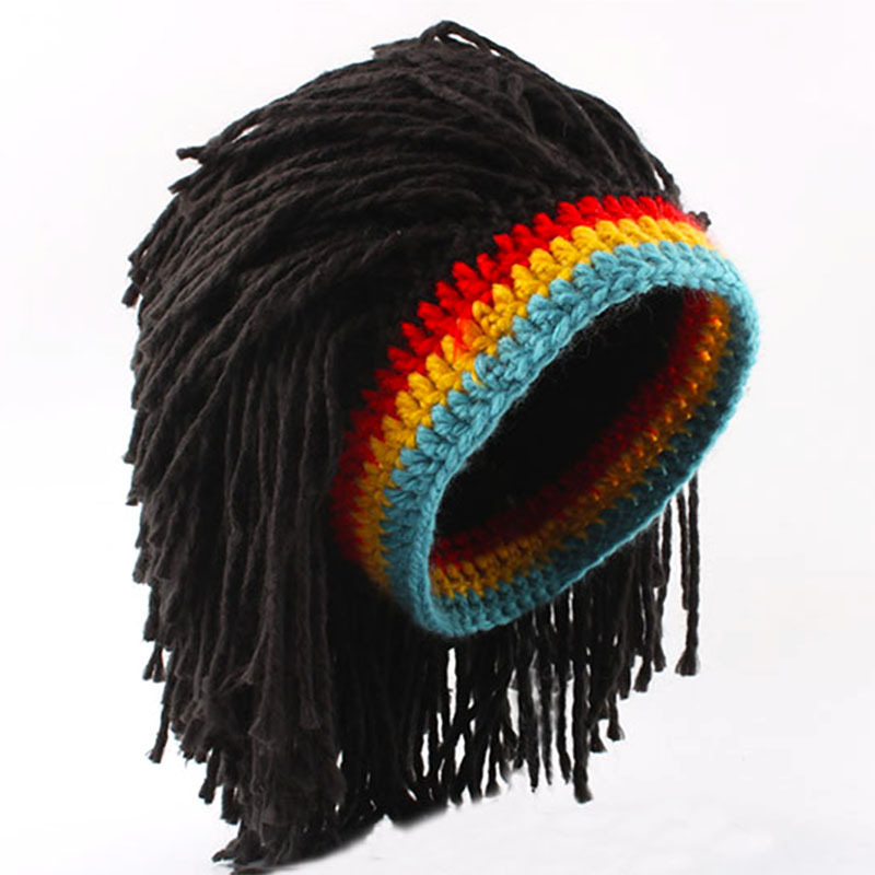 亚马逊脏辫搞怪头套头毛线帽个性欧美保暖毛线帽针织假发帽男女潮